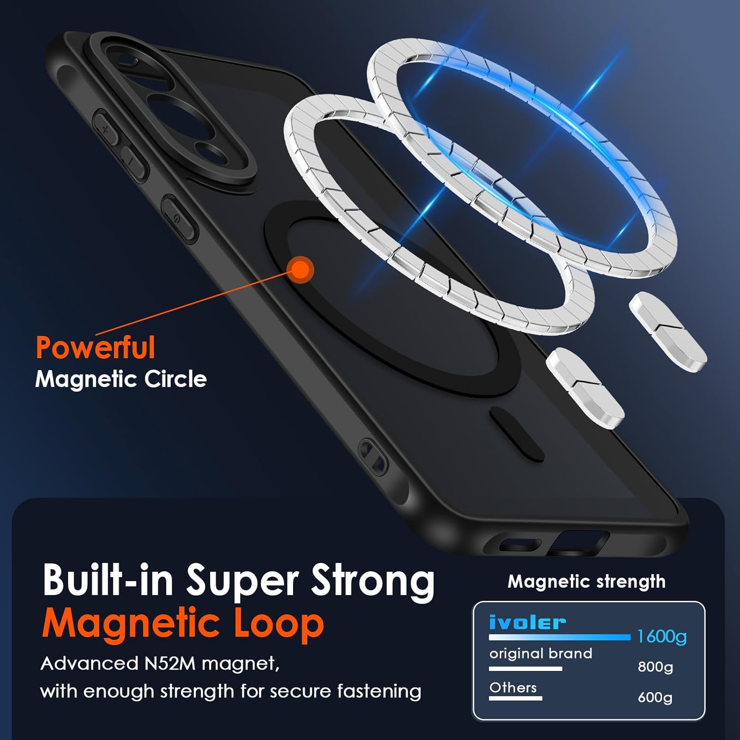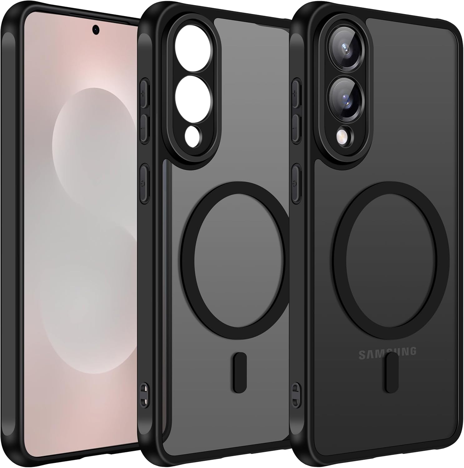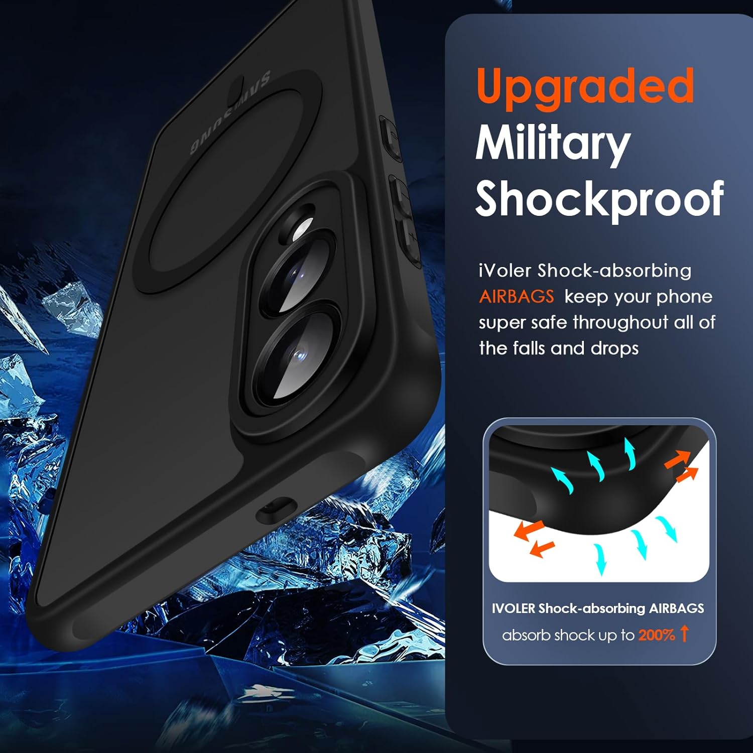ivoler Матов черен магнитен калъф за Samsung Galaxy S25 Edge 5G (не е за S25), съвместим с MagSafe, защита от падане по военен стандарт, удароустойчив, устойчив на надраскване, защитен калъф за гръб, тънък