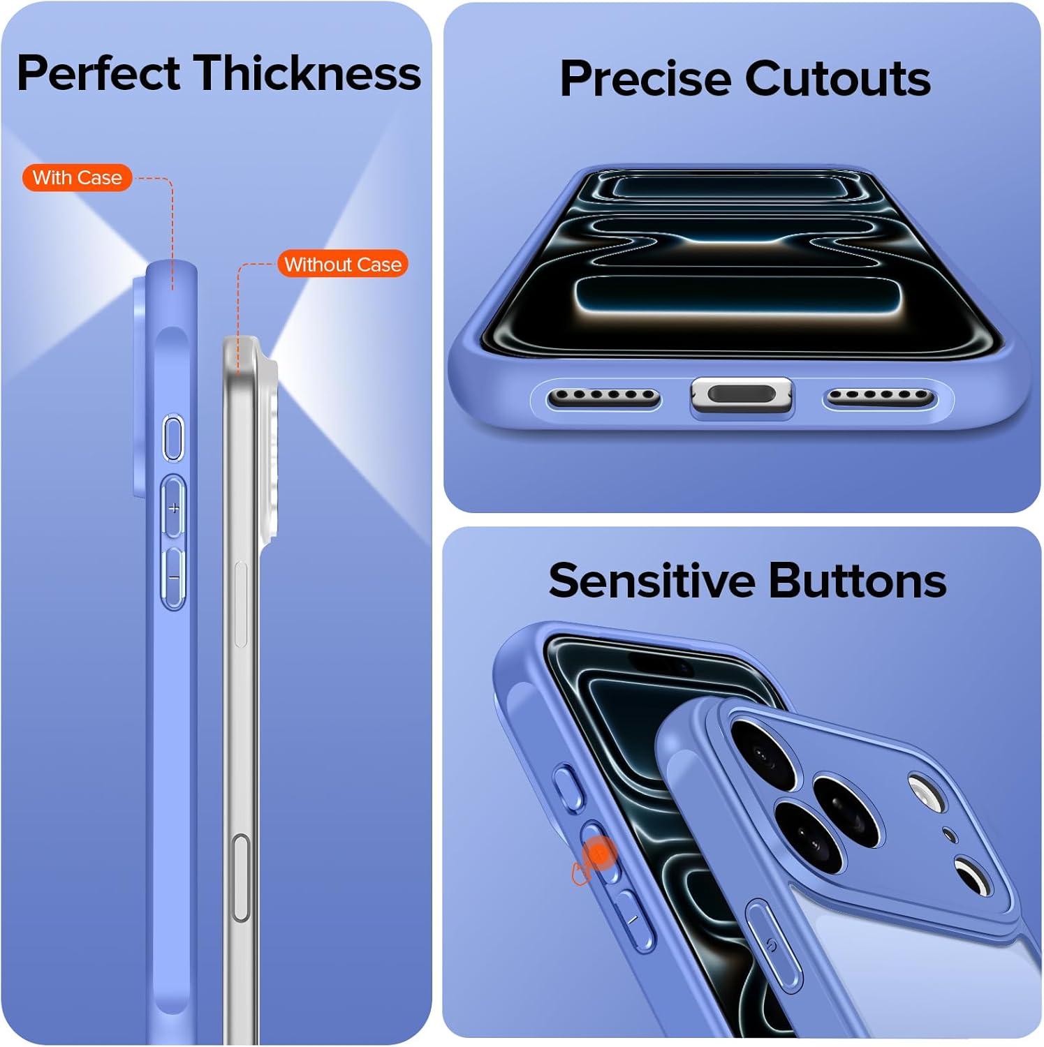• Перфектно проектиран: кристално прозрачният калъф за мобилен телефон, съвместим с iPhone 17 Pro Max, показва оригиналния дизайн и красота на мобилния телефон. Всички портове и бутони са лесно достъпни и лесни за използване. А независимите бутони ви осигуряват чувствителна и ясна тактилна обратна връзка при натискане! Тънкият калъф за телефон ви предлага по-добър захват, без да е твърде обемист или груб.