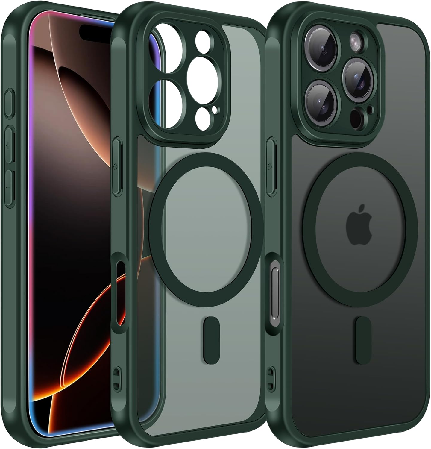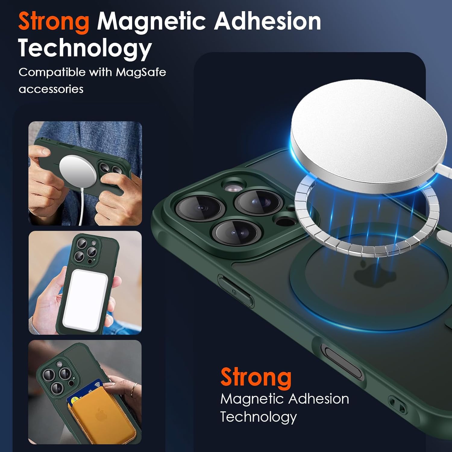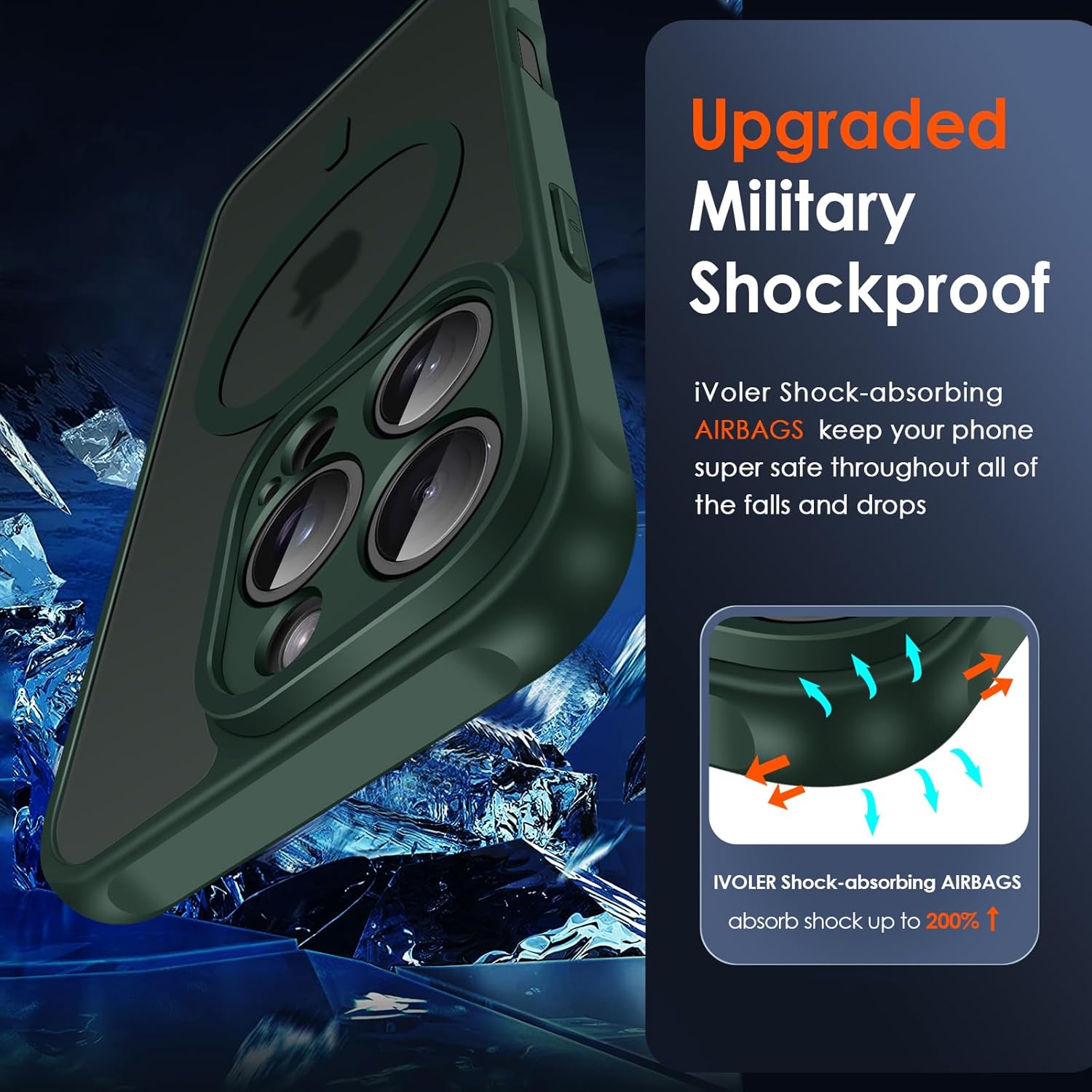 ivoler Матов зелен магнитен калъф за iPhone 16 Pro, съвместим с MagSafe, военна стандартна защита от падане, удароустойчив, устойчив на надраскване, защитен калъф за гръб, тънък, течен силиконов мобилен телефон
