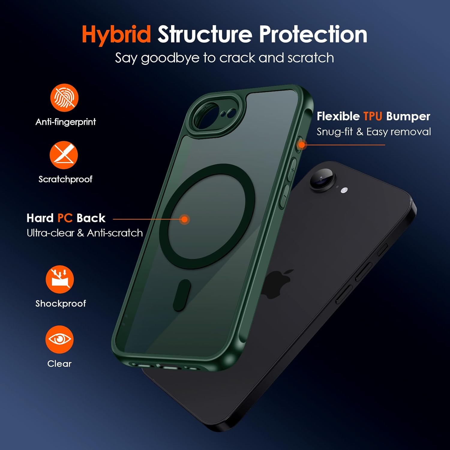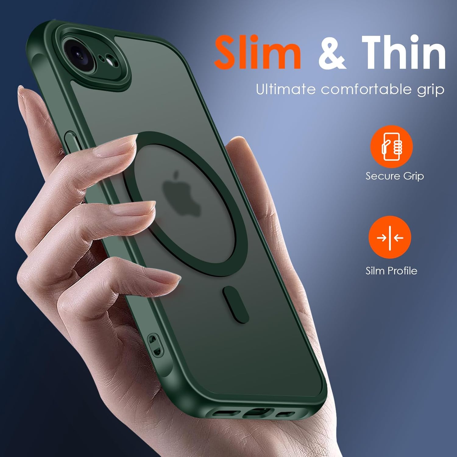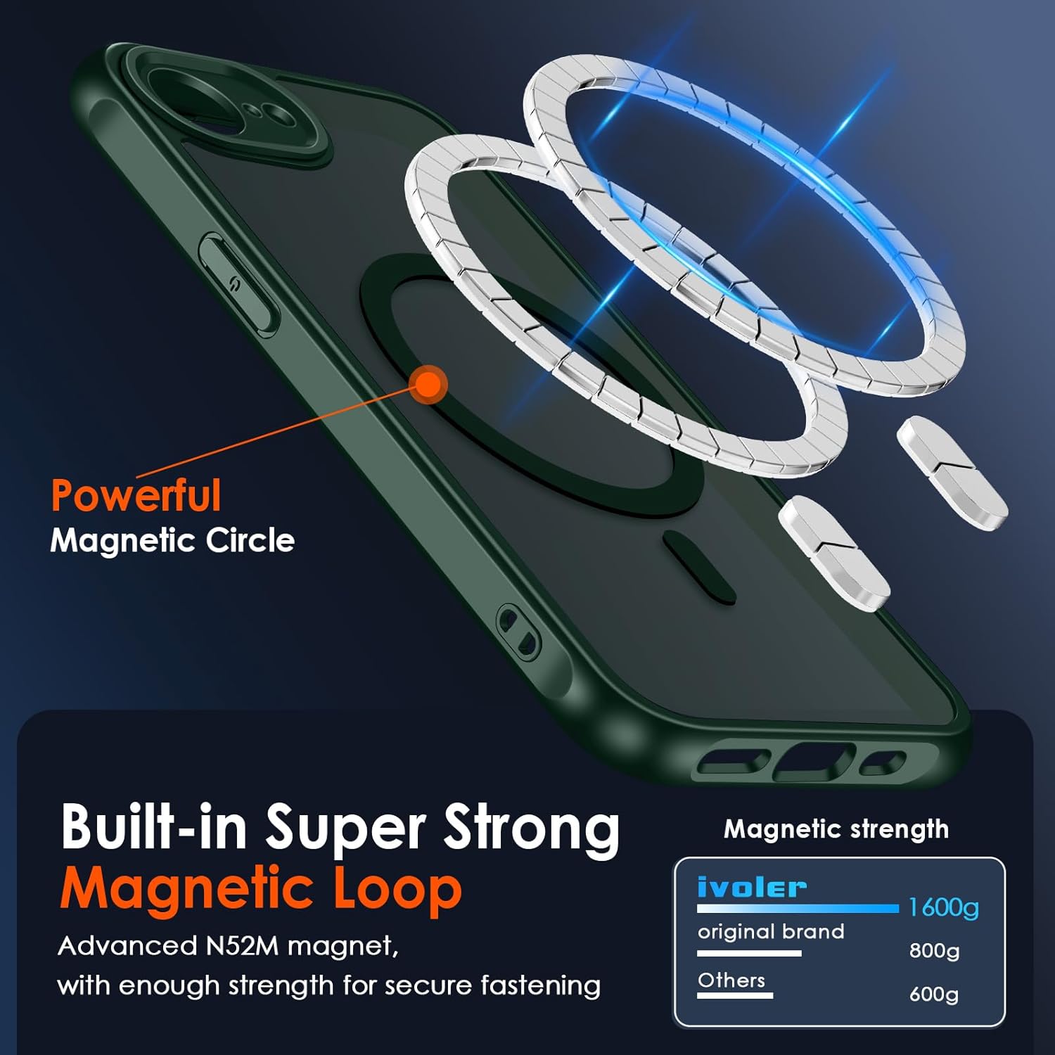 ivoler Матов зелен магнитен калъф за iPhone 16e 6.1 инча, съвместим с MagSafe, военен стандарт, защита от падане, удароустойчив, устойчив на надраскване, защитен калъф, тънък, течен силиконов мобилен телефон