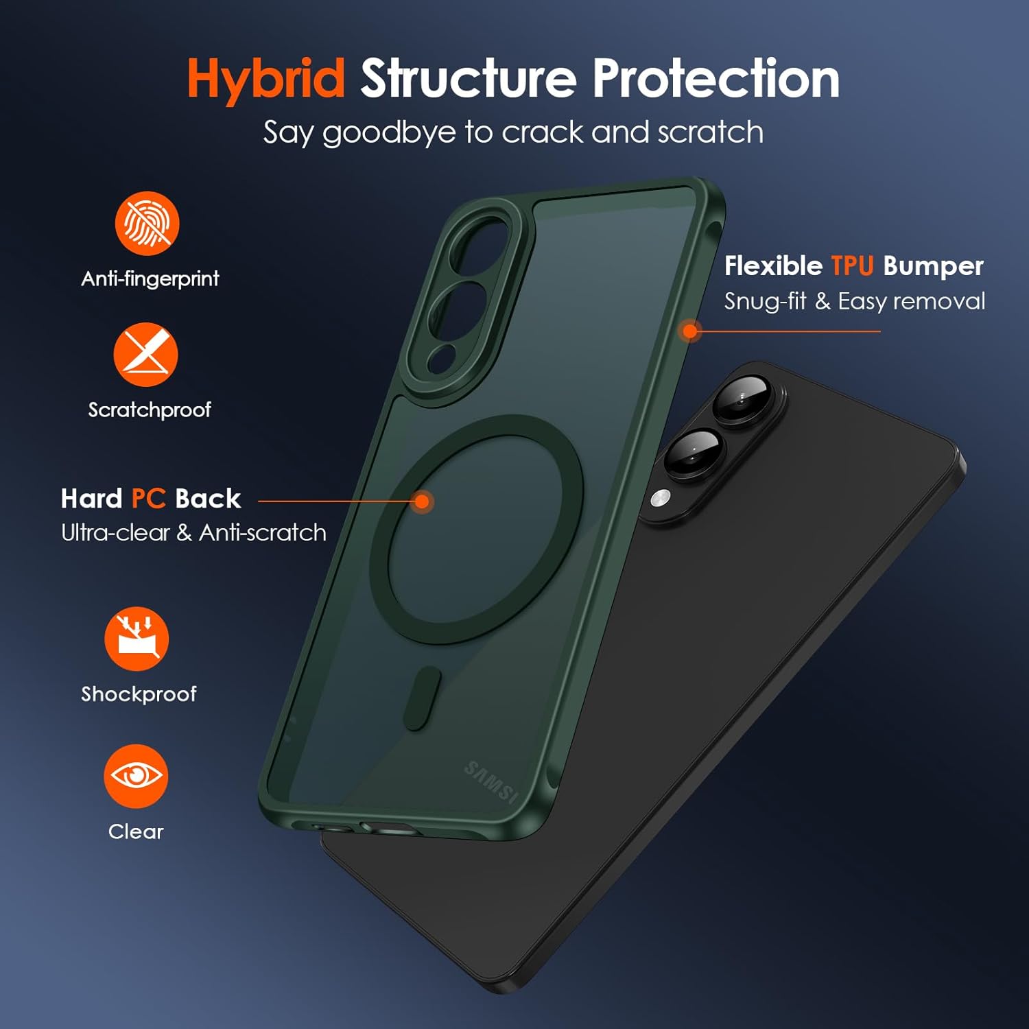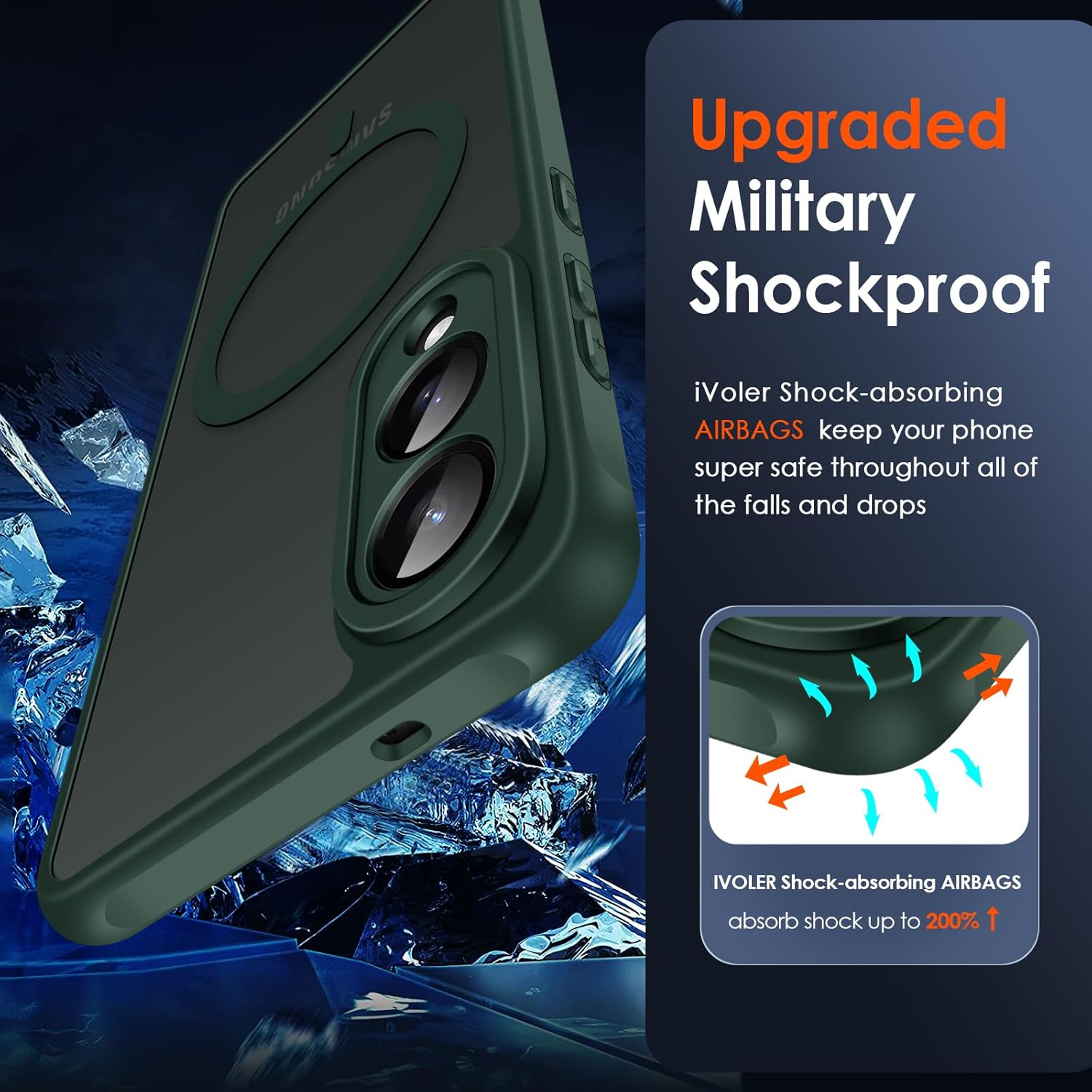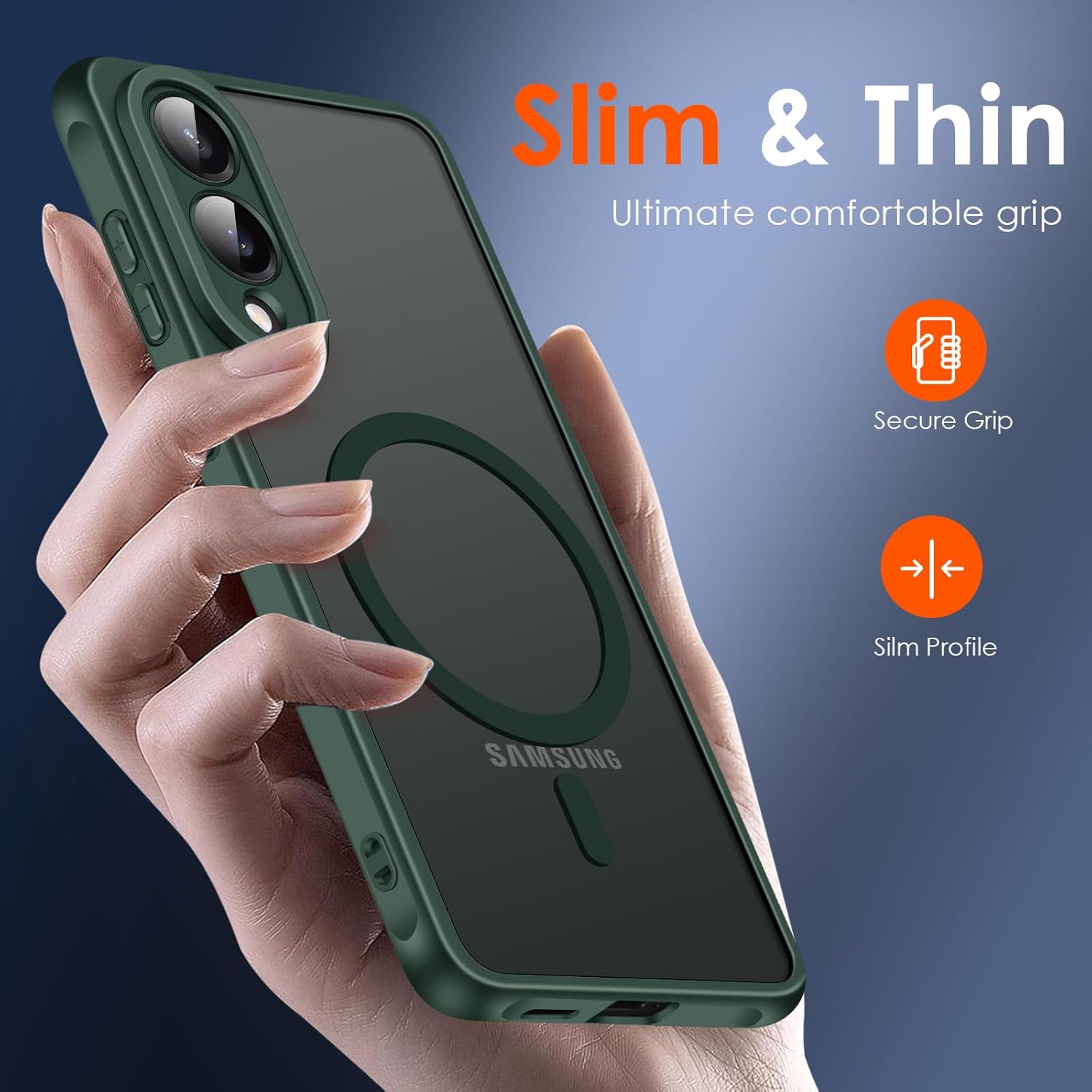 ivoler Матов зелен магнитен калъф за Samsung Galaxy S25 Edge 5G (не е за S25), съвместим с MagSafe, защита от падане по военен стандарт, удароустойчив, устойчив на надраскване, защитен калъф за гръб, тънък