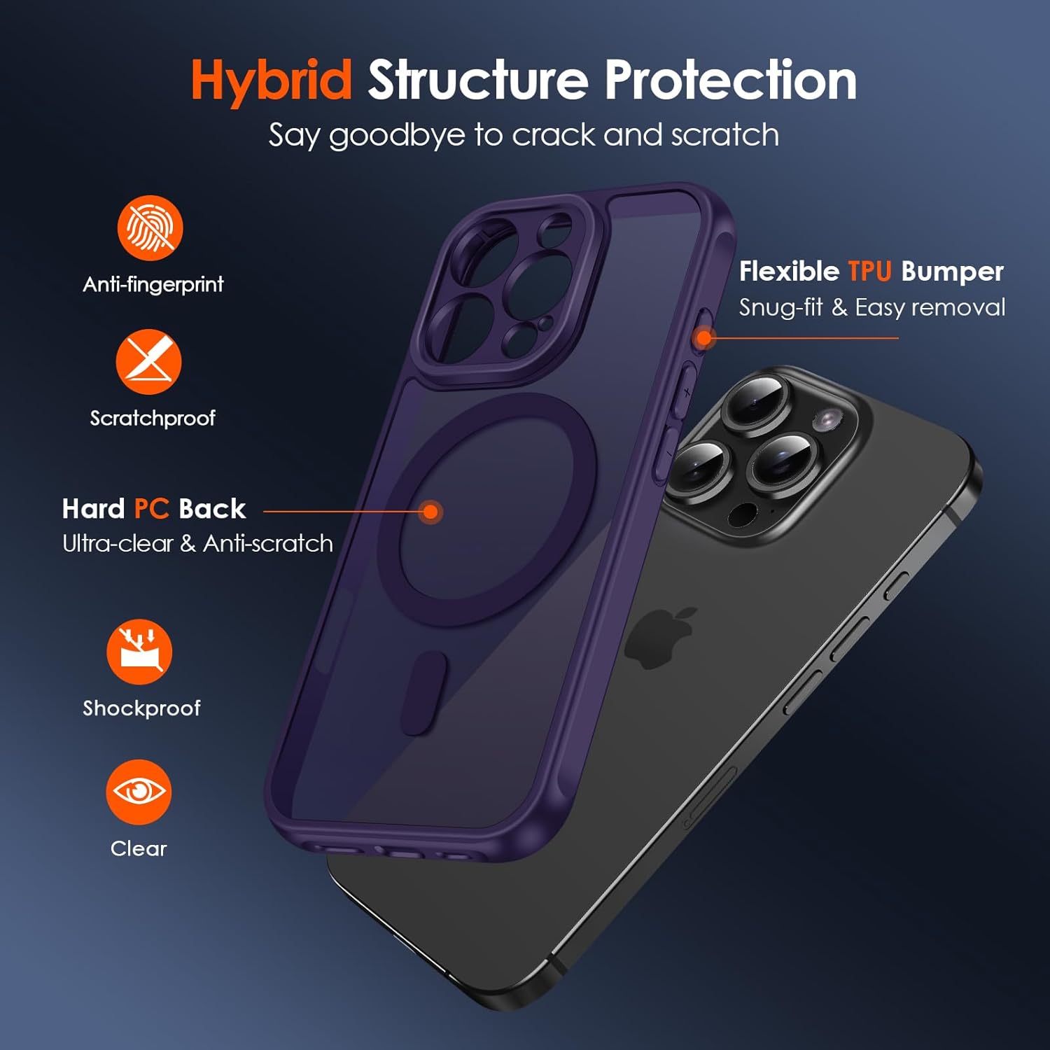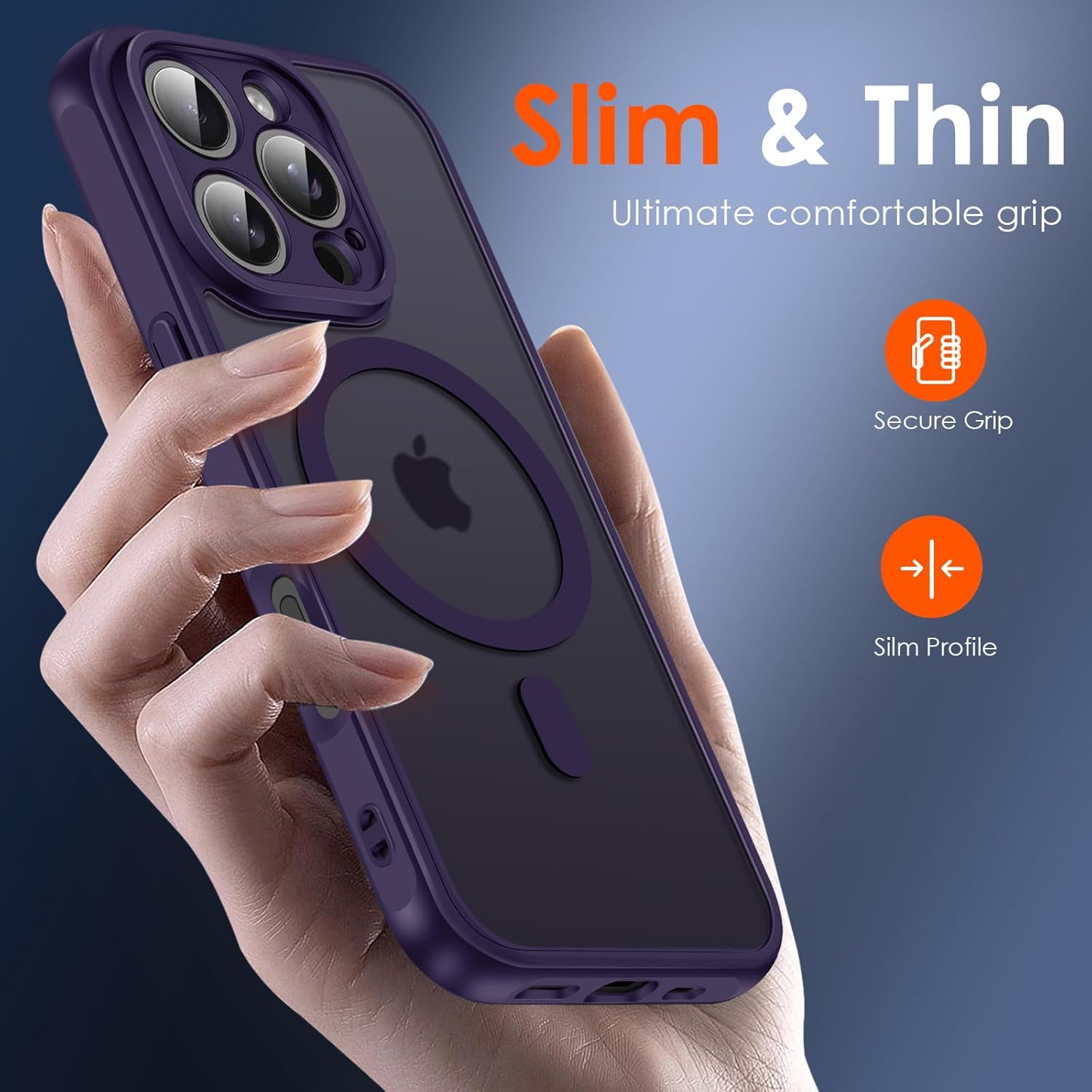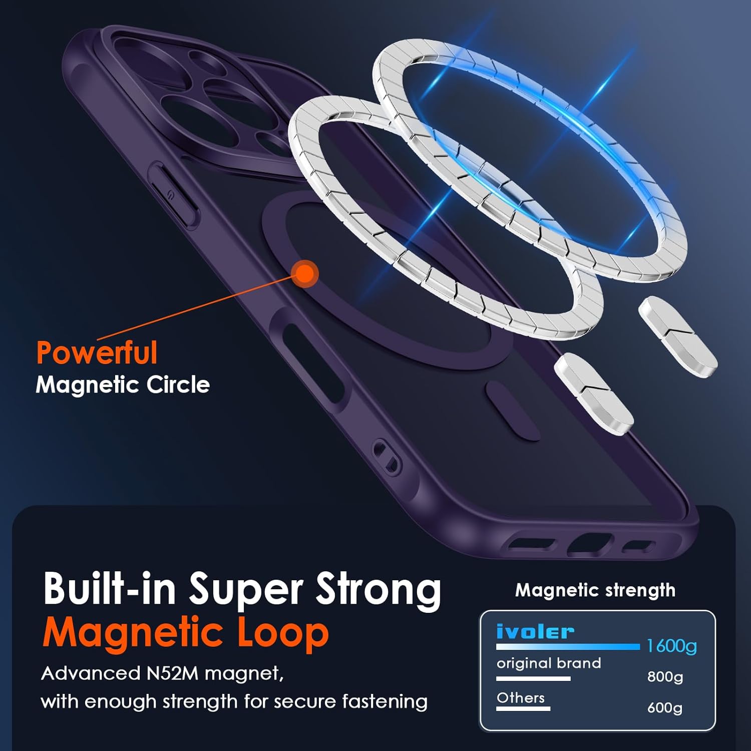 ivoler матово-лилав магнитен калъф за iPhone 16 Pro Max, съвместим с MagSafe, военна стандартна защита от падане, удароустойчив, устойчив на надраскване, защитен калъф за гръб, тънък, течен силиконов мобилен телефон