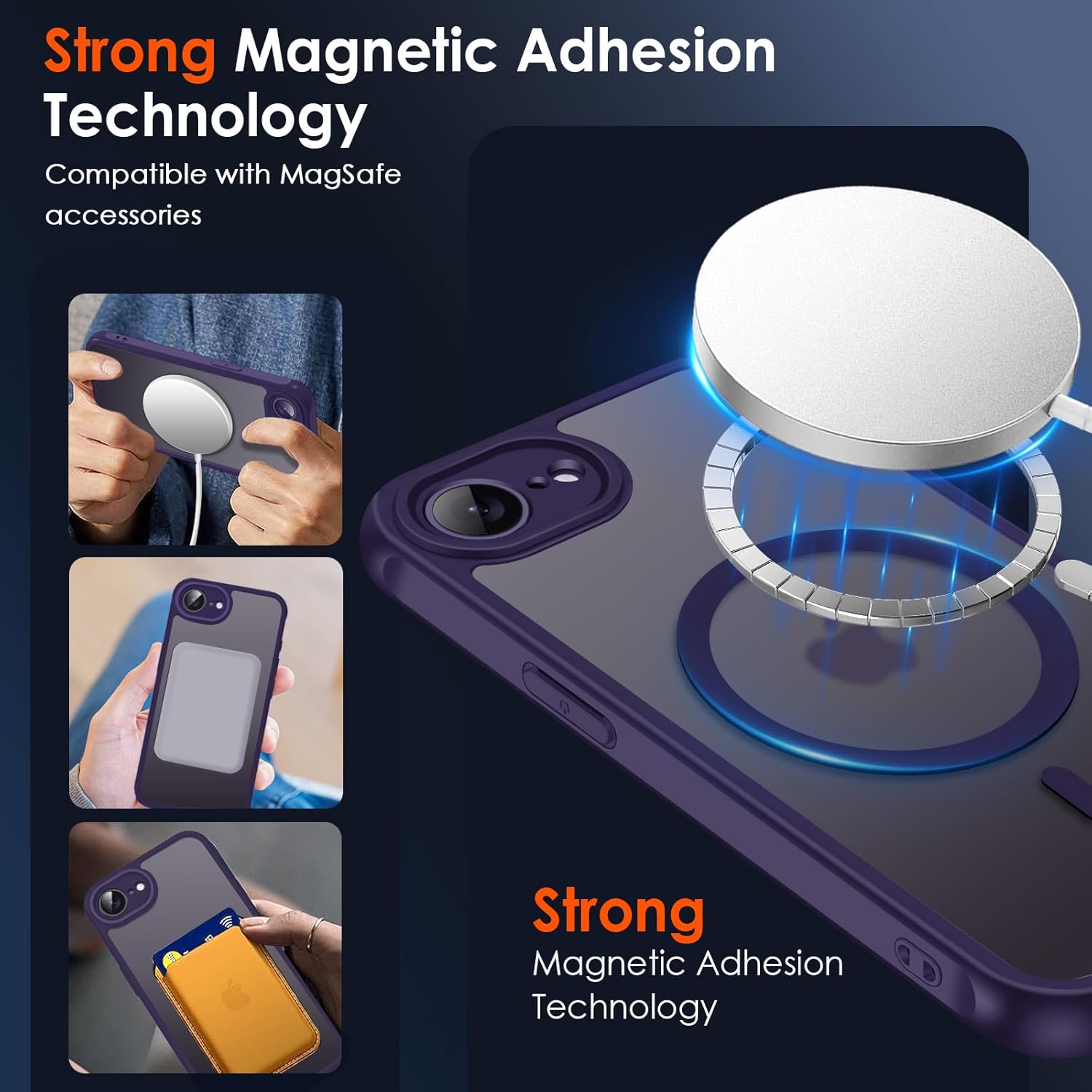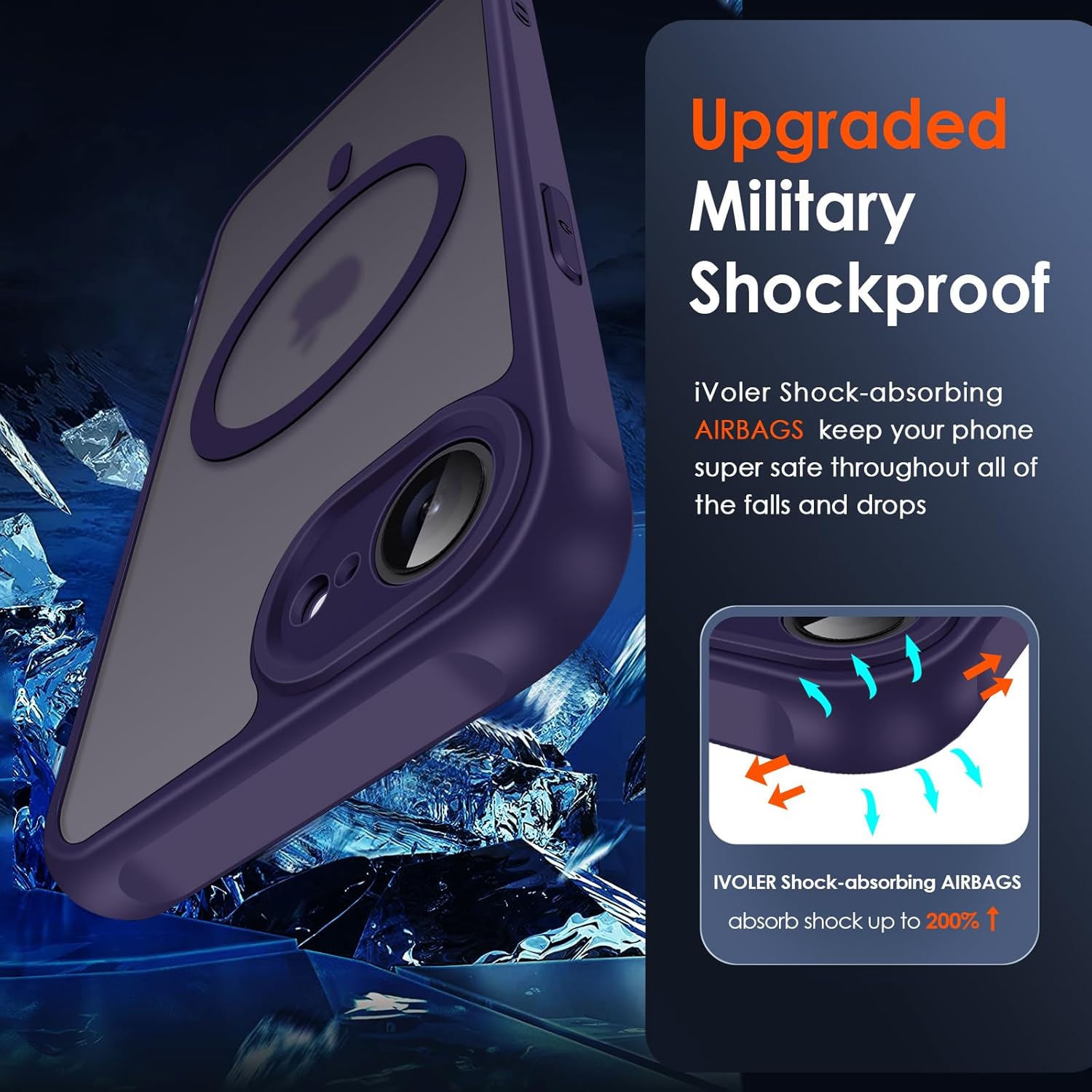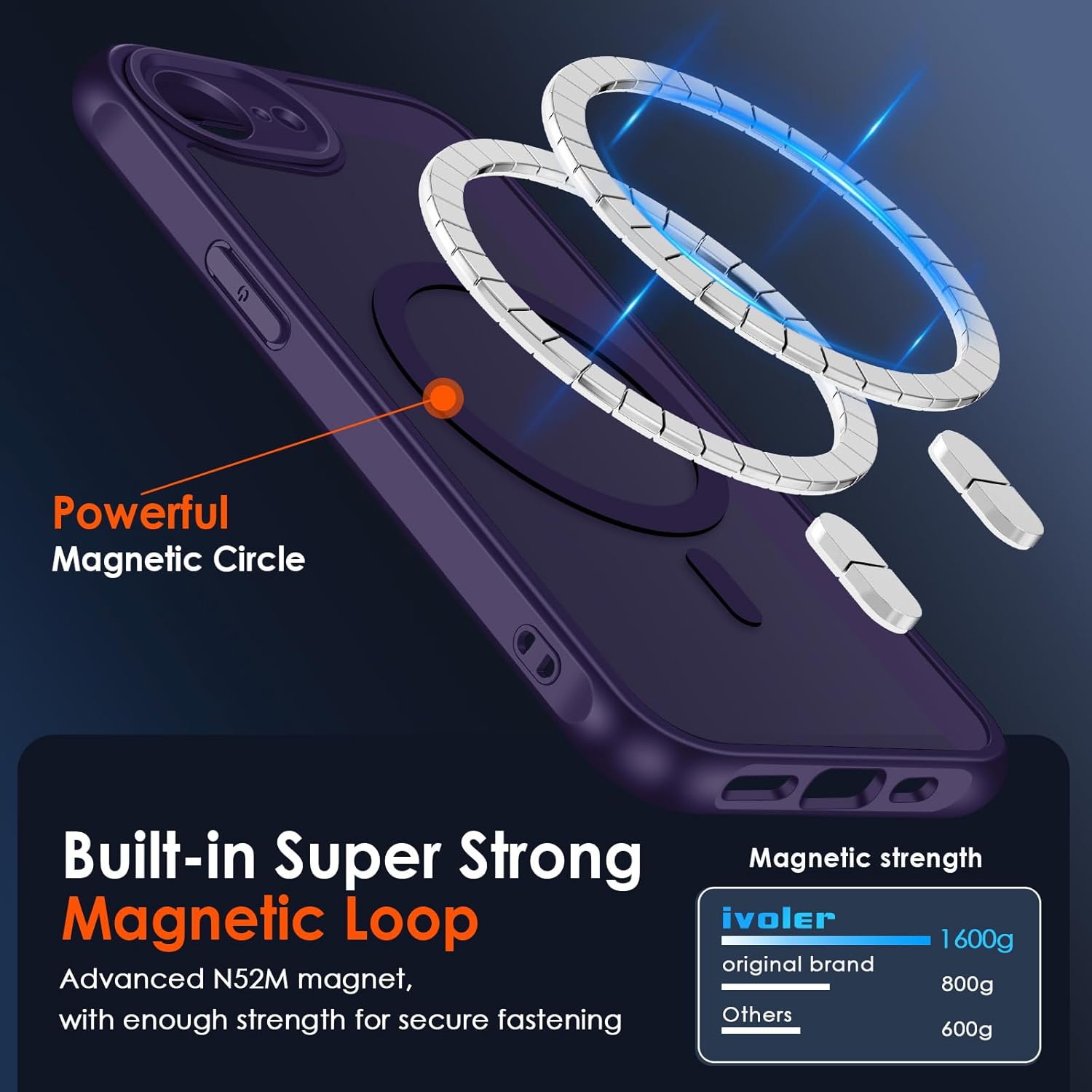 ivoler Матово-лилав магнитен калъф за iPhone 16e 6.1 инча, съвместим с MagSafe, военна стандартна защита от падане, удароустойчив, устойчив на надраскване, защитен калъф, тънък, течен силиконов мобилен телефон