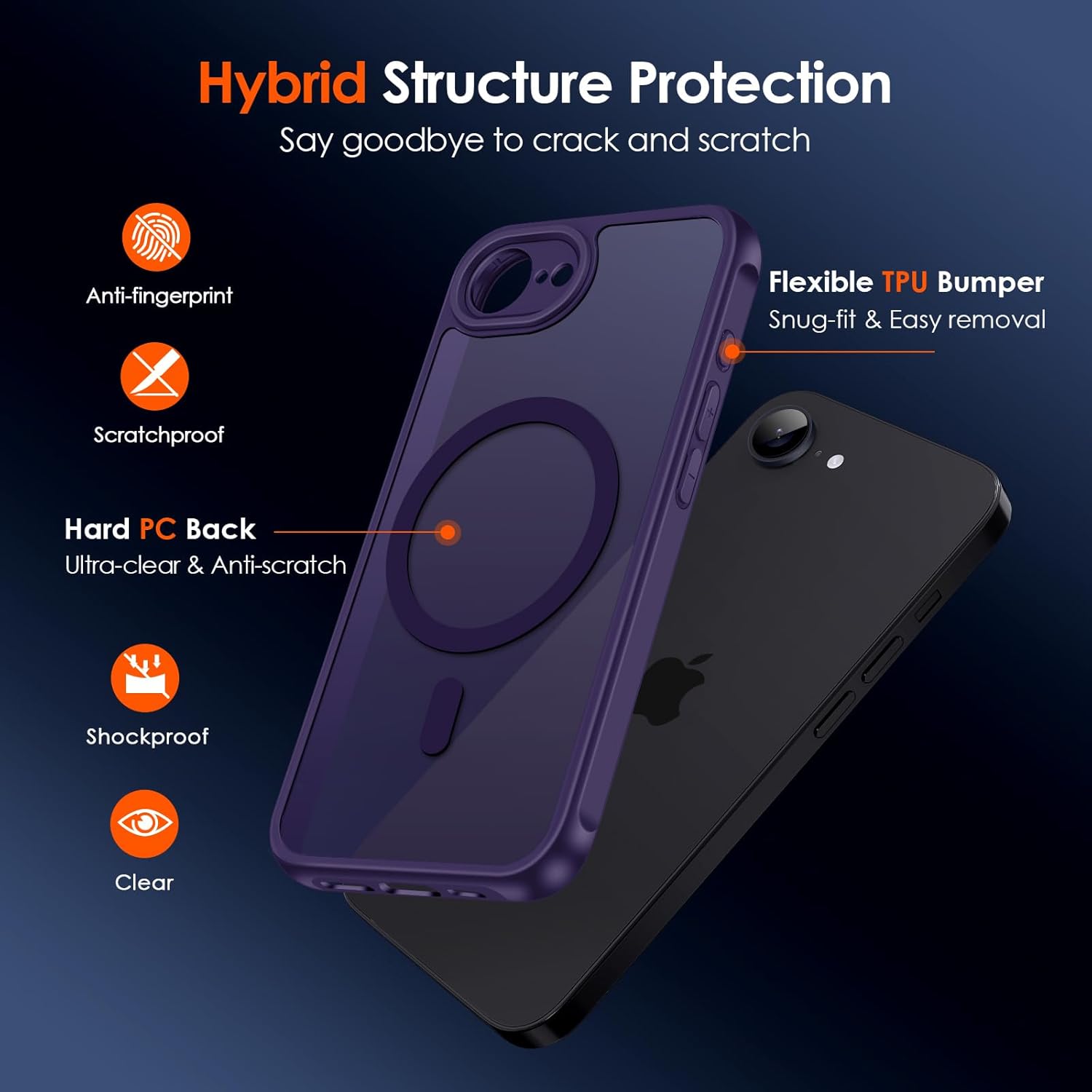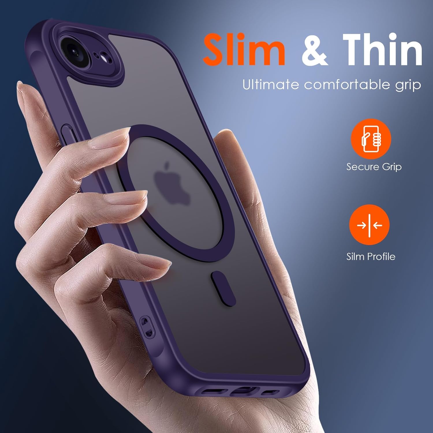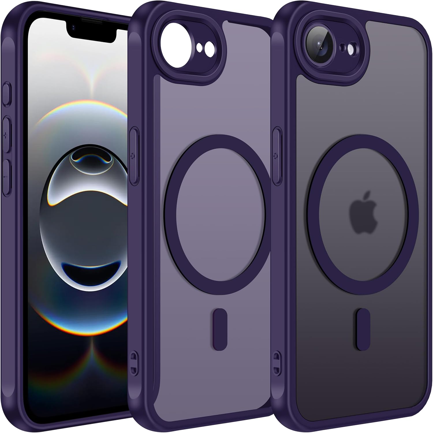 ivoler Матово-лилав магнитен калъф за iPhone 16e 6.1 инча, съвместим с MagSafe, военна стандартна защита от падане, удароустойчив, устойчив на надраскване, защитен калъф, тънък, течен силиконов мобилен телефон