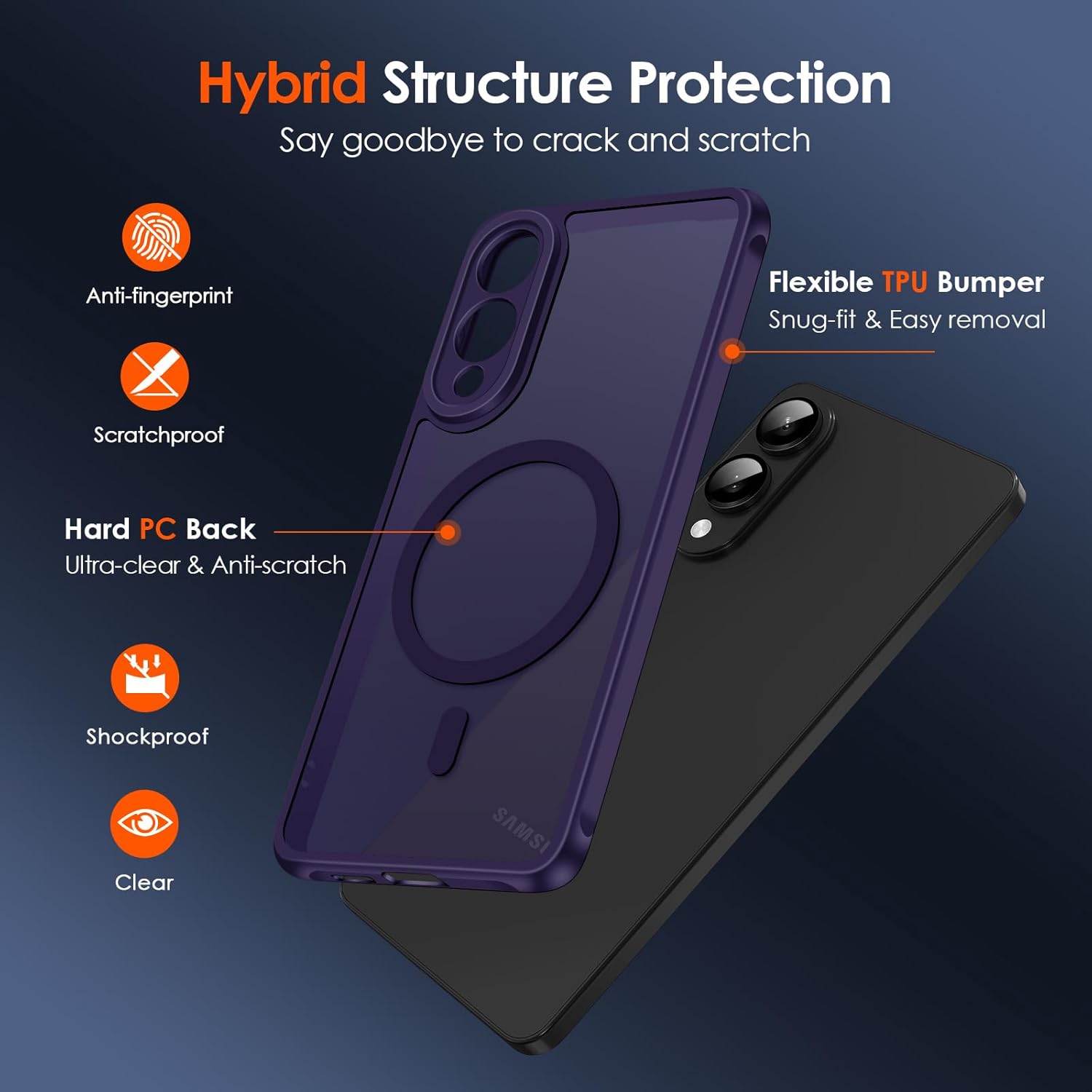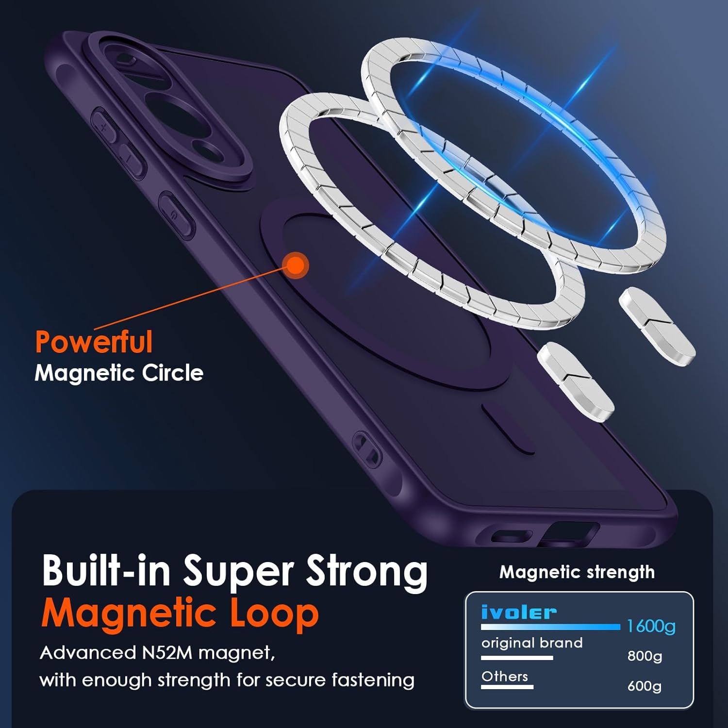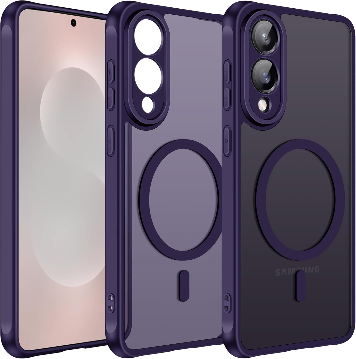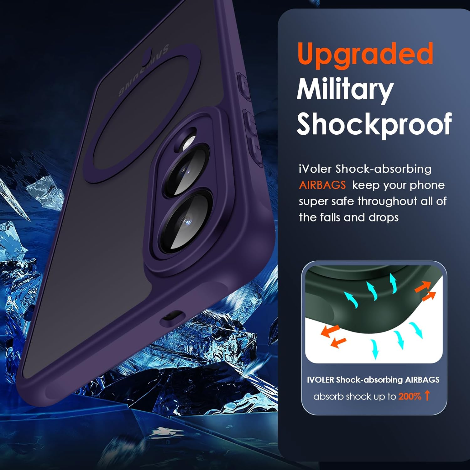 ivoler Матово-лилав магнитен калъф за Samsung Galaxy S25 Edge 5G (не е за S25), съвместим с MagSafe, защита от падане по военен стандарт, удароустойчив, устойчив на надраскване, защитен калъф за гръб, тънък