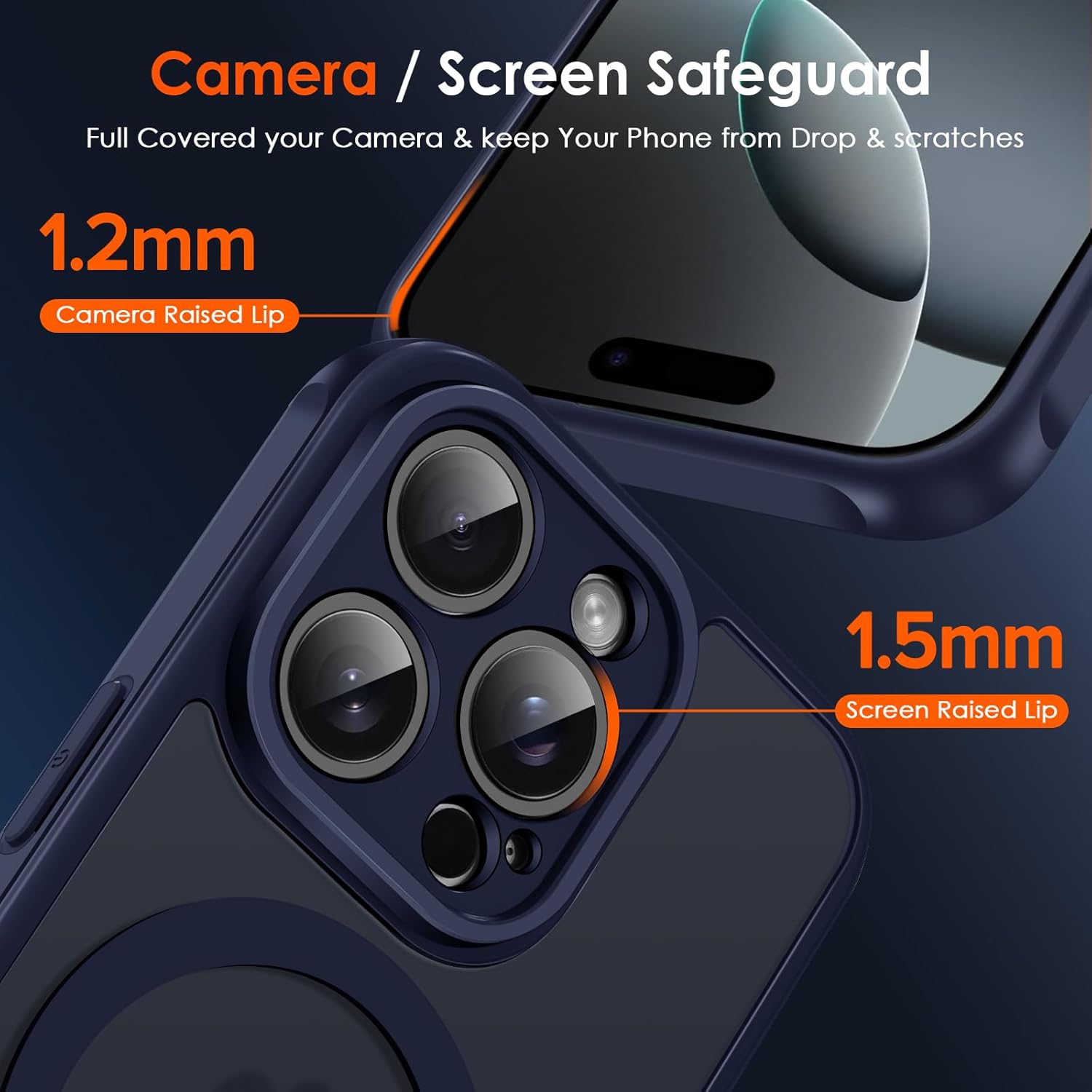 • [Повишена защита на камерата и екрана] --- Камерата и екранът са двете най-скъпи и крехки части на целия телефон. Дизайнът с пълно покритие на камерата предпазва цялата камера от надраскване. Повдигнатите ръбове около предния екран и обектива на камерата могат ефективно да се справят с последиците от внезапно изпускане или удар, без да надраскат красивия ви телефон!