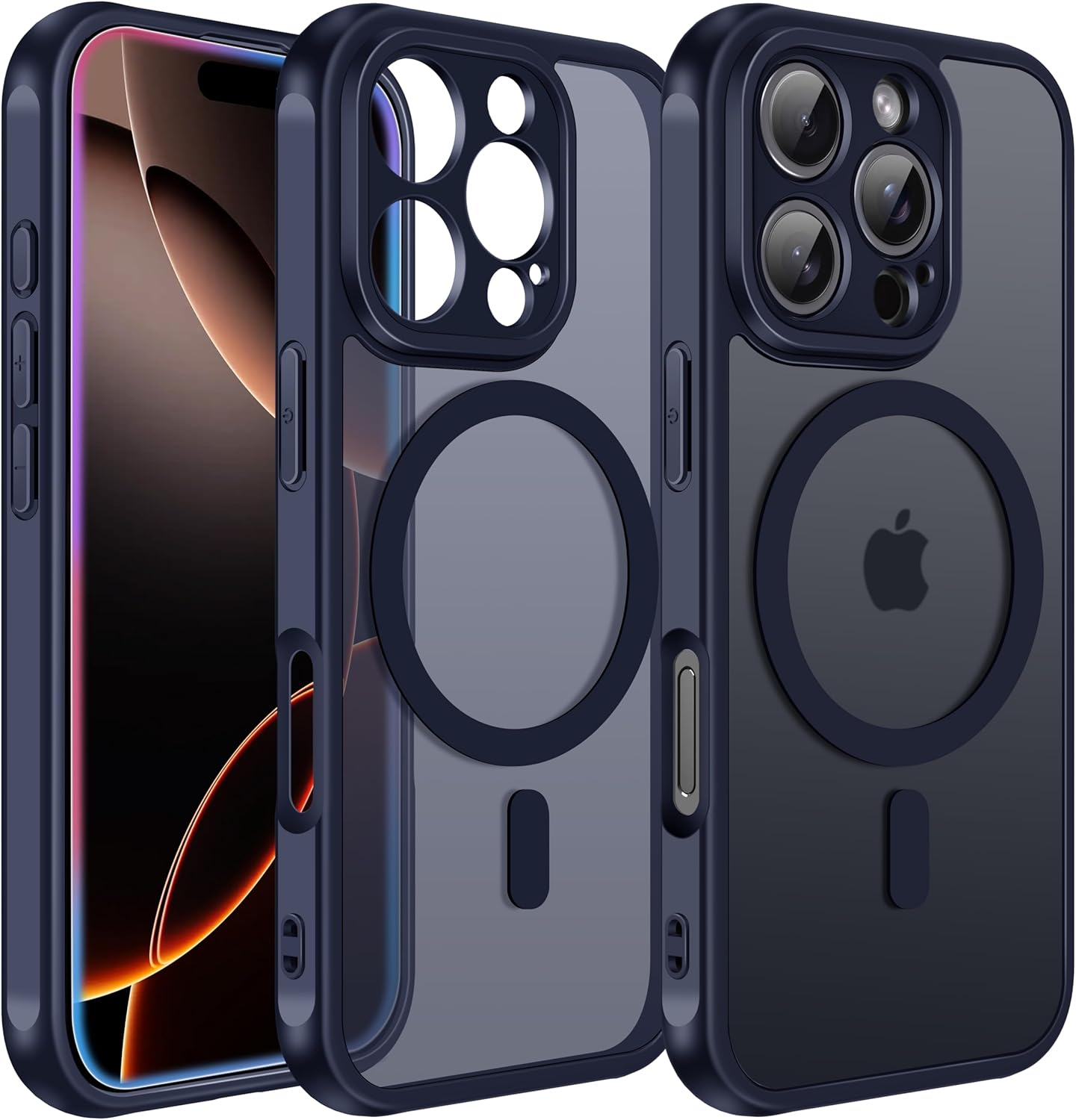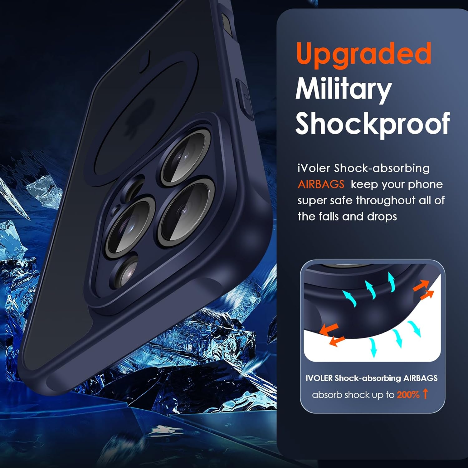 ivoler Матово син магнитен калъф за iPhone 16 Pro, съвместим с MagSafe, военна стандартна защита от падане, удароустойчив, устойчив на надраскване, защитен калъф за гръб, тънък, течен силиконов мобилен телефон