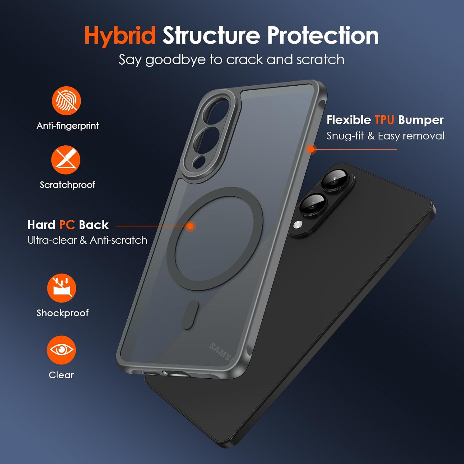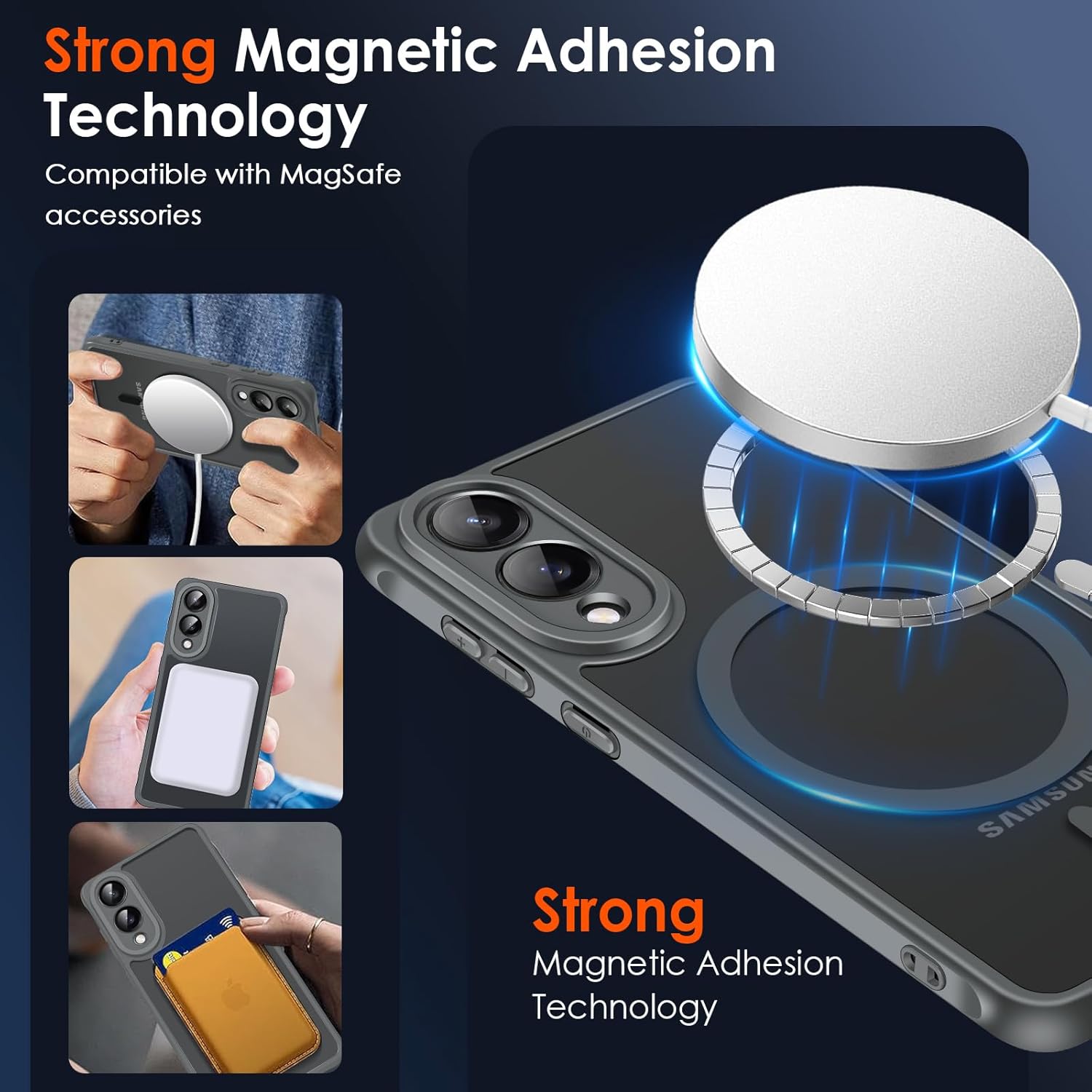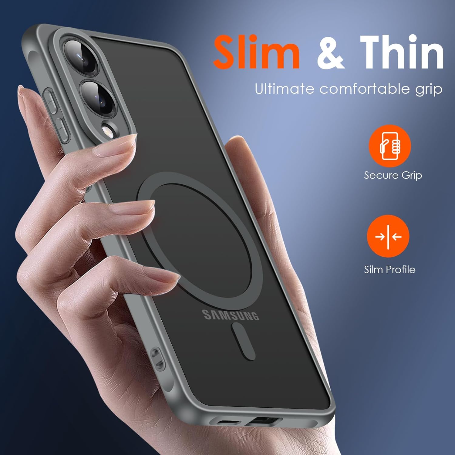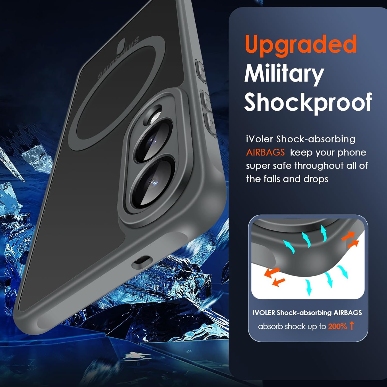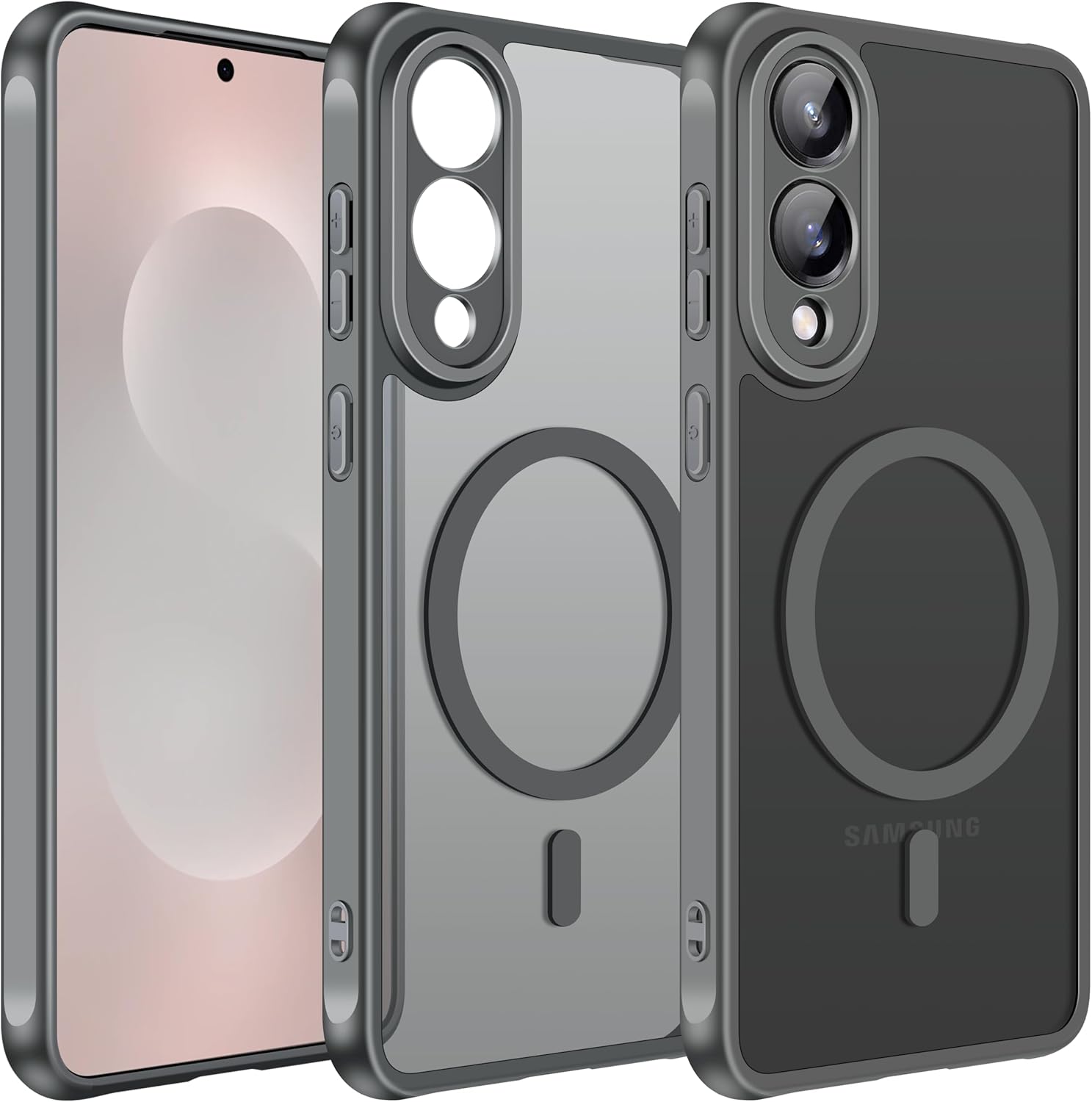 ivoler Матово сив магнитен калъф за Samsung Galaxy S25 Edge 5G (не е за S25), съвместим с MagSafe, защита от падане по военен стандарт, удароустойчив, устойчив на надраскване, защитен калъф за гръб, тънък