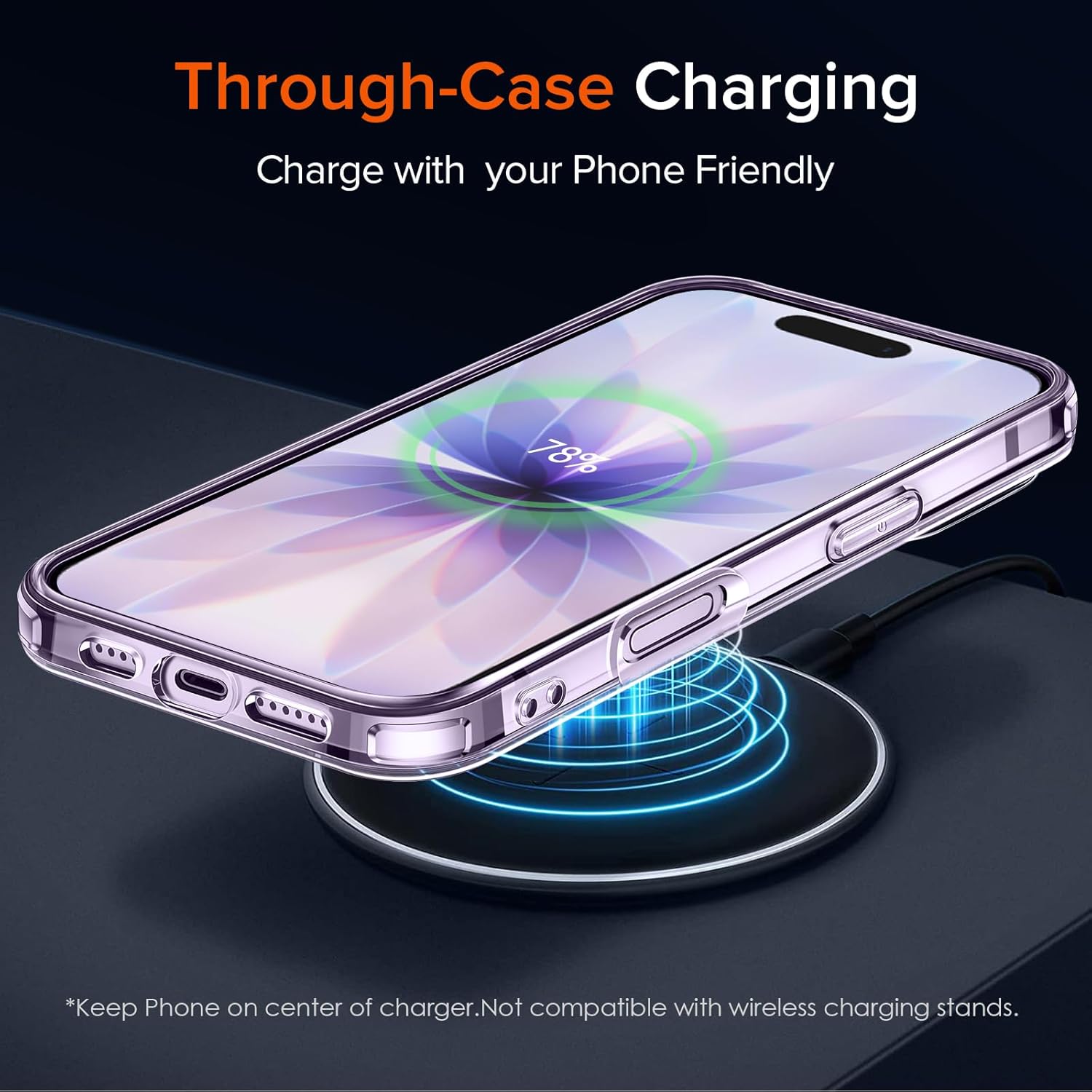 ivoler Never Yellowing прозрачен калъф за iPhone 17 6.3 инча, с 2 части закалено стъкло, военна защита, удароустойчив, прозрачен защитен калъф, калъф за мобилен телефон