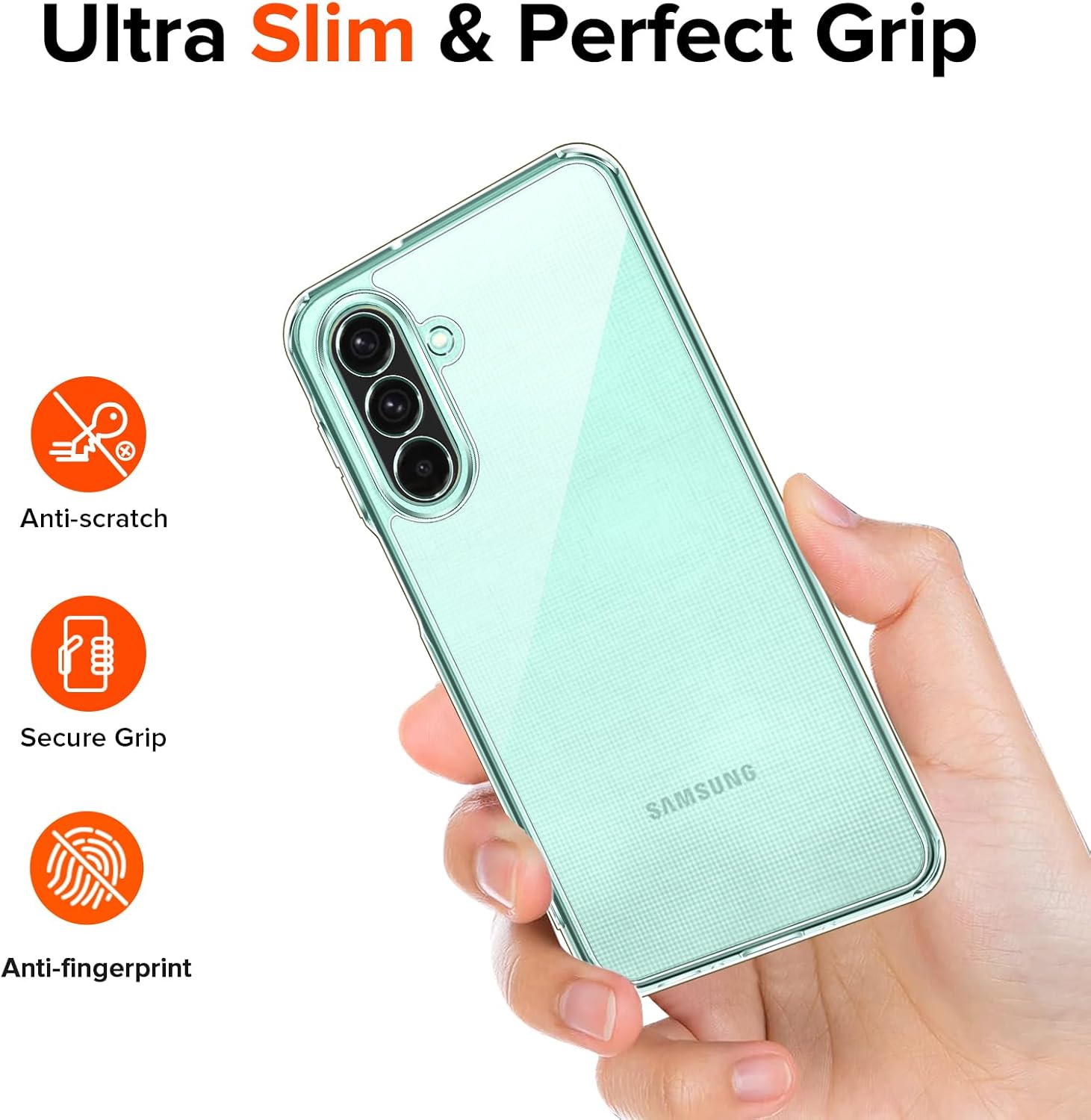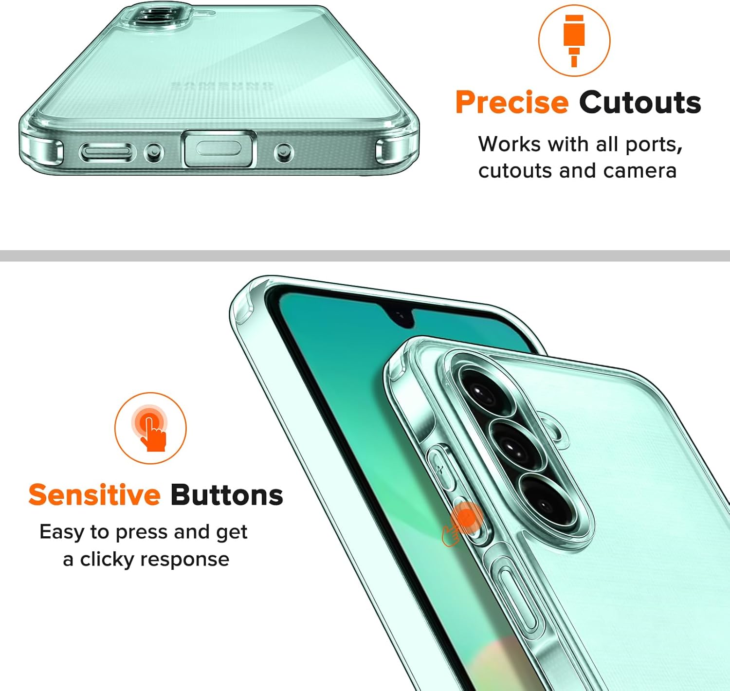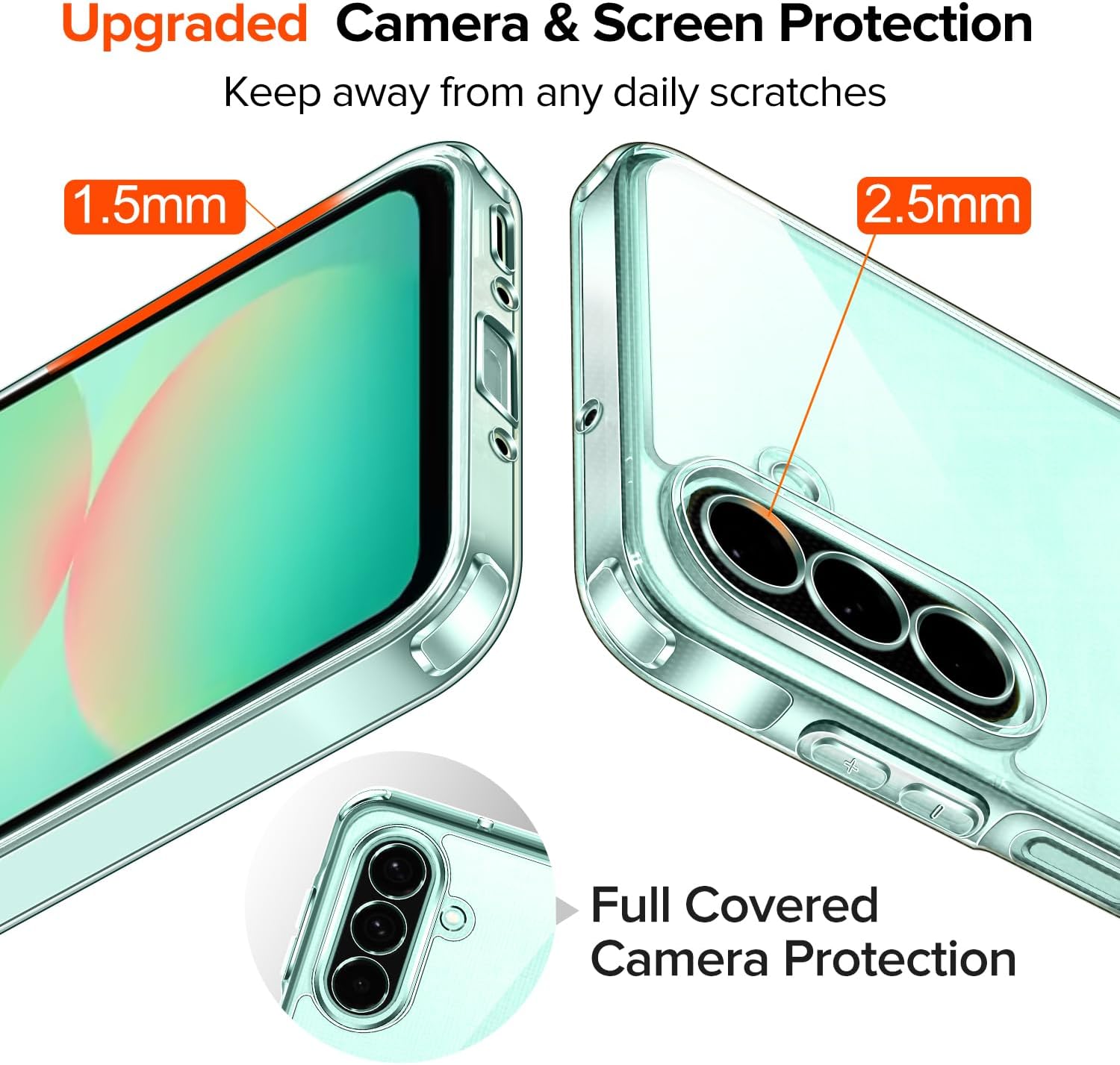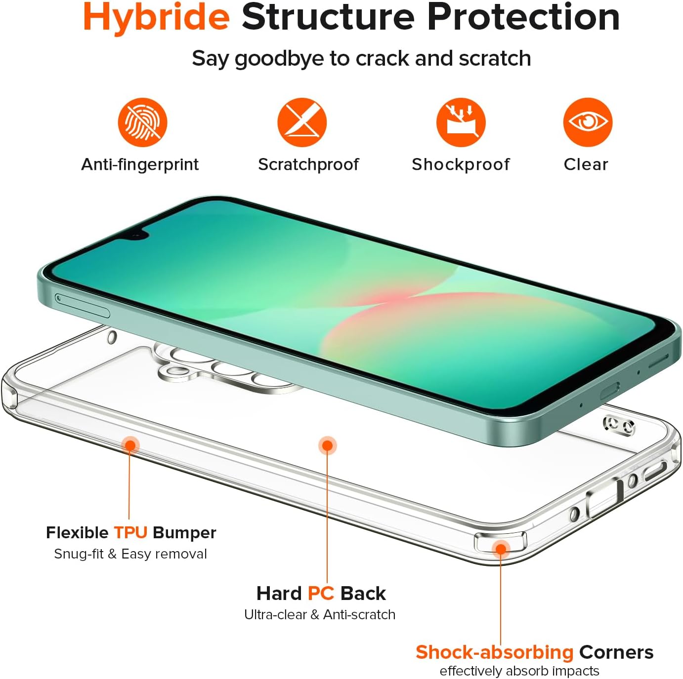 • Перфектно проектиран: кристално прозрачният калъф за мобилен телефон, съвместим със Samsung Galaxy A26 5G, показва оригиналния дизайн и красота на мобилния телефон. Всички портове и бутони са лесно достъпни и лесни за използване. Комбинацията от калъф и стъклено фолио осигурява най-добрата цялостна защита за вашия телефон.