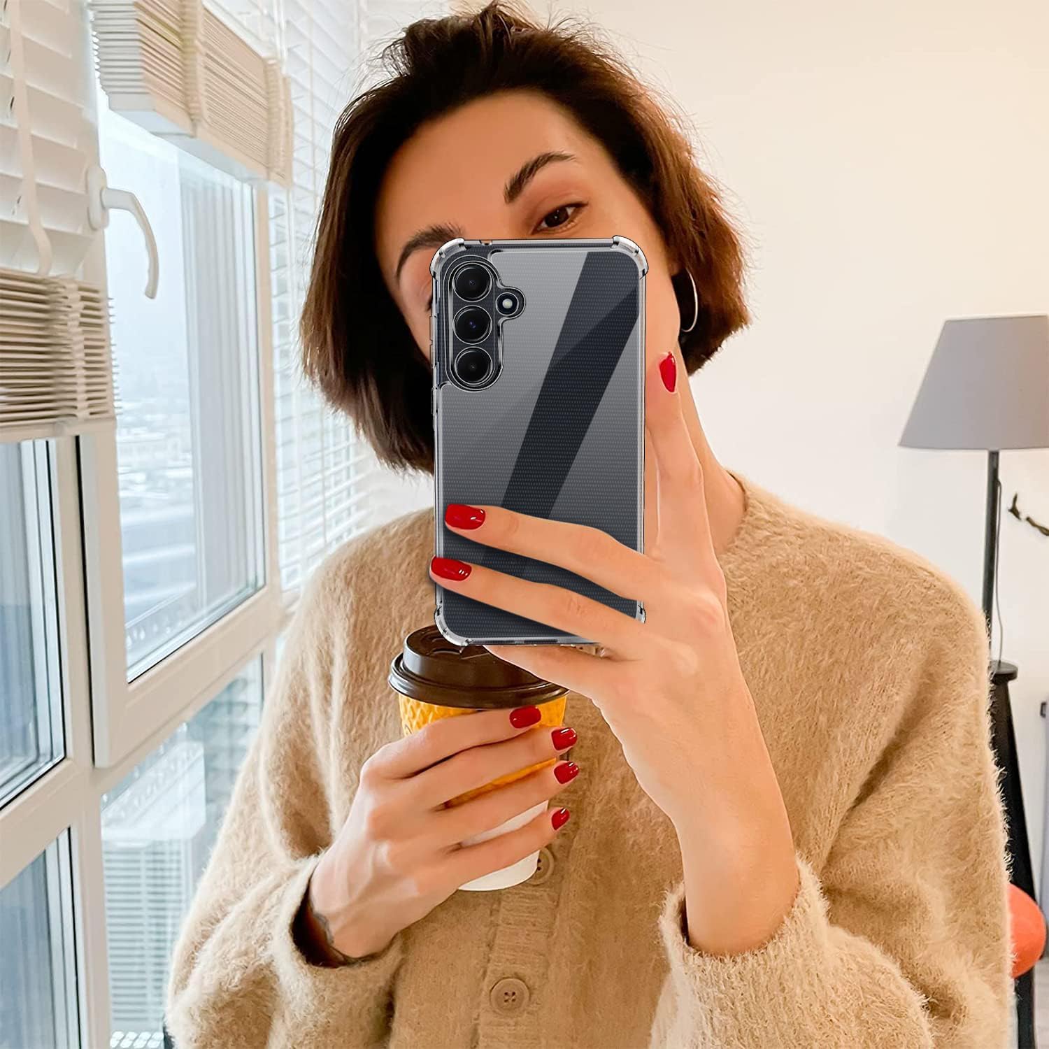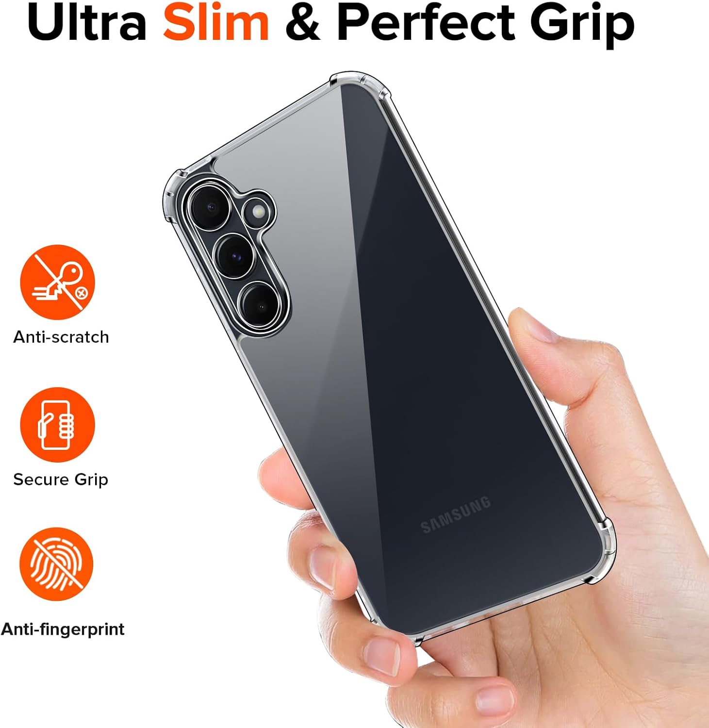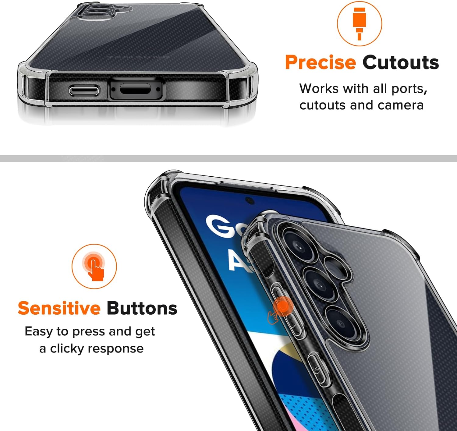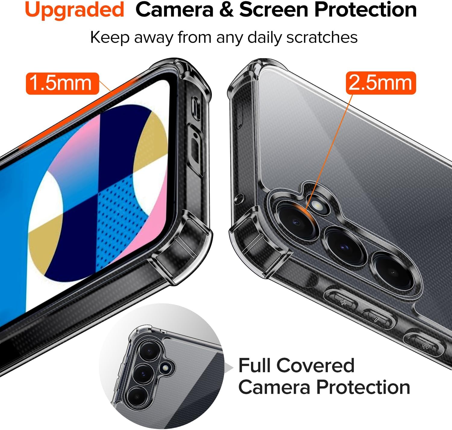 • Перфектно проектиран: кристално прозрачният калъф за мобилен телефон, съвместим със Samsung Galaxy A56 5G, показва оригиналния дизайн и красота на мобилния телефон. Всички портове и бутони са лесно достъпни и лесни за използване. Комбинацията от калъф и стъклено фолио осигурява най-добрата цялостна защита за вашия телефон.