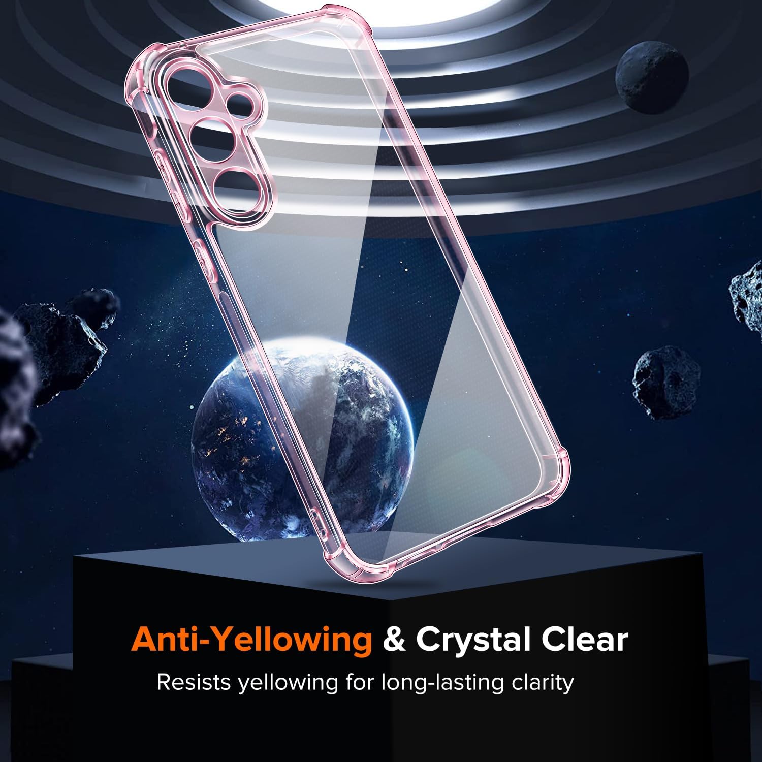 • Кристално чист и без пожълтяване: кристално прозрачният PC гръб остава без пожълтяване за по-дълго време. Използвайте ултрапрозрачния TPU материал от Германия, за да се насладите на оригиналната красота на вашия телефон. Нано антиоксидантният слой ефективно е устойчив на петна и пот, не се омазнява и не пожълтява лесно с времето, показвайки перфектно оригиналния цвят на вашия телефон.