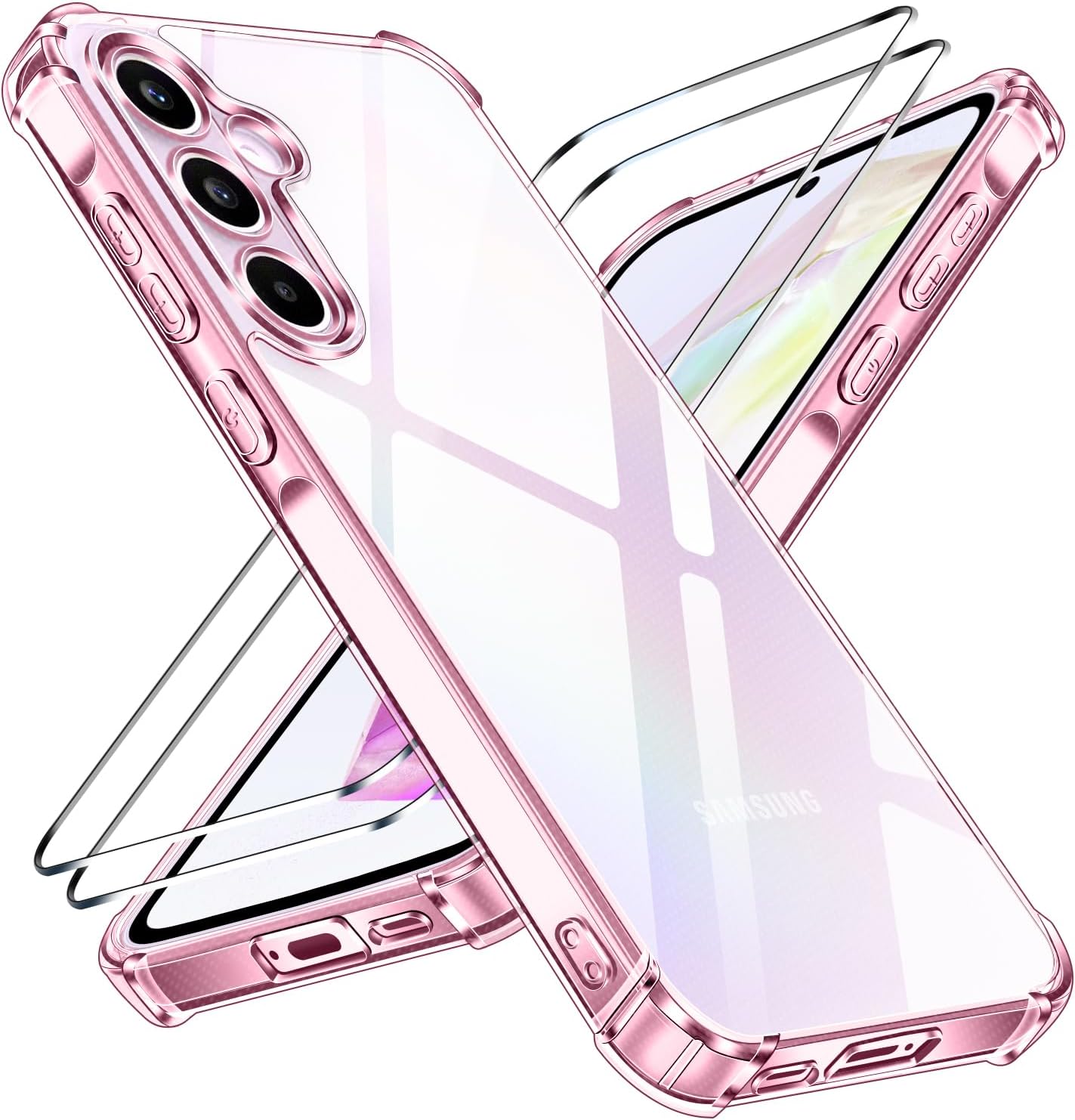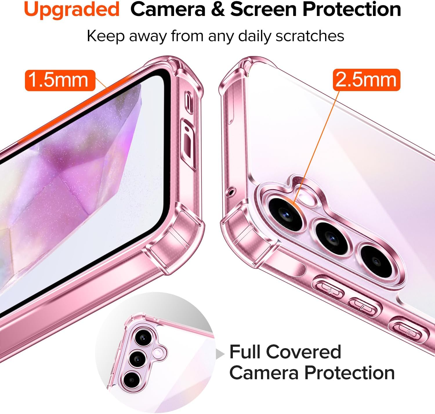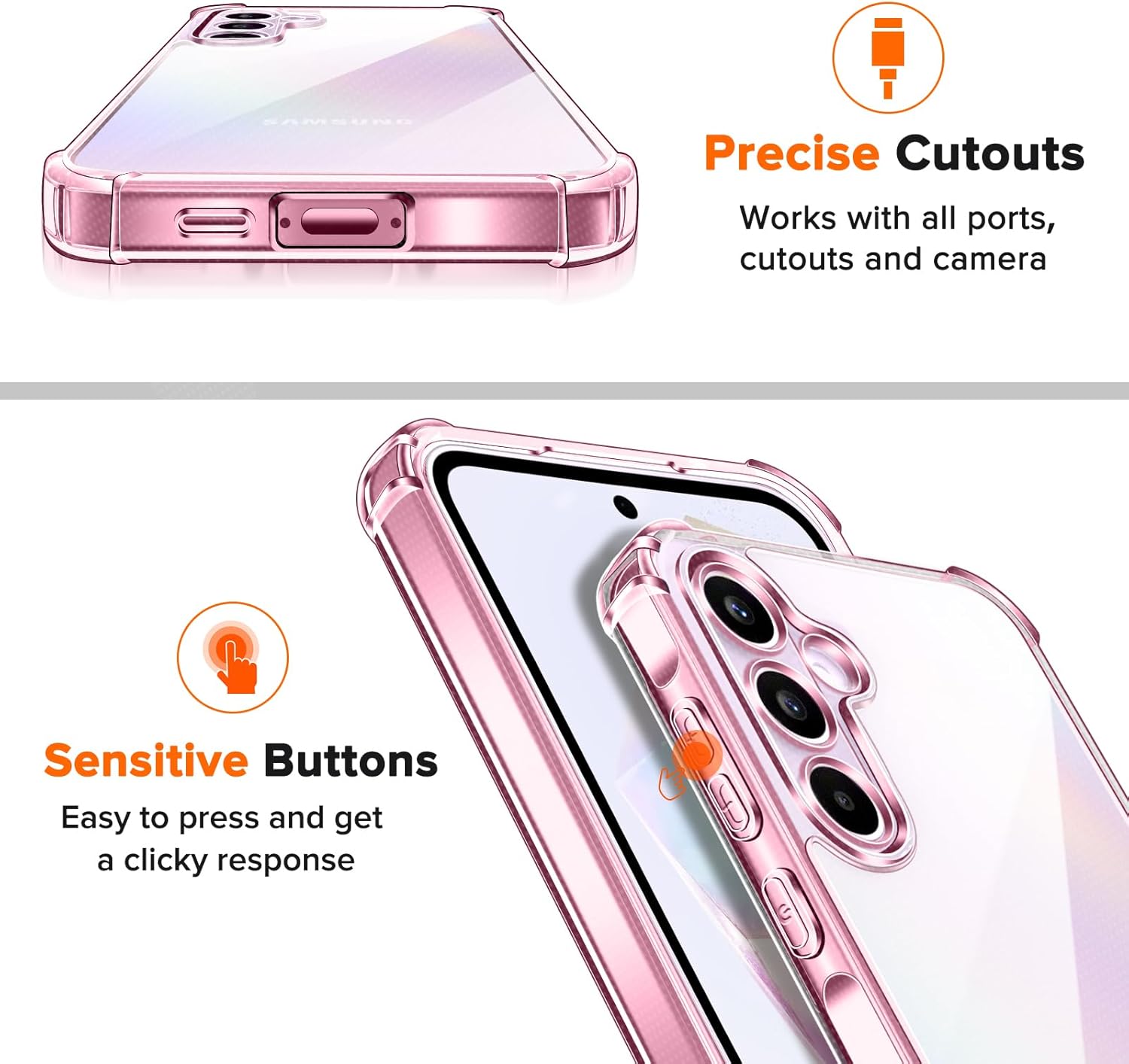 • Перфектно проектиран: кристално прозрачният калъф за мобилен телефон, съвместим със Samsung Galaxy A56 5G, показва оригиналния дизайн и красота на мобилния телефон. Всички портове и бутони са лесно достъпни и лесни за използване. Комбинацията от калъф и стъклено фолио осигурява най-добрата цялостна защита за вашия телефон.