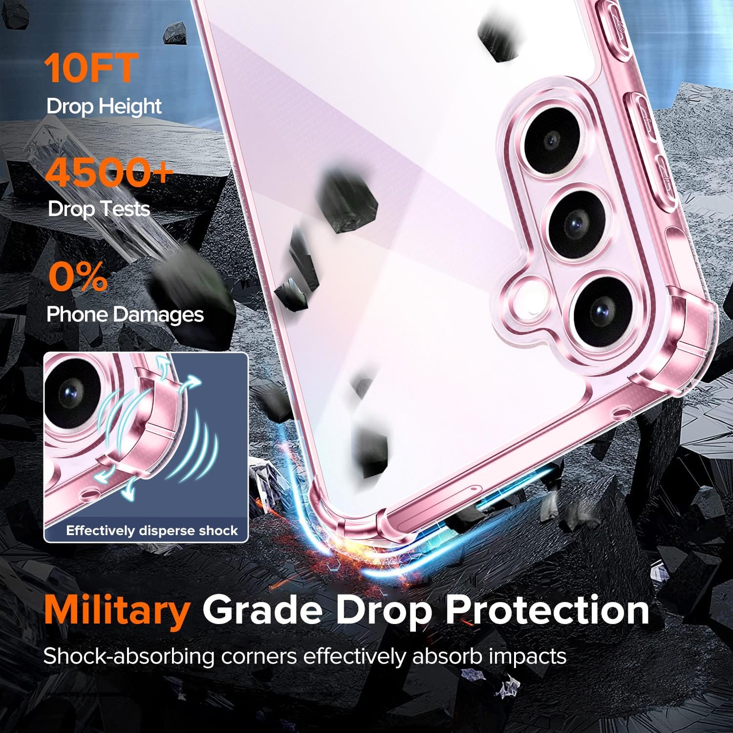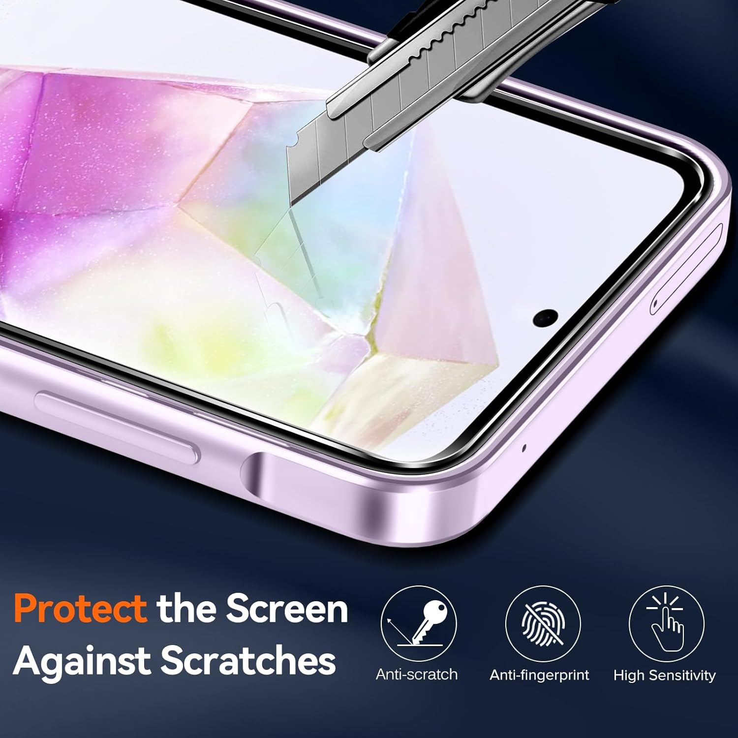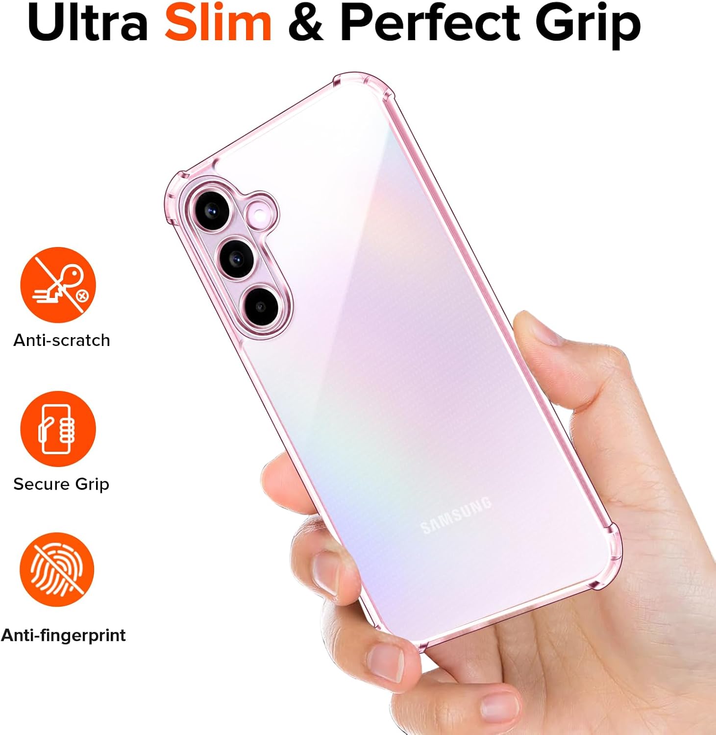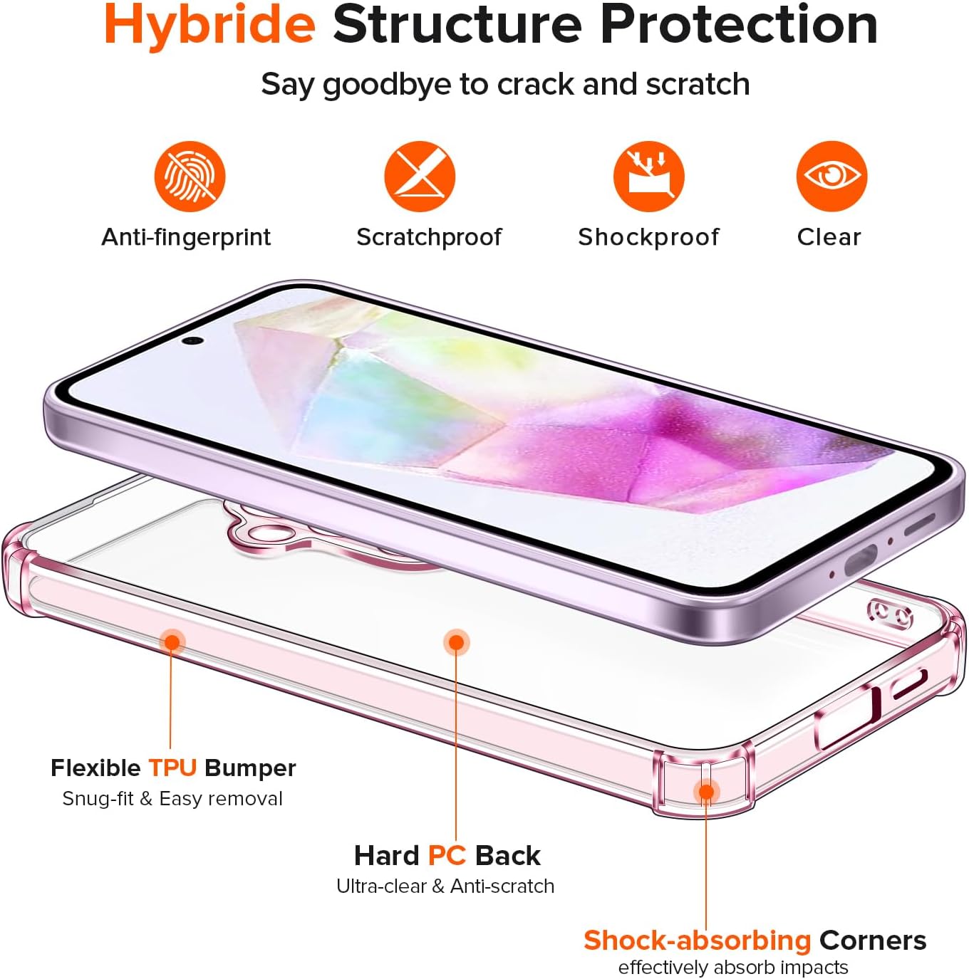 • Перфектно проектиран: кристално прозрачният калъф за мобилен телефон, съвместим със Samsung Galaxy A56 5G, показва оригиналния дизайн и красота на мобилния телефон. Всички портове и бутони са лесно достъпни и лесни за използване. Комбинацията от калъф и стъклено фолио осигурява най-добрата цялостна защита за вашия телефон.