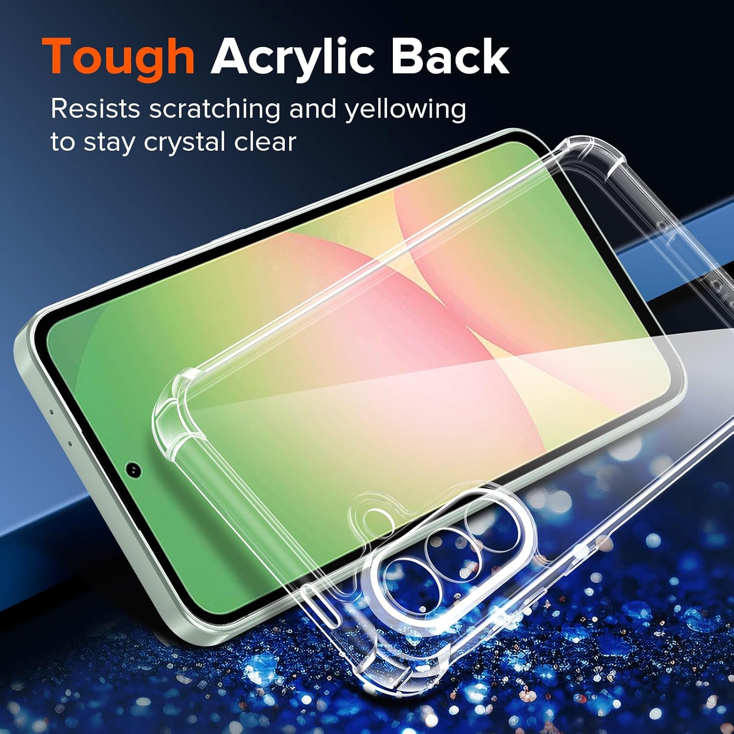 iVoler Never Yellowing прозрачен калъф за Samsung Galaxy A56 5G с удароустойчиви защитни ъгли, 1 калъф за мобилен телефон с 3 части защита от закалено стъкло, военна защита, прозрачен защитен