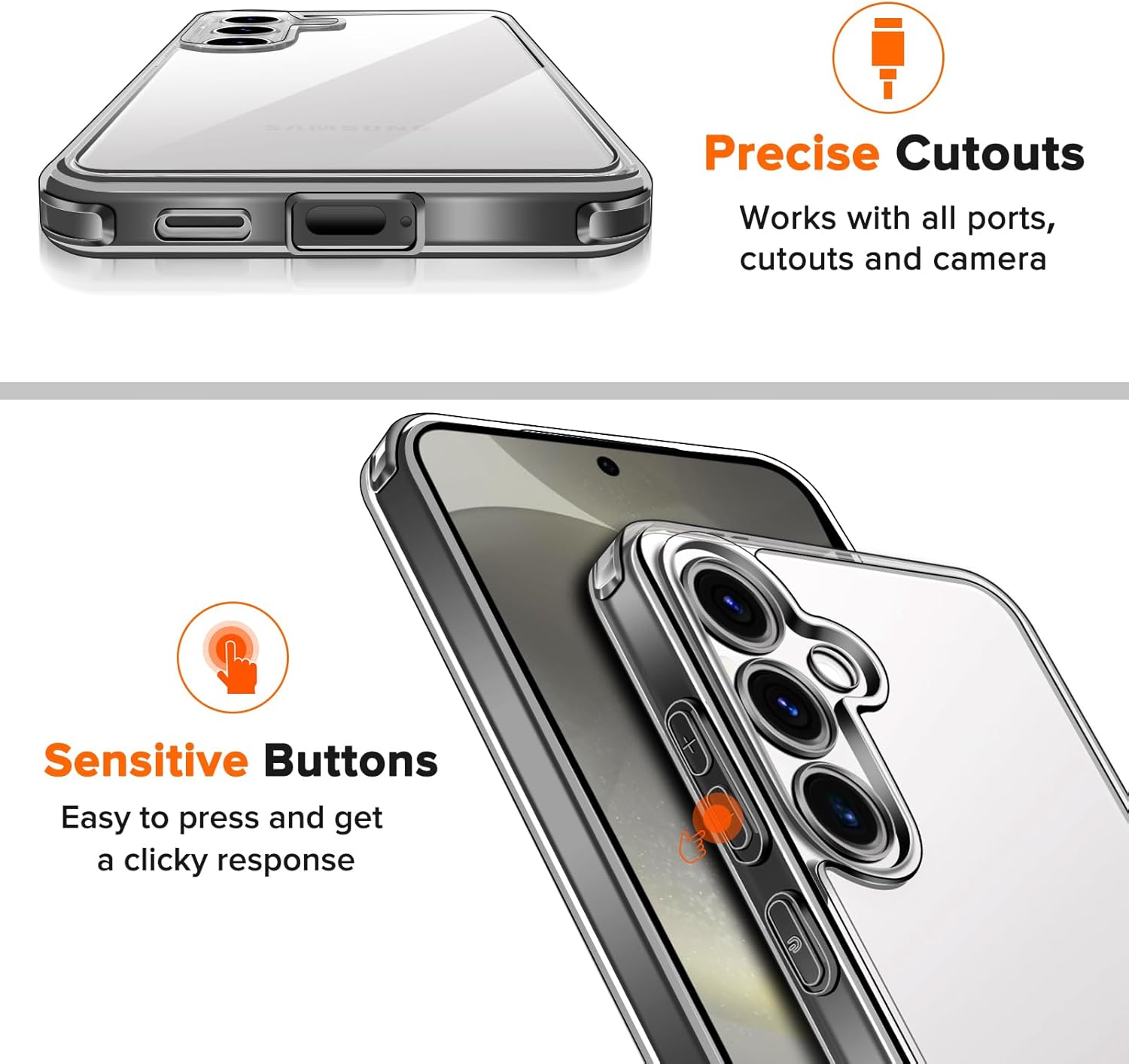 • Перфектно проектиран: кристално прозрачният калъф за мобилен телефон, съвместим със Samsung Galaxy S25 5G, показва оригиналния дизайн и красота на мобилния телефон. Всички портове и бутони са лесно достъпни и лесни за използване. Комбинацията от калъф и стъклено фолио осигурява най-добрата цялостна защита за вашия телефон.