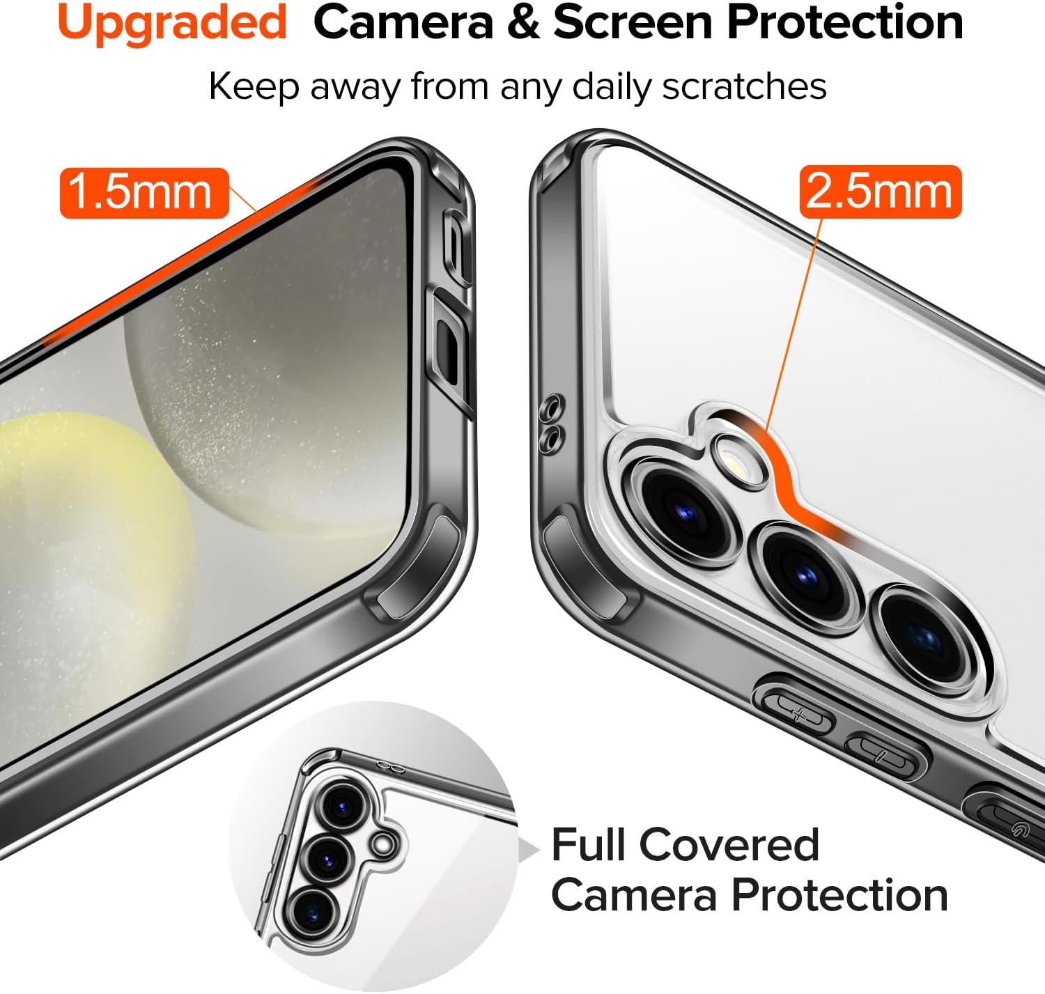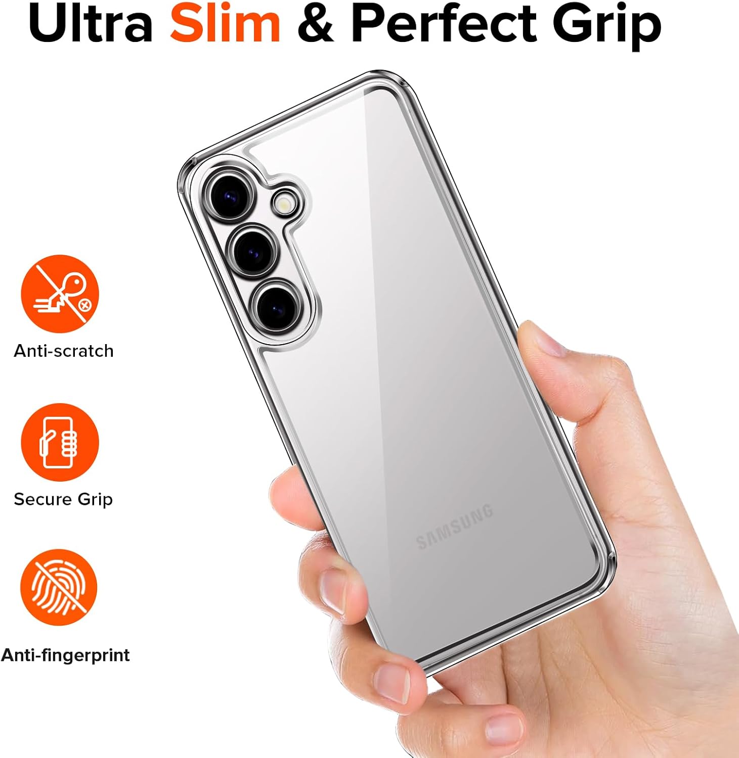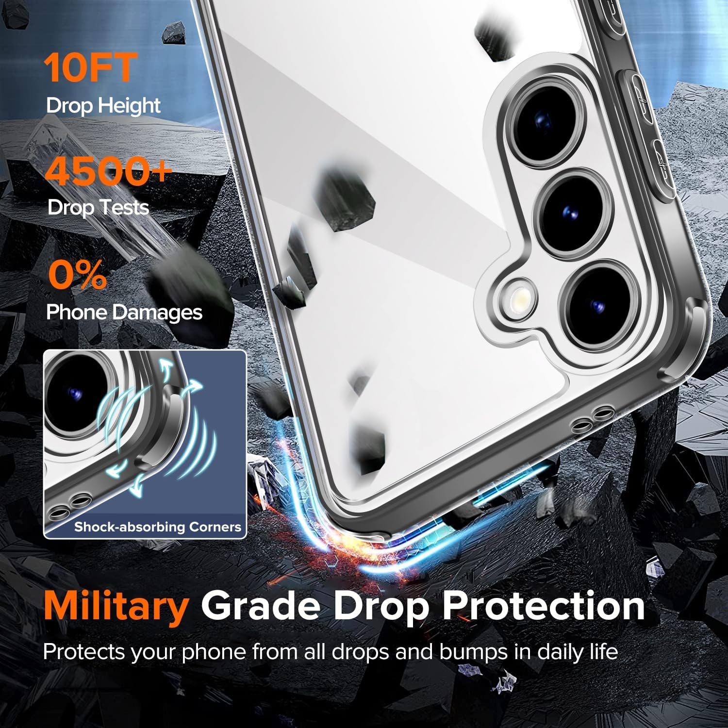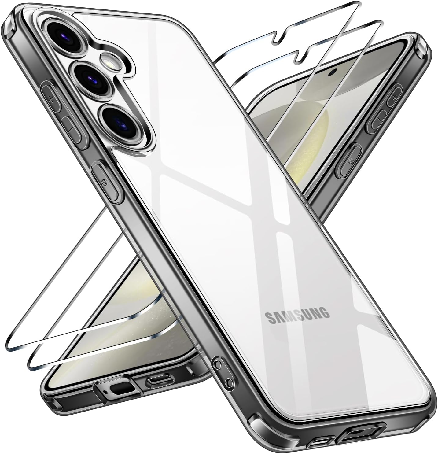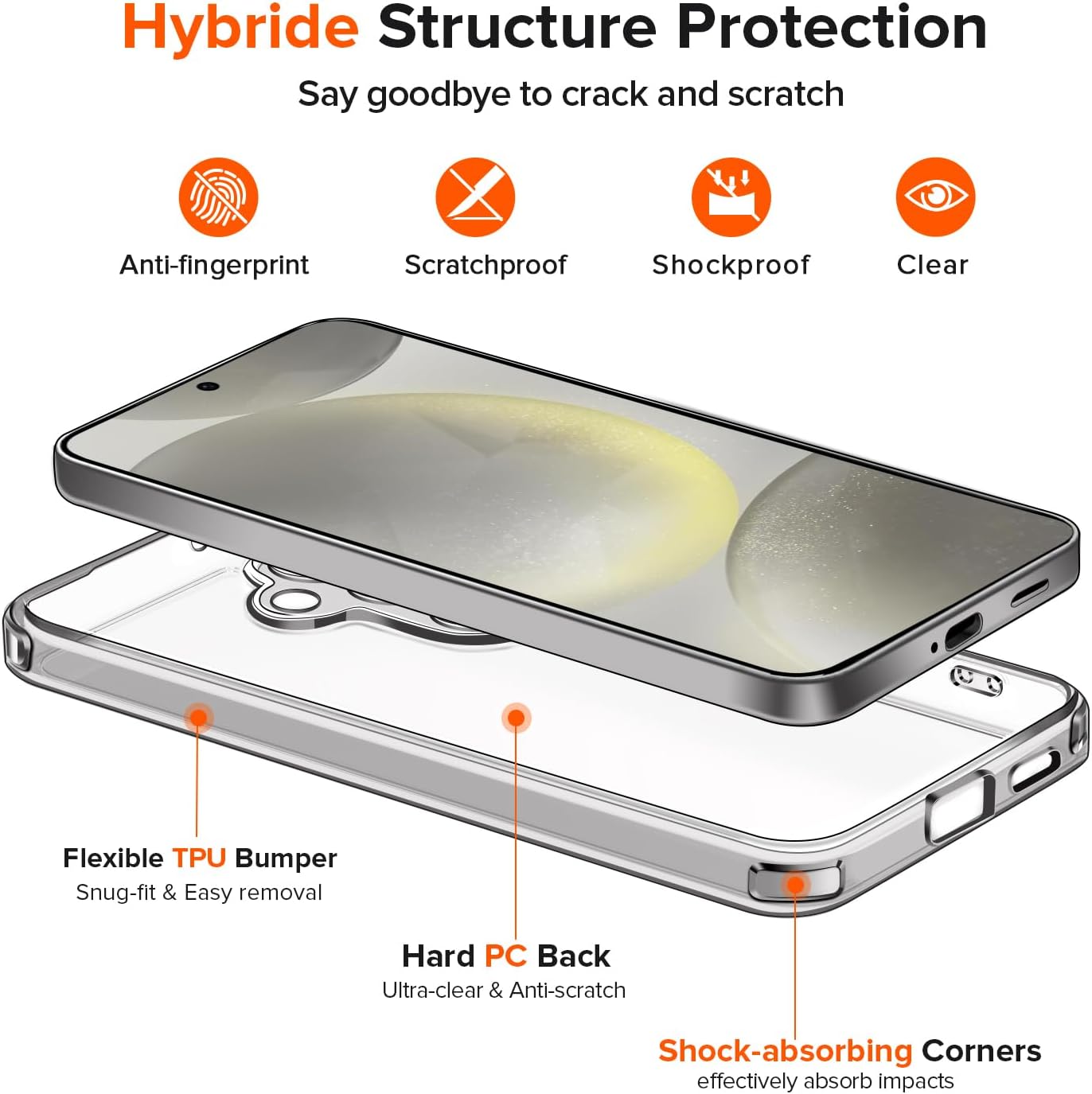 ivoler Never Yellowing прозрачен калъф за Samsung Galaxy S24 5G, 1 калъф за мобилен телефон с 2 части защита от закалено стъкло, военна защита, удароустойчив прозрачен защитен калъф, тънък прозрачен