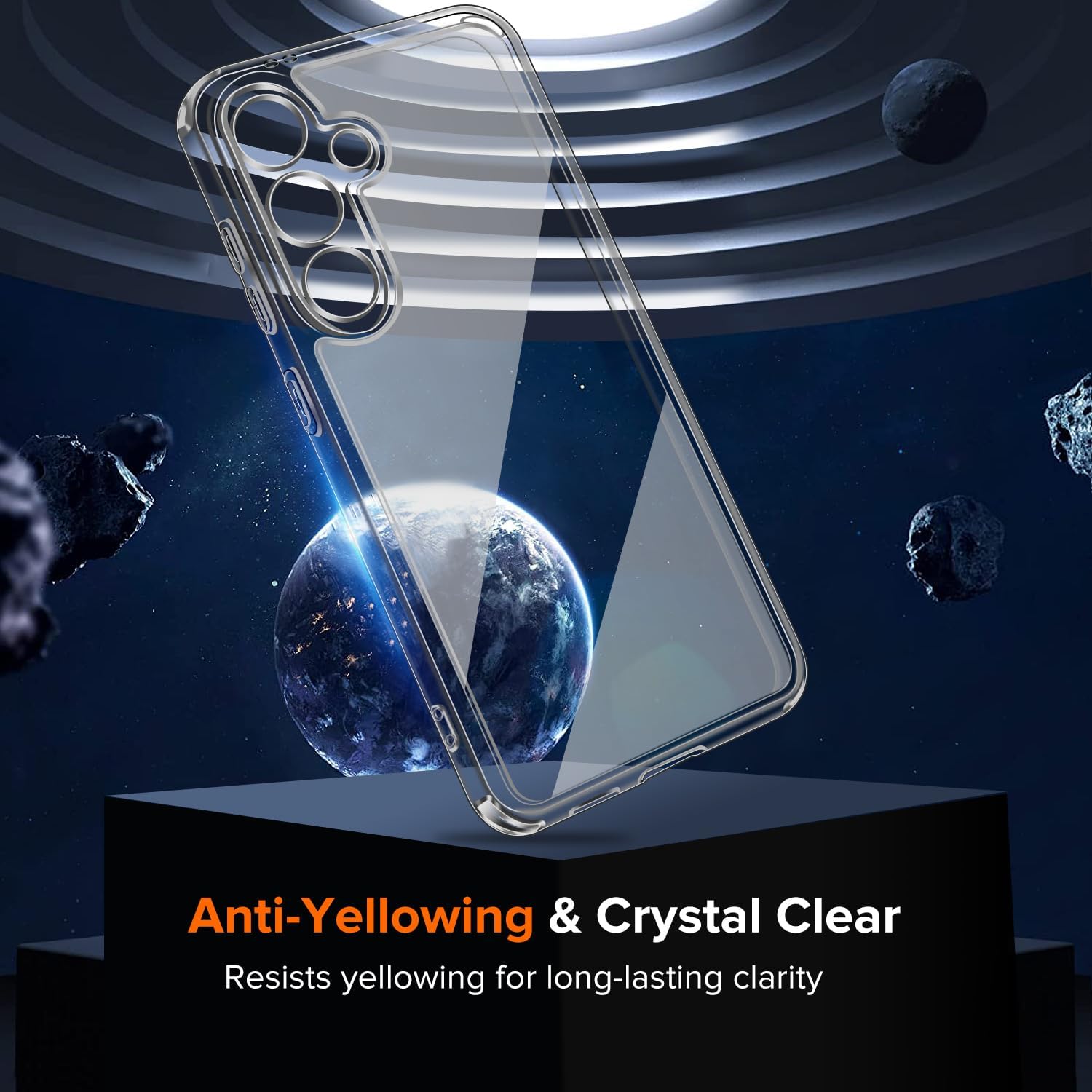 • Кристално чист и без пожълтяване: кристално прозрачният PC гръб остава без пожълтяване за по-дълго време. Използвайте ултрапрозрачния TPU материал от Германия, за да се насладите на оригиналната красота на вашия телефон. Нано антиоксидантният слой ефективно е устойчив на петна и пот, не се омазнява и не пожълтява лесно с времето, показвайки перфектно оригиналния цвят на вашия телефон.