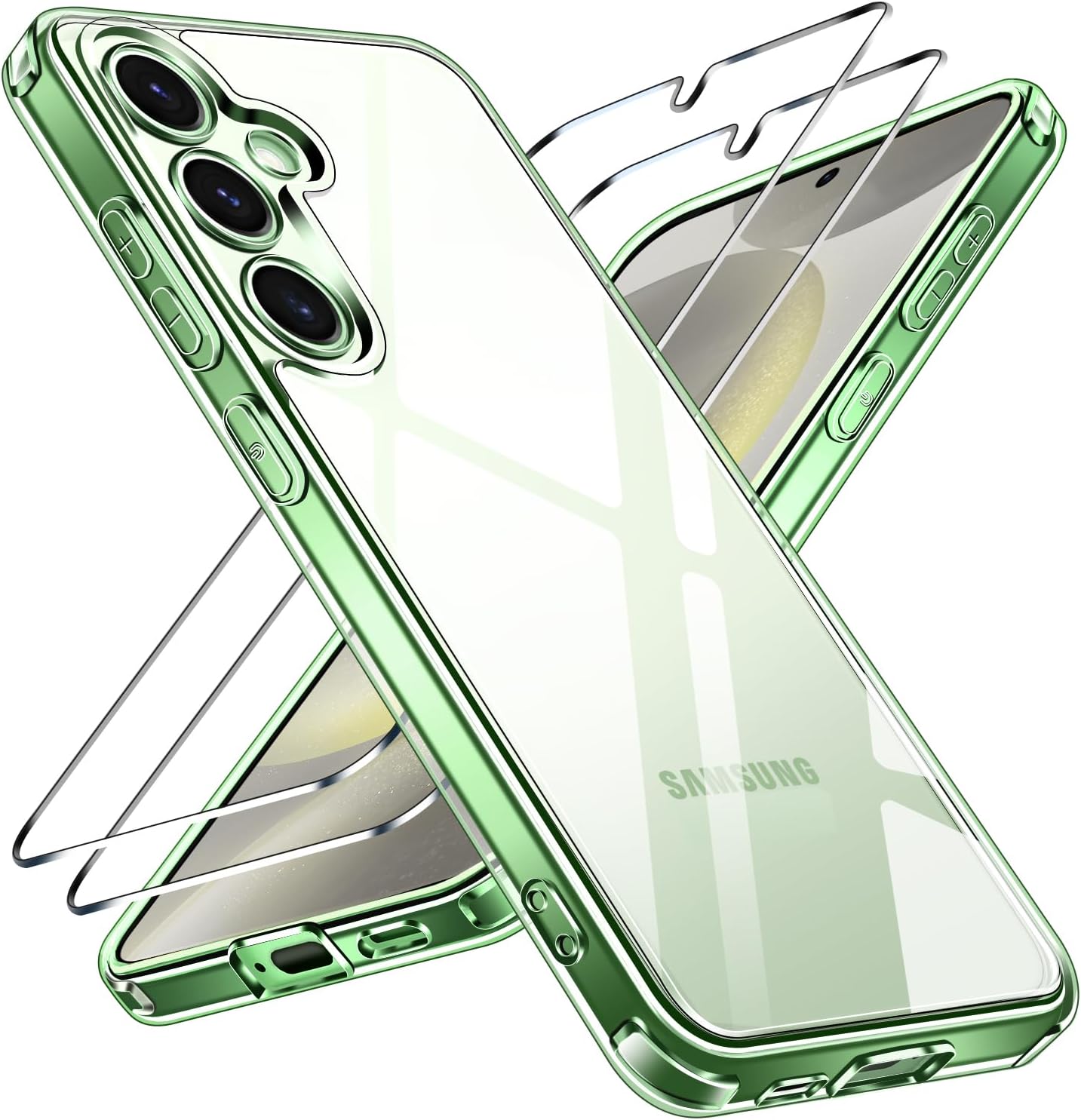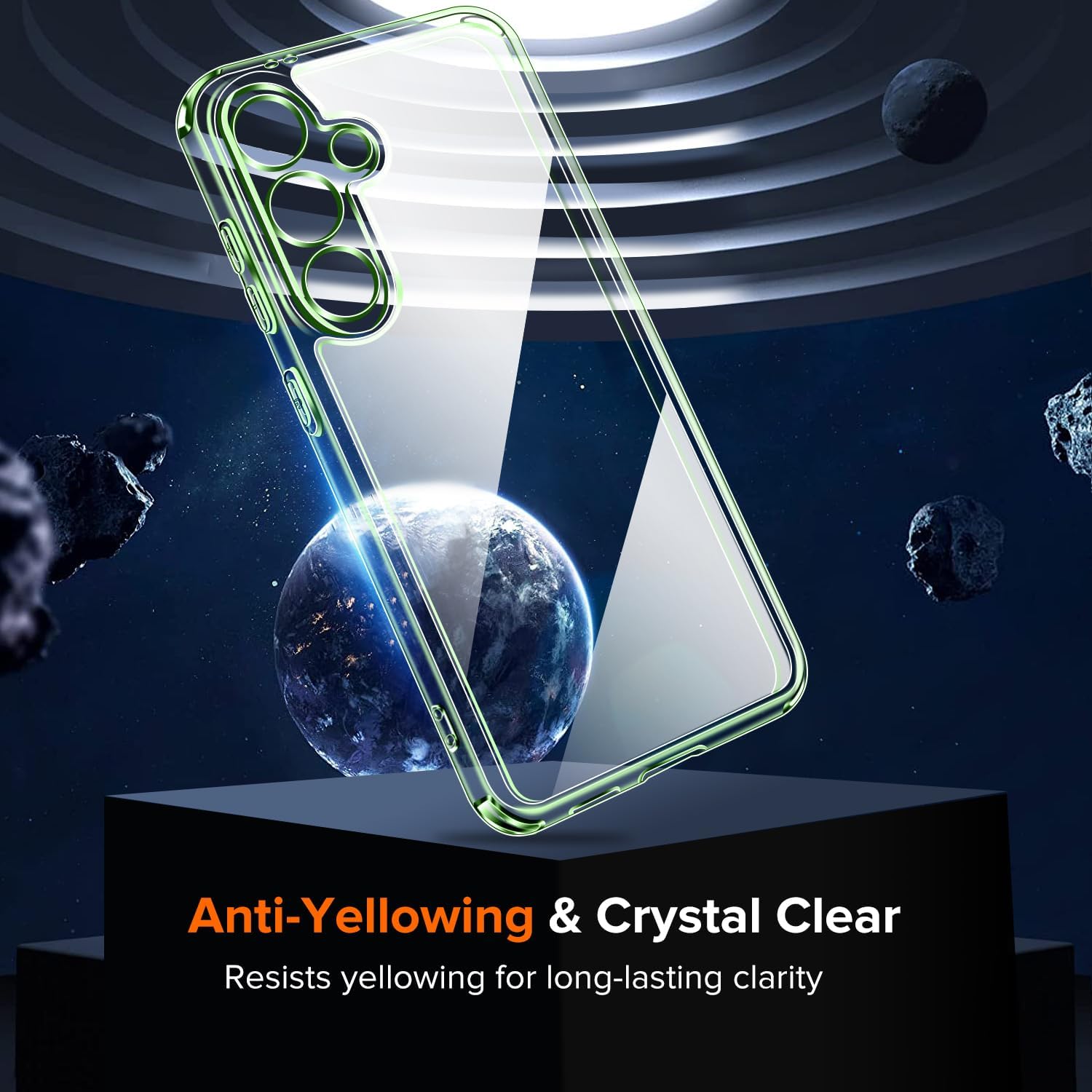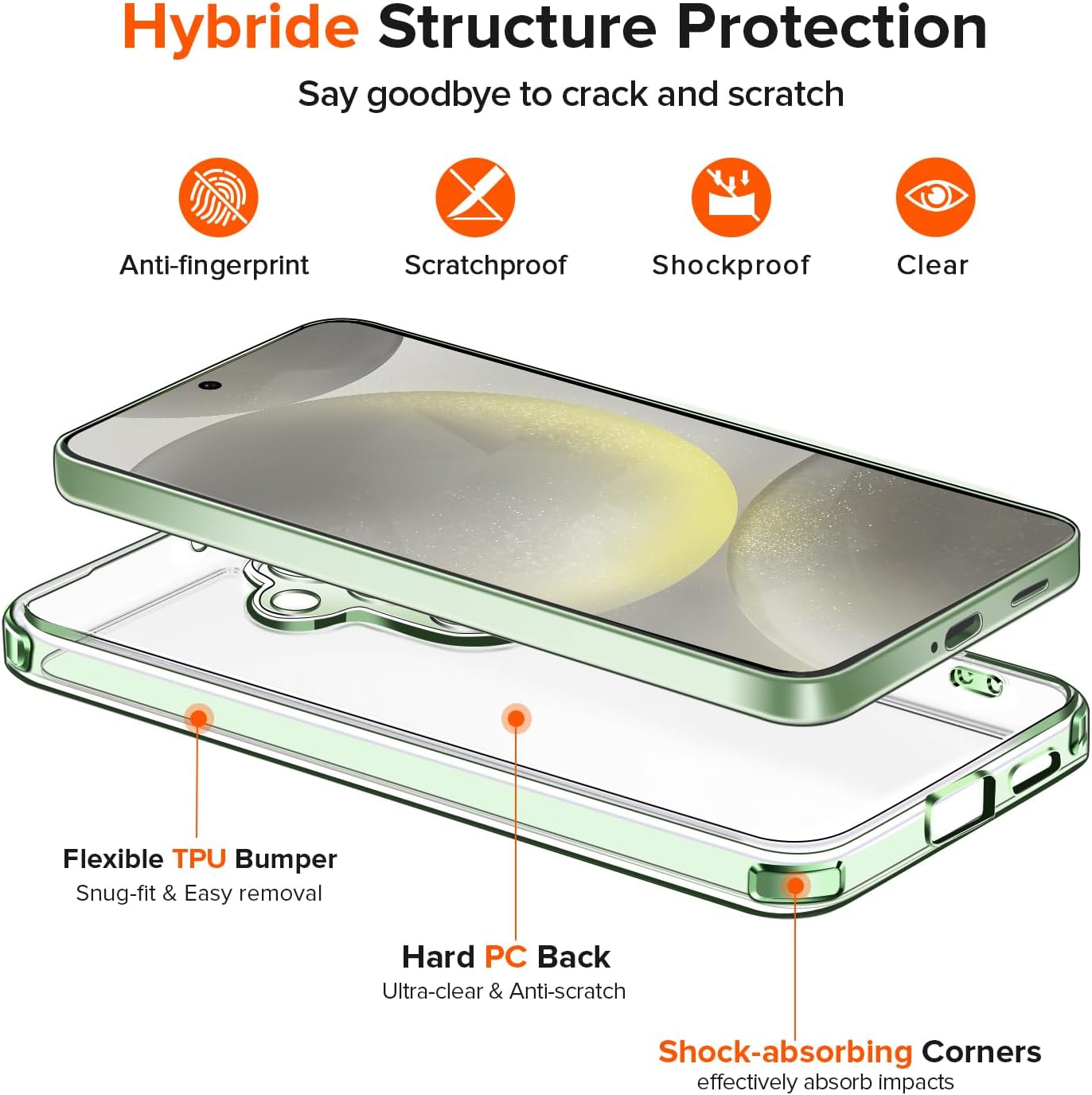 ivoler Never Yellowing прозрачен калъф за Samsung Galaxy S24 5G, 1 калъф за мобилен телефон с 2 части защита от закалено стъкло, военна защита, удароустойчив прозрачен защитен калъф, тънък прозрачен