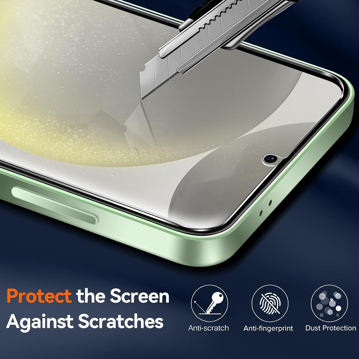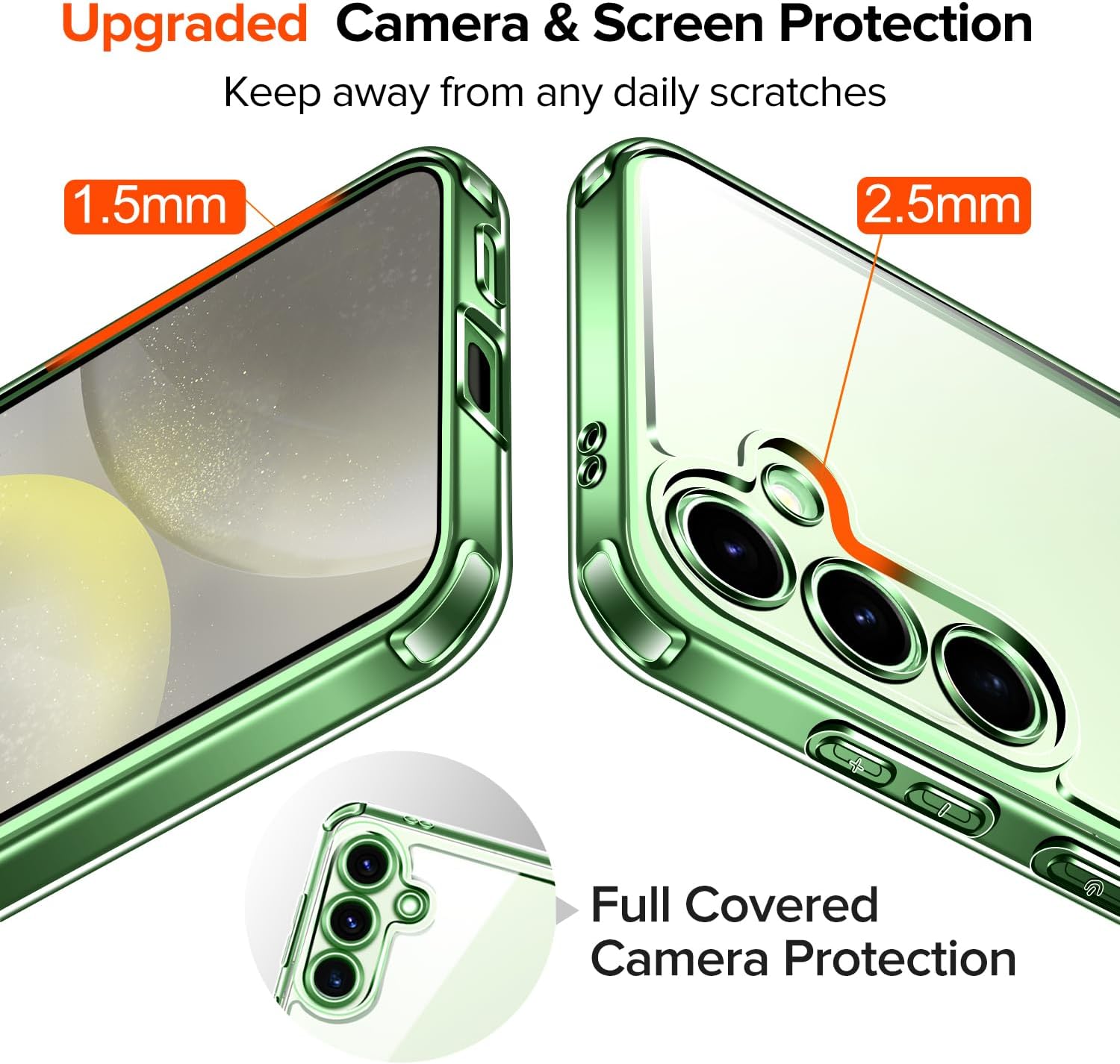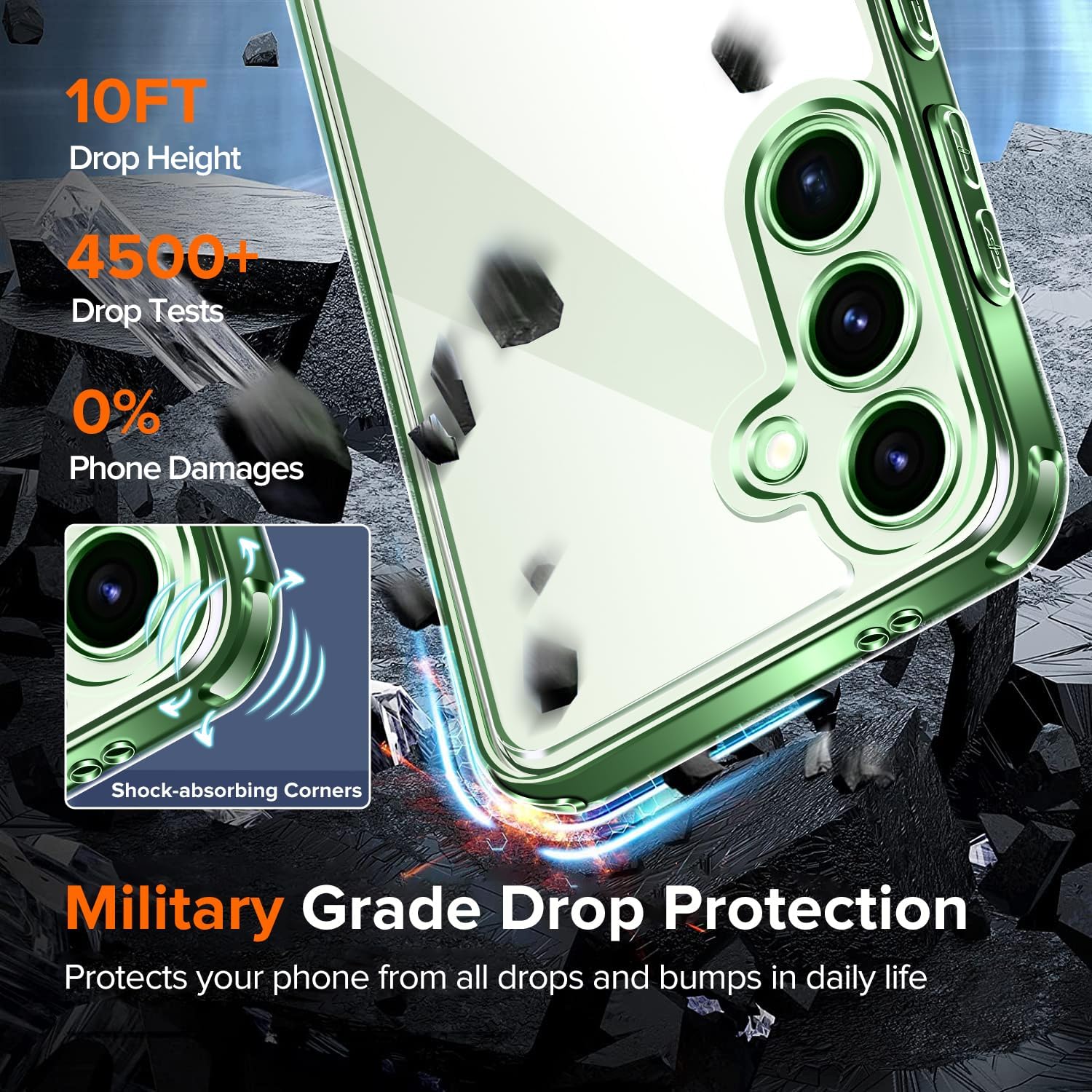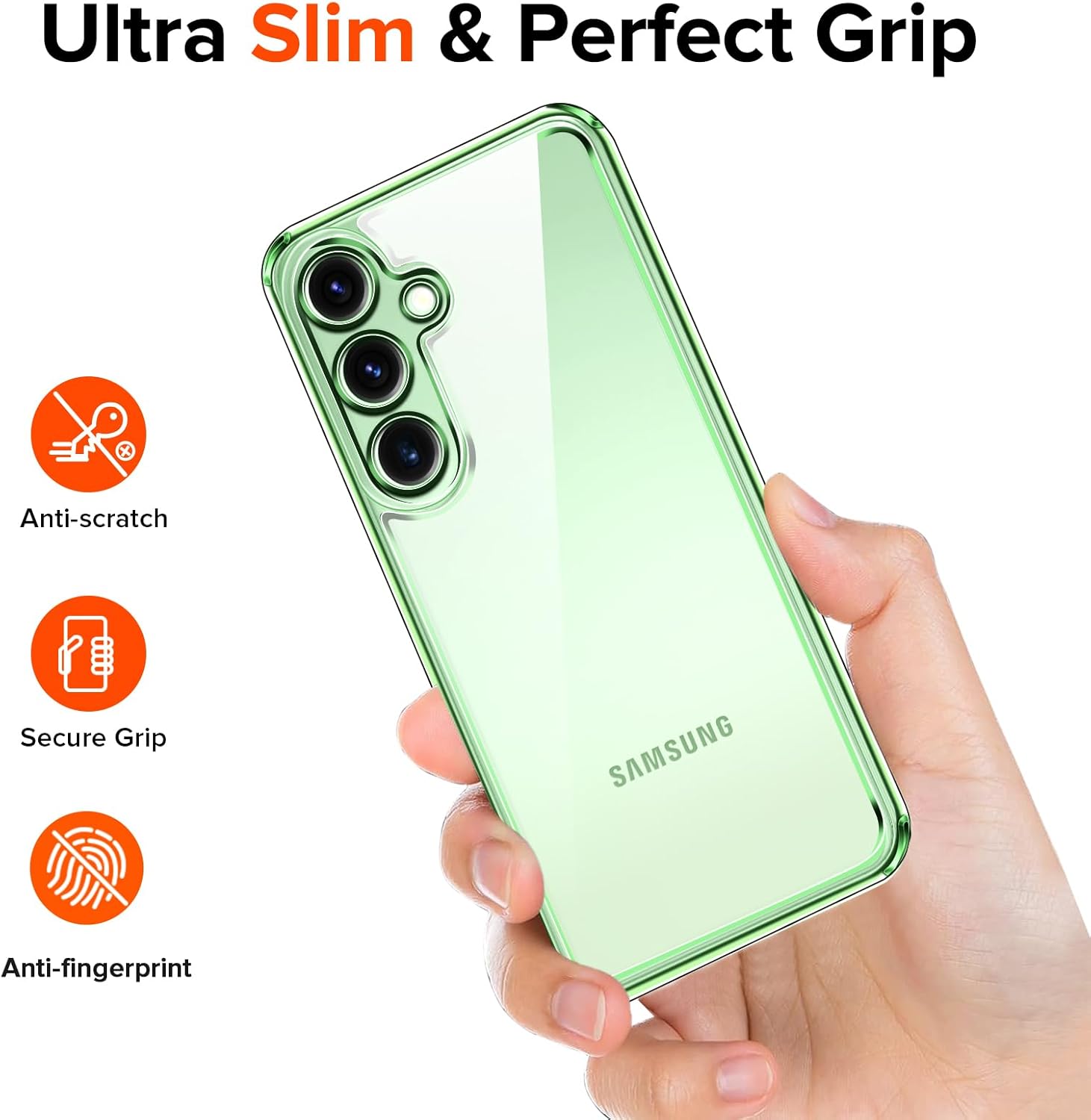 ivoler Never Yellowing прозрачен калъф за Samsung Galaxy S24 5G, 1 калъф за мобилен телефон с 2 части защита от закалено стъкло, военна защита, удароустойчив прозрачен защитен калъф, тънък прозрачен