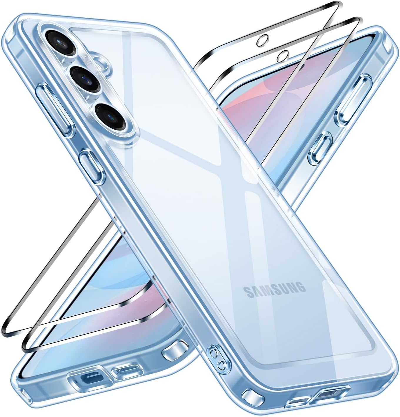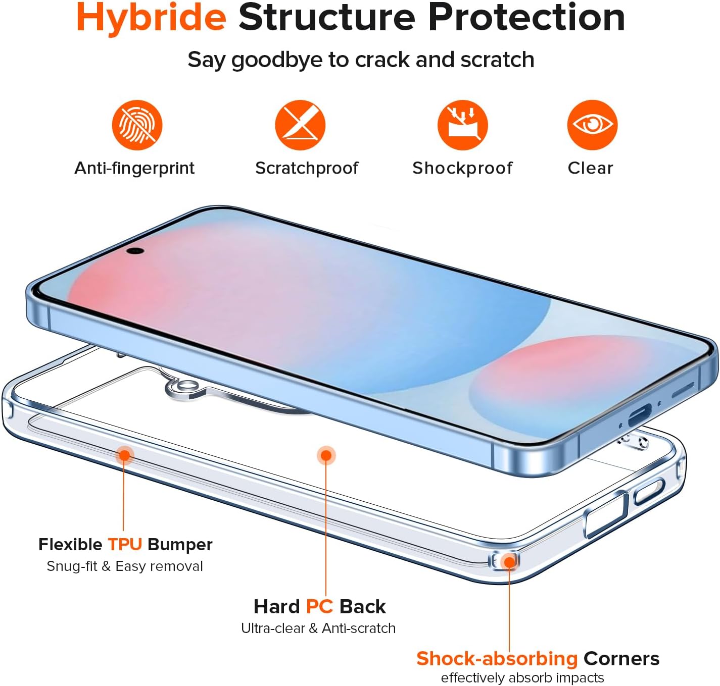ivoler Never Yellowing прозрачен калъф за Samsung Galaxy S24 FE 5G (не е за Samsung Galaxy S24 5G), 1 калъф за мобилен телефон с 2 части защита от закалено стъкло, удароустойчив, прозрачен защитен калъф,