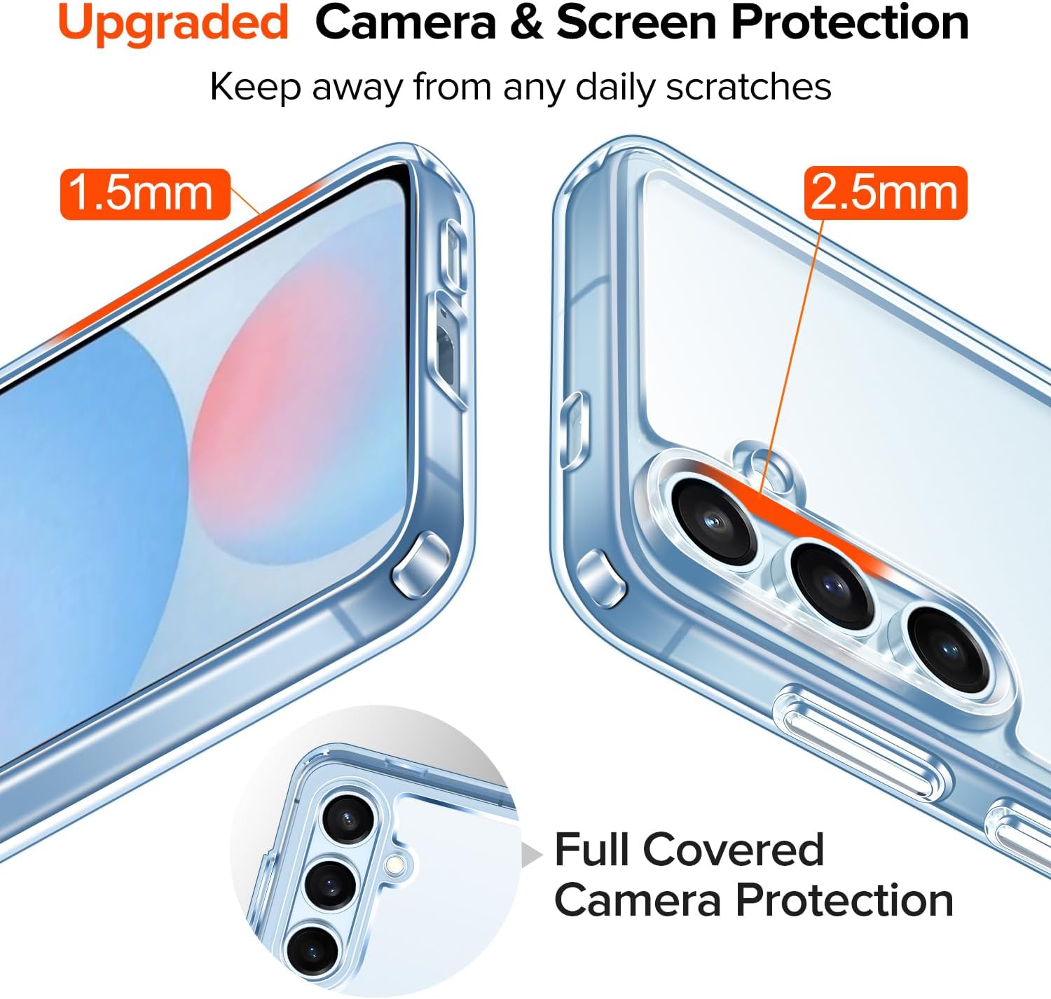 • Повишена защита на камерата и екрана: камерата и екранът са двете най-скъпи и крехки части на целия мобилен телефон. Повдигнатите ръбове около предния екран и обектива на камерата могат ефективно да се справят с последиците от внезапно изпускане или удар, без да надраскат красивия ви телефон!