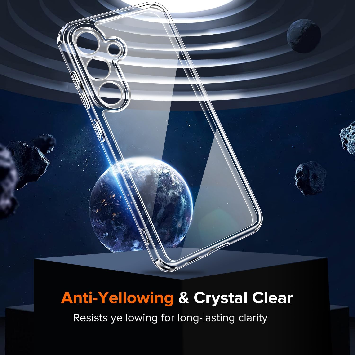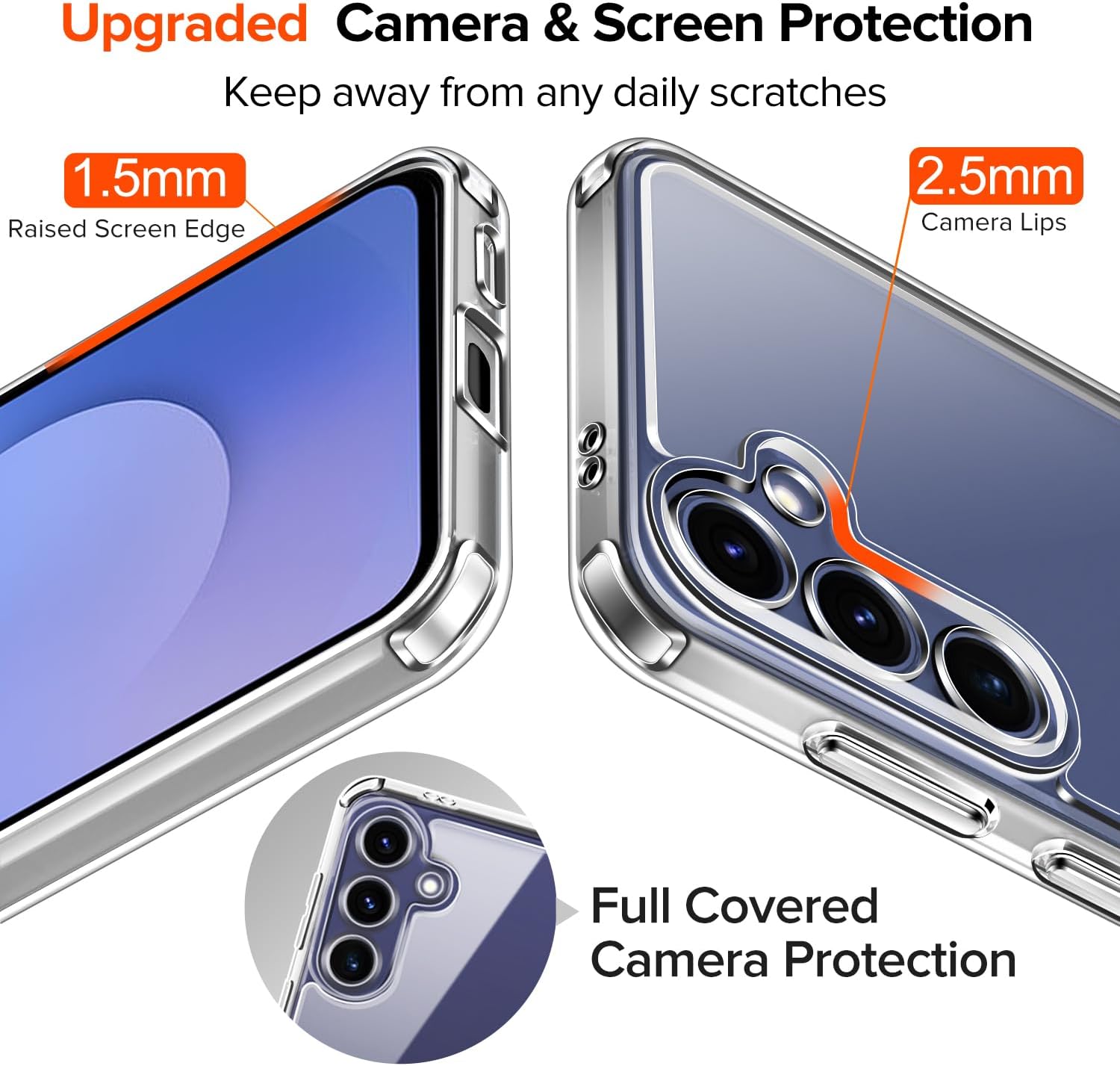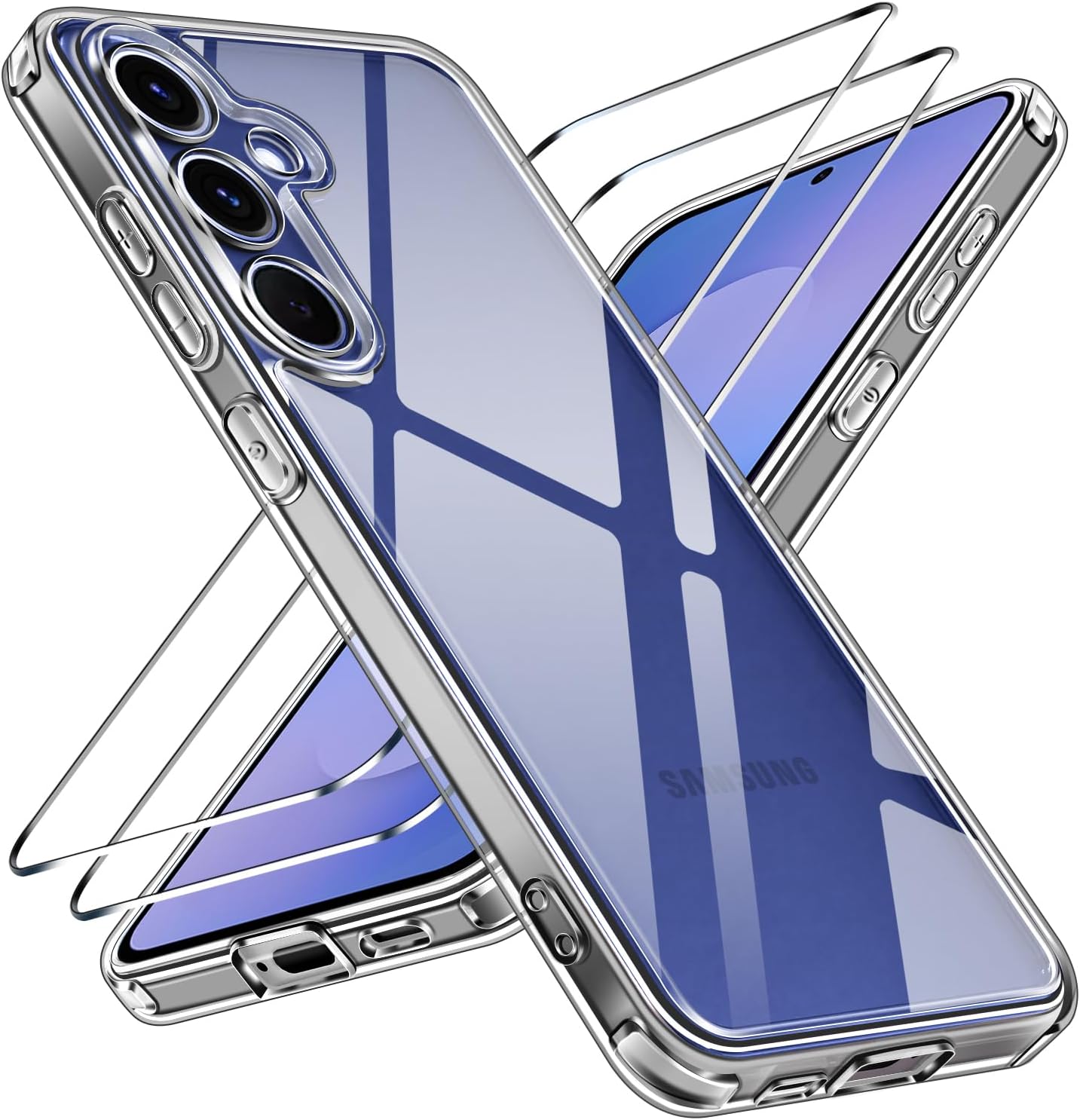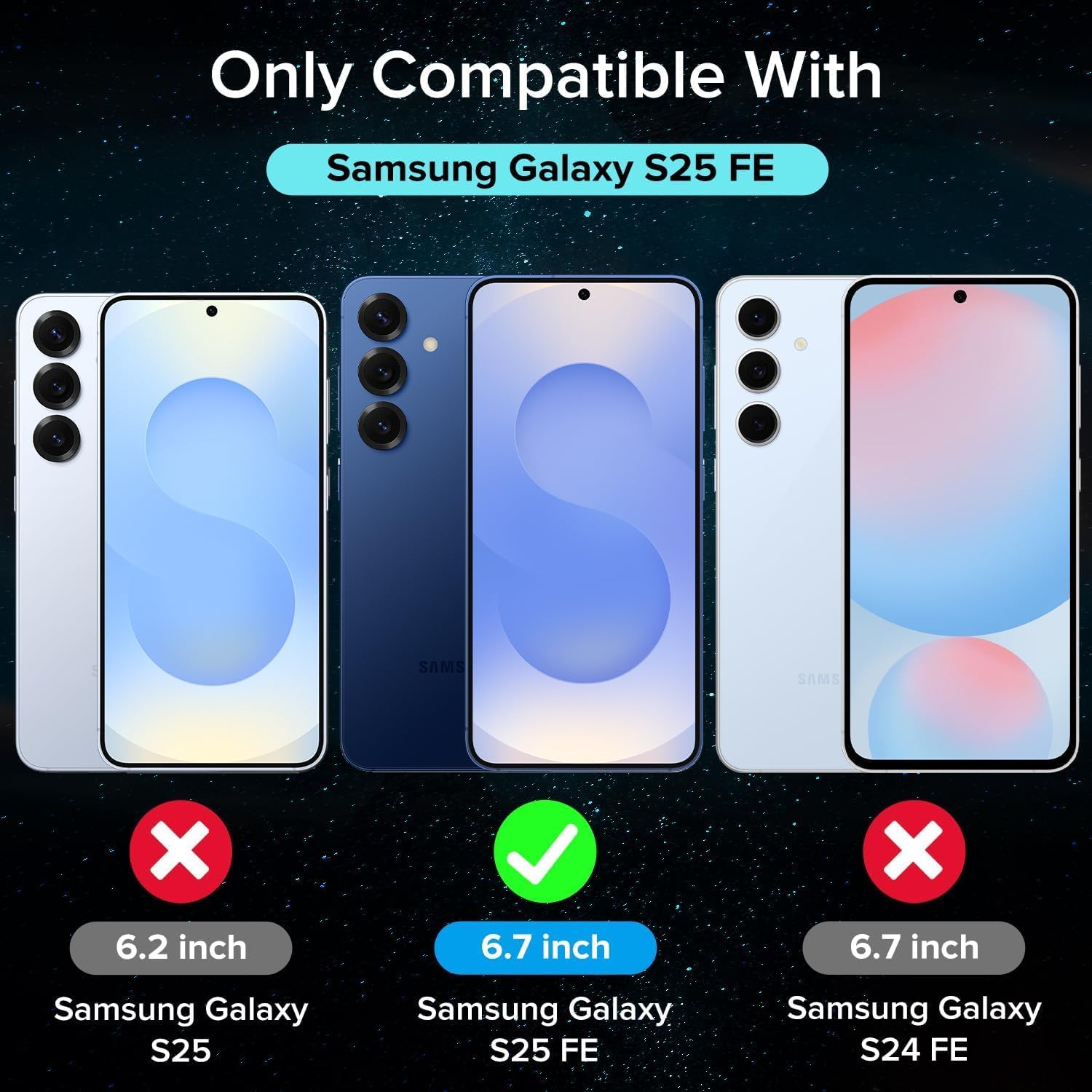 ivoler Never Yellowing прозрачен калъф за Samsung Galaxy S25 FE 5G (не е за Samsung S25), 1 калъф за мобилен телефон с 2 части защитно стъкло от закалено стъкло, военен удароустойчив прозрачен защитен калъф