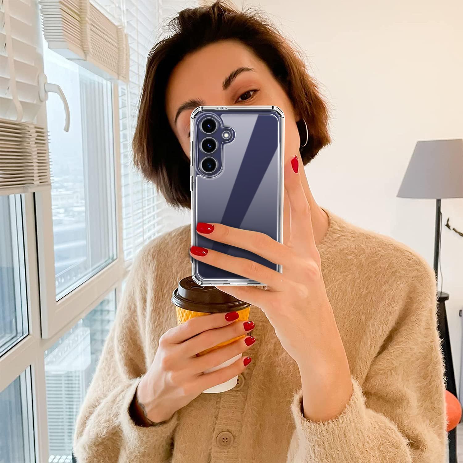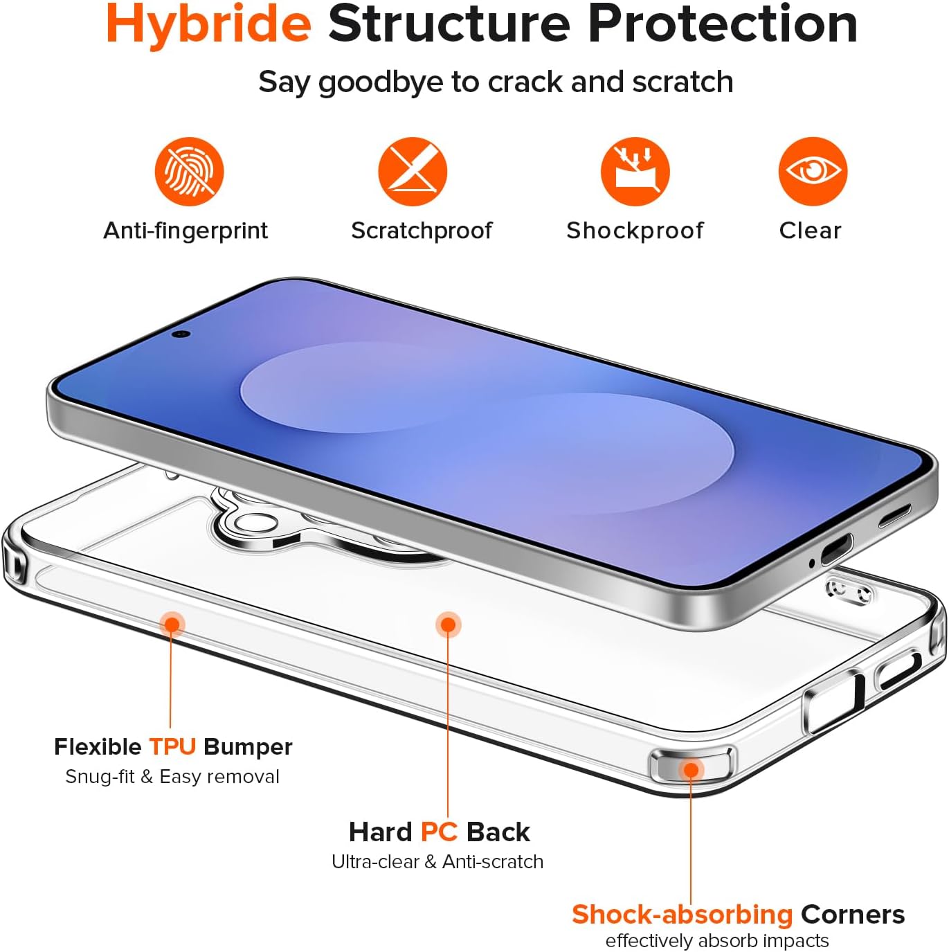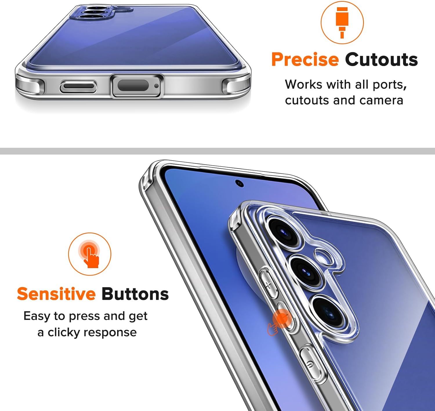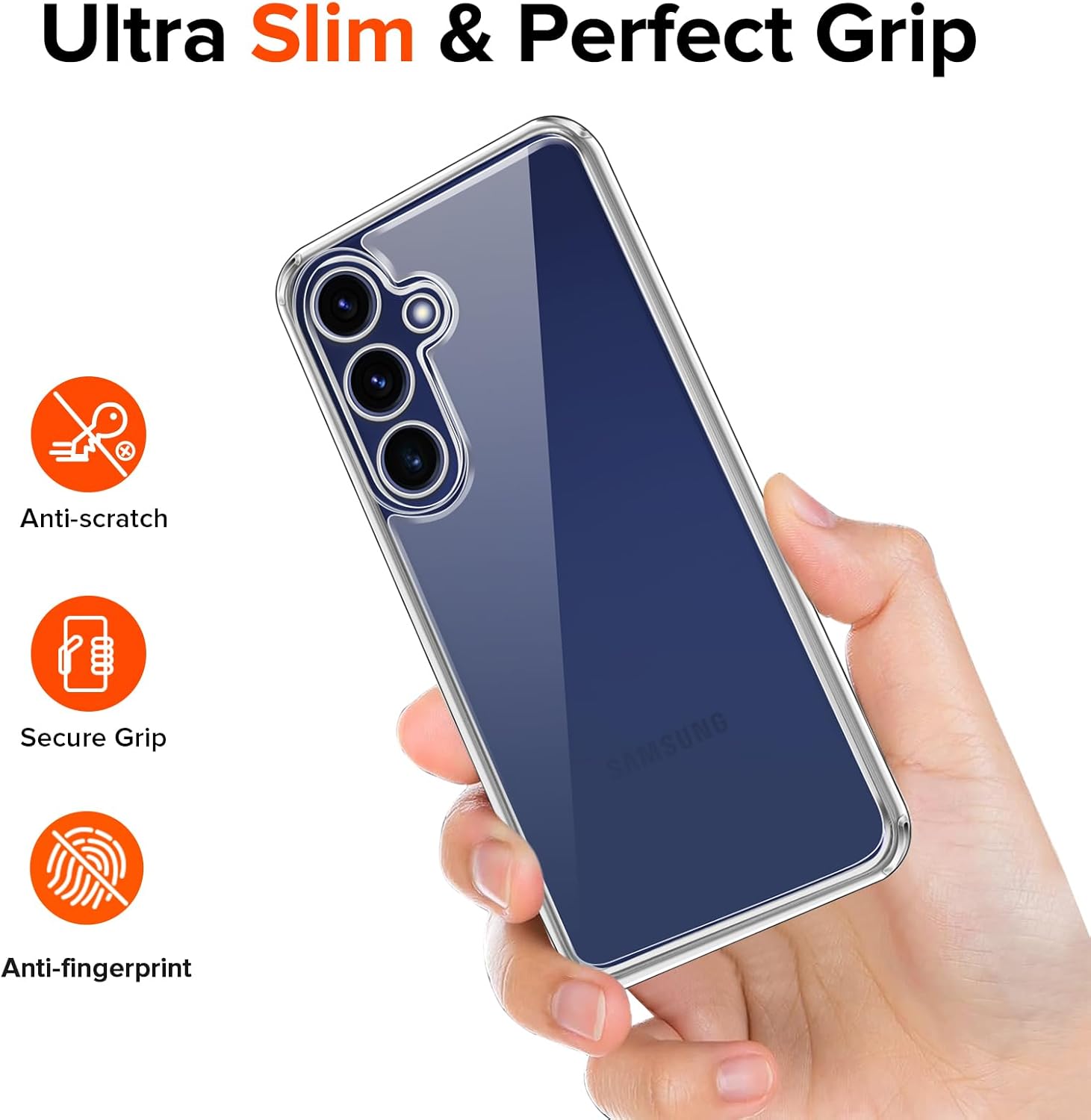 ivoler Never Yellowing прозрачен калъф за Samsung Galaxy S25 FE 5G (не е за Samsung S25), 1 калъф за мобилен телефон с 2 части защитно стъкло от закалено стъкло, военен удароустойчив прозрачен защитен калъф