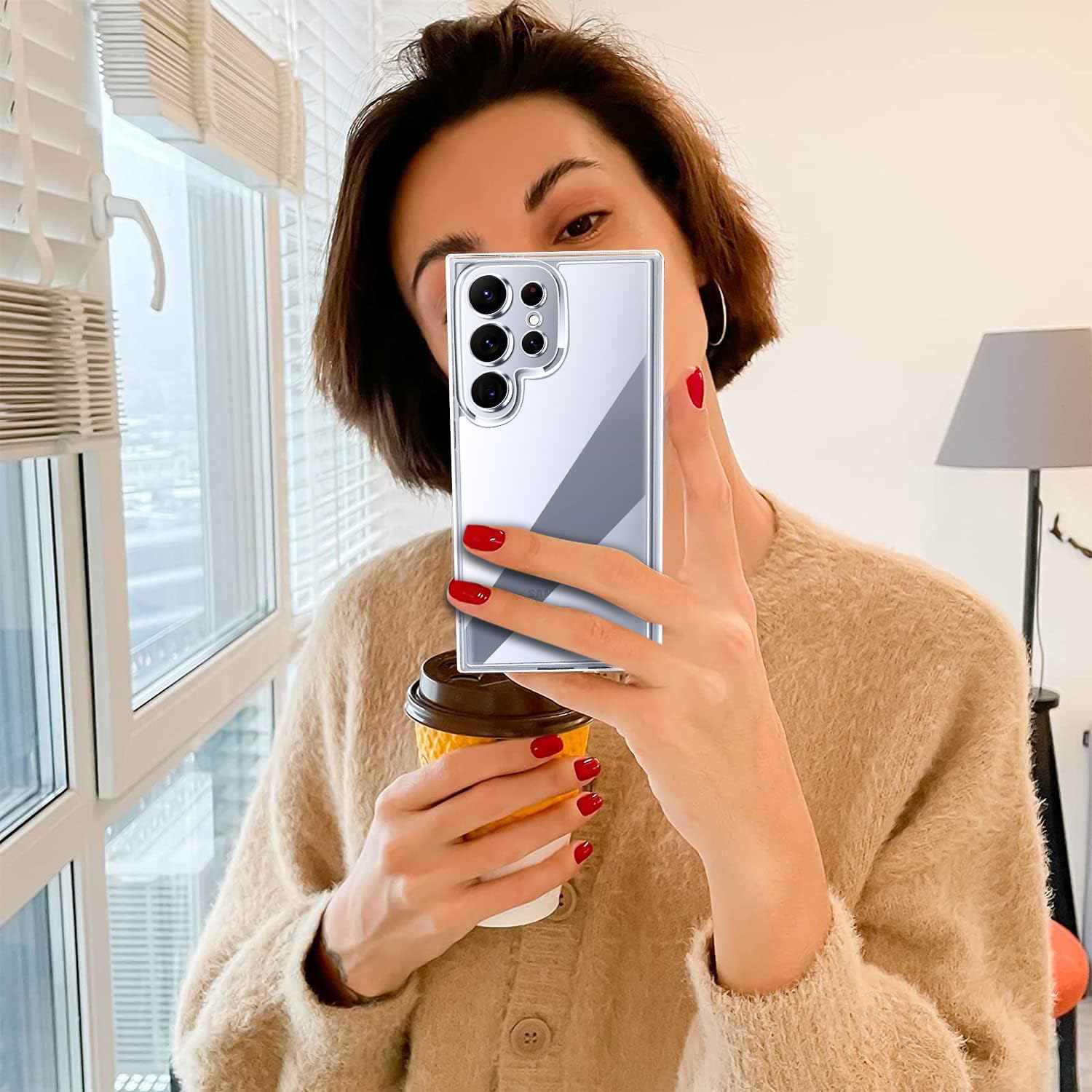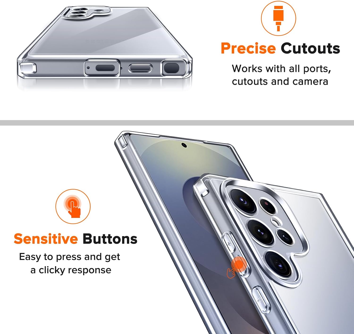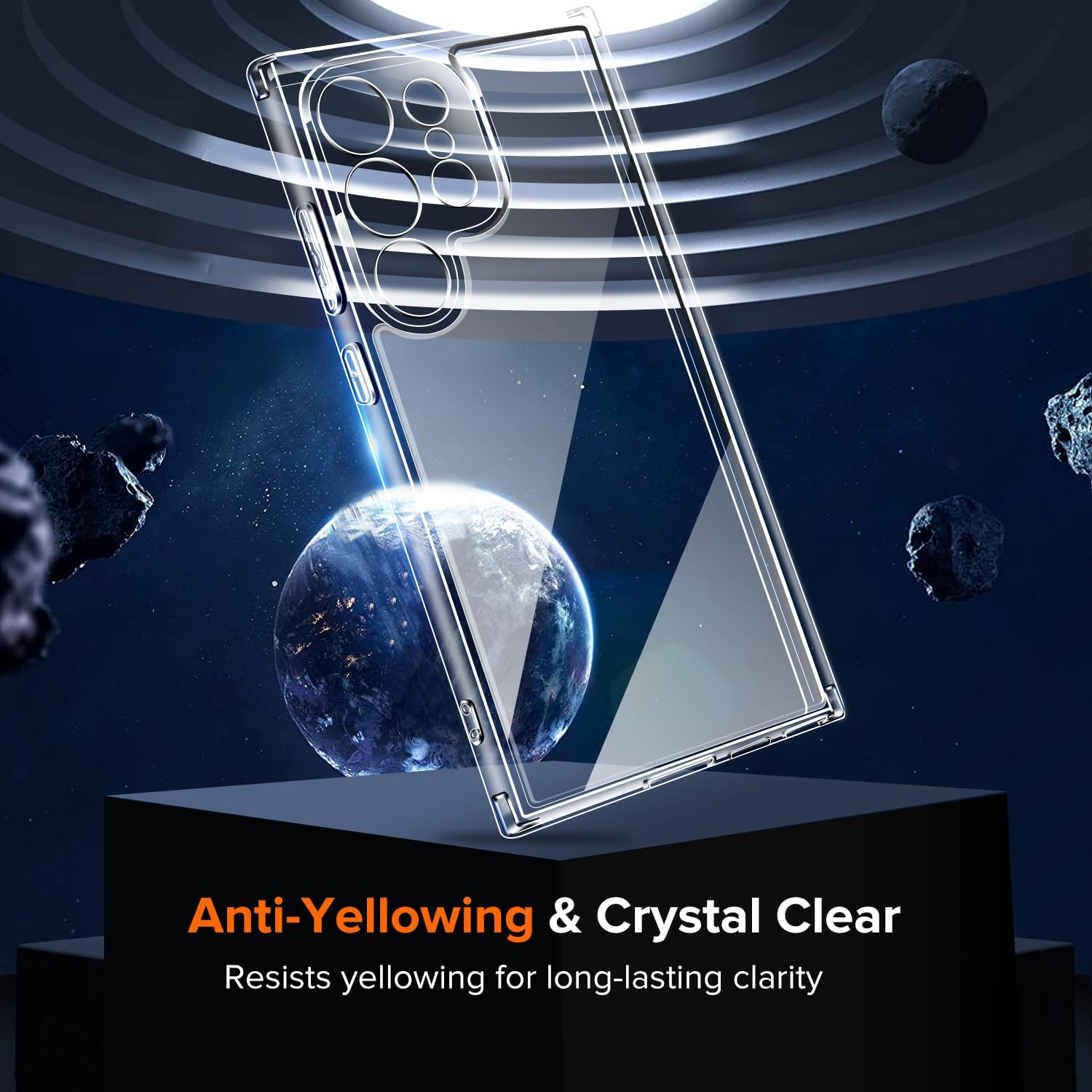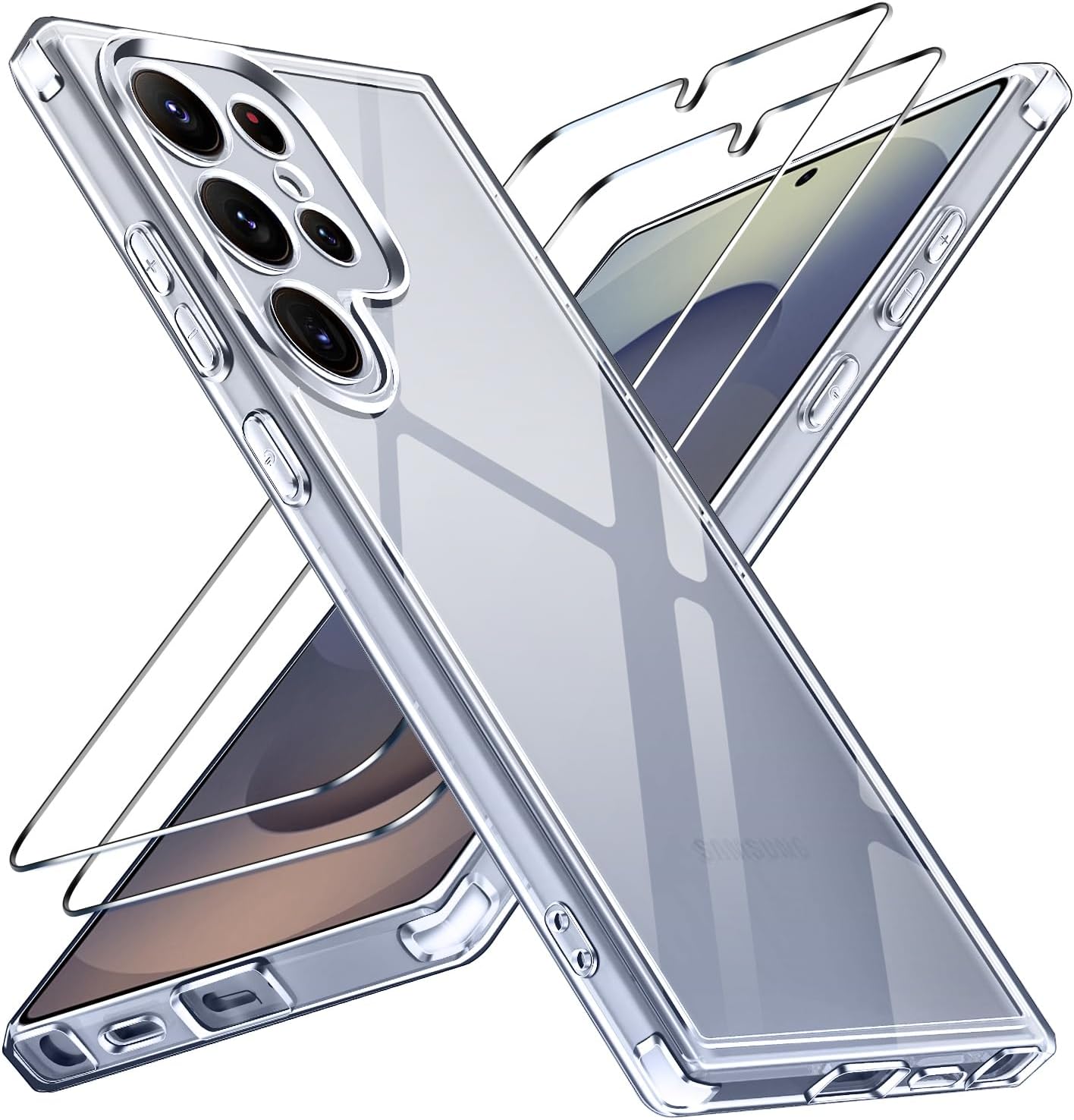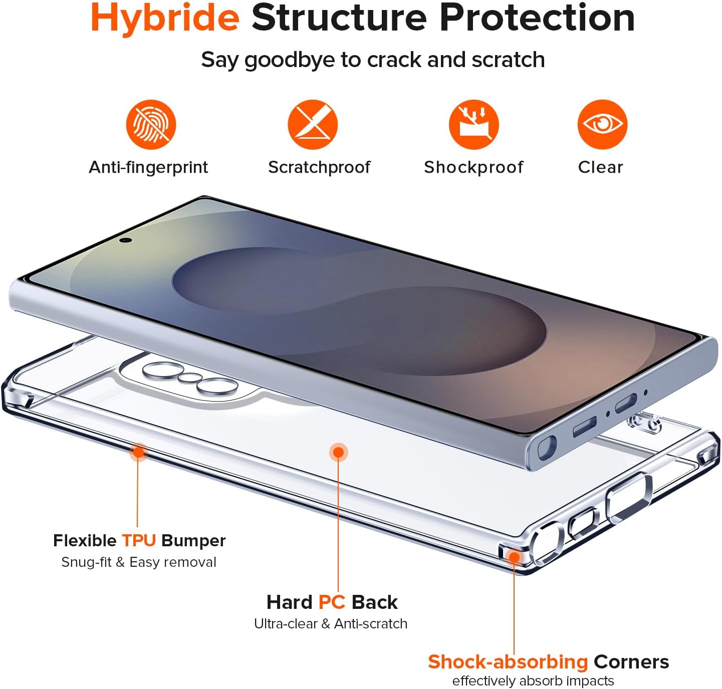 ivoler Never Yellowing прозрачен калъф за Samsung Galaxy S25 Ultra 5G, 1 калъф за мобилен телефон с 2 части защита от закалено стъкло, военна защита, удароустойчив прозрачен защитен калъф, тънък