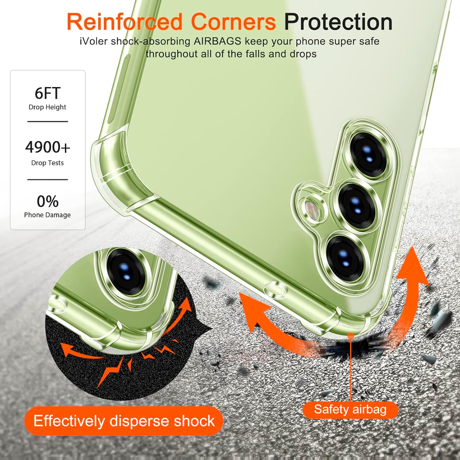 • Отлична защита от военно ниво: твърд PC заден панел обгражда мека TPU броня с абсорбиращи ударите „въздушни възглавници“ в 4 ъгъла, които могат ефективно да абсорбират и разпределят 99,99% от удара при падане. Тестван да издържа на реални ситуации, включително тестове за падане от множество ъгли от 3 метра и екстремни надрасквания. Така телефонът ви е защитен от скъпи и досадни ремонти.