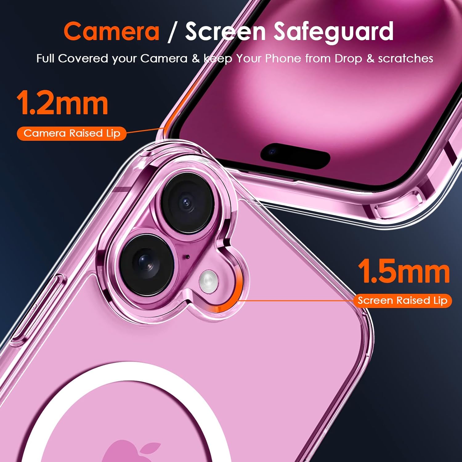 ivoler Прозрачен магнитен калъф за iPhone 16 Plus, никога не пожълтява, военна защита, удароустойчив, устойчив на надраскване, прозрачен защитен калъф