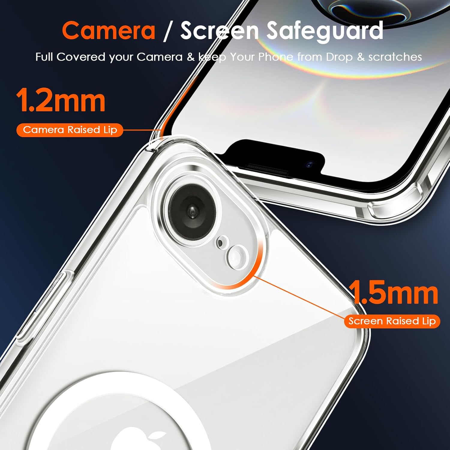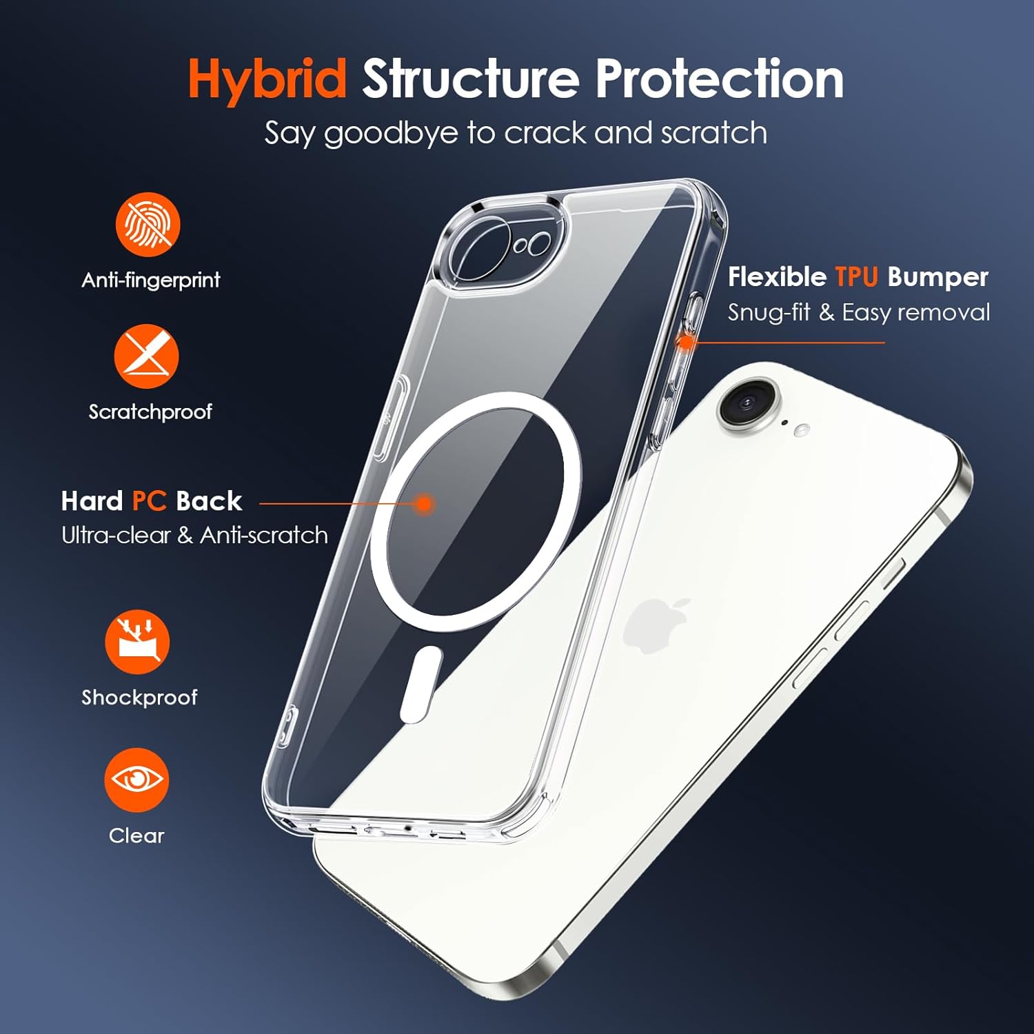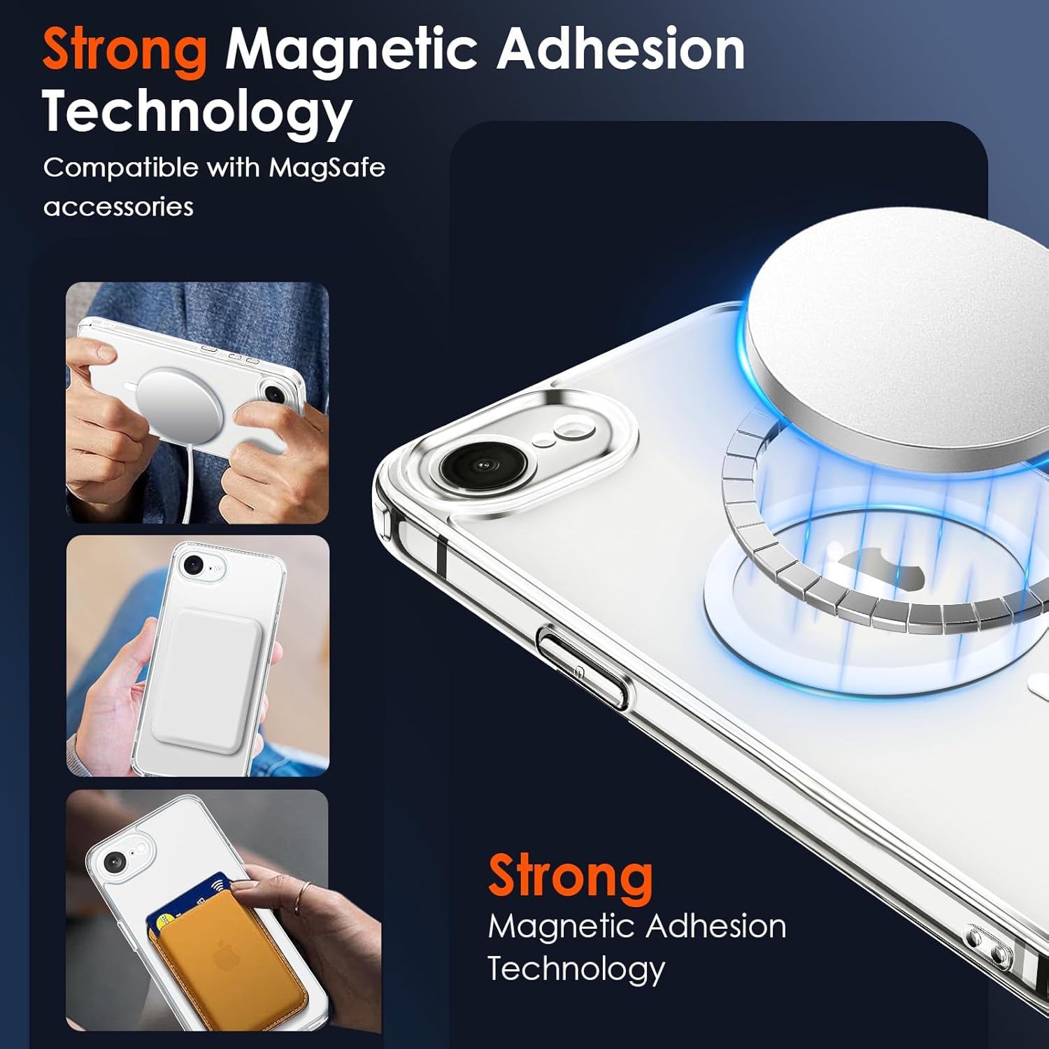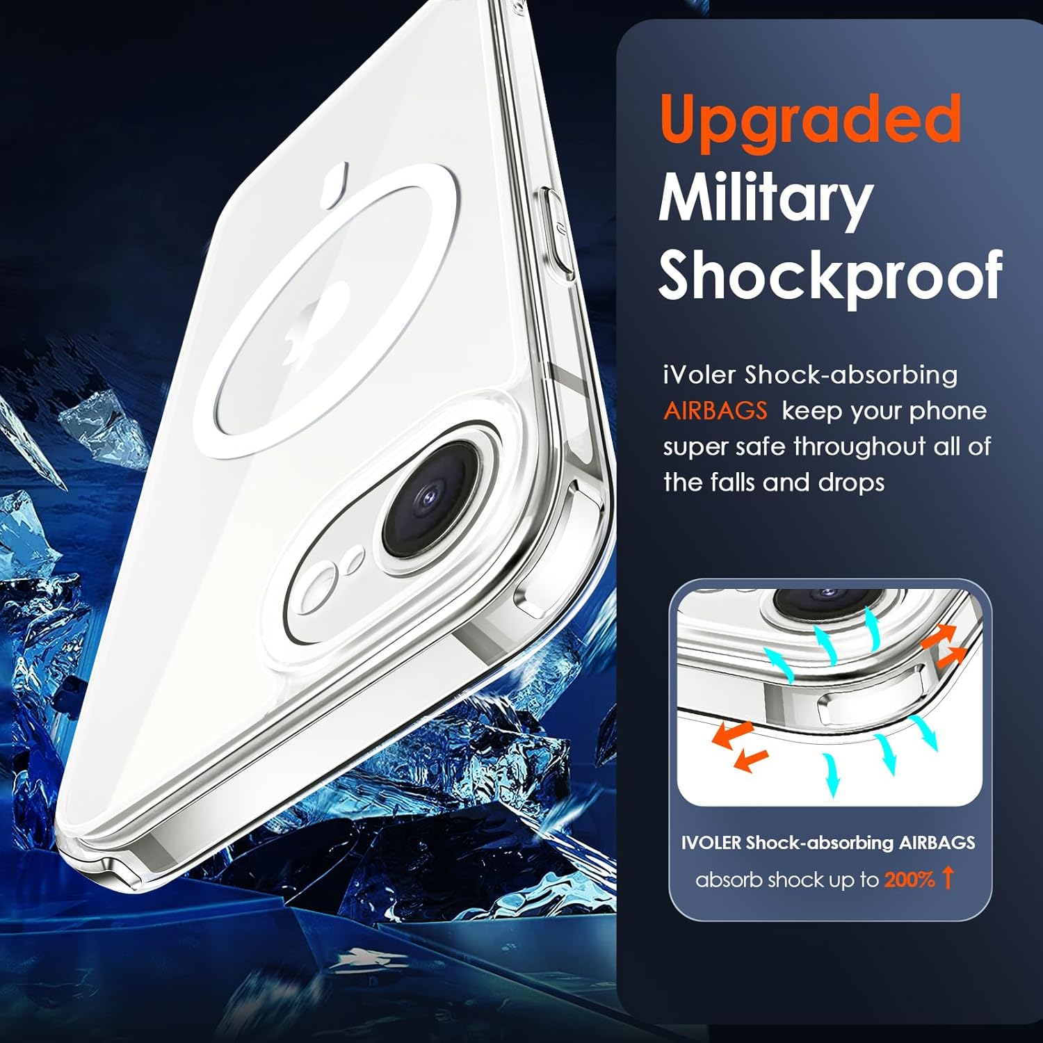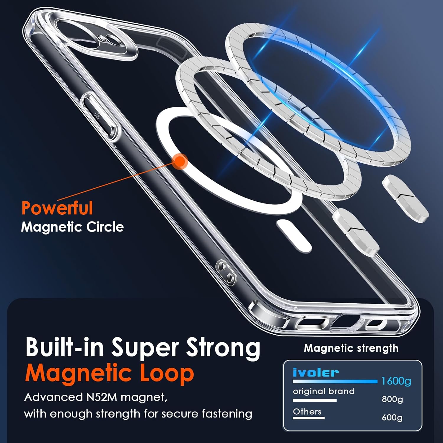ivoler Прозрачен магнитен калъф за iPhone 16e 6.1 инча, [Съвместим с MagSafe] [Военна защита] Удароустойчив, устойчив на надраскване, прозрачен защитен калъф за мобилен телефон