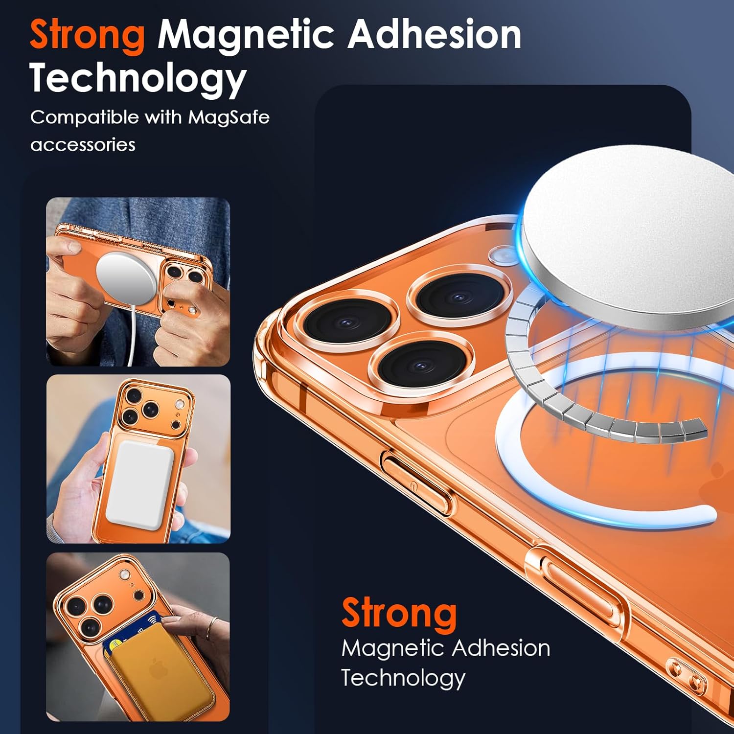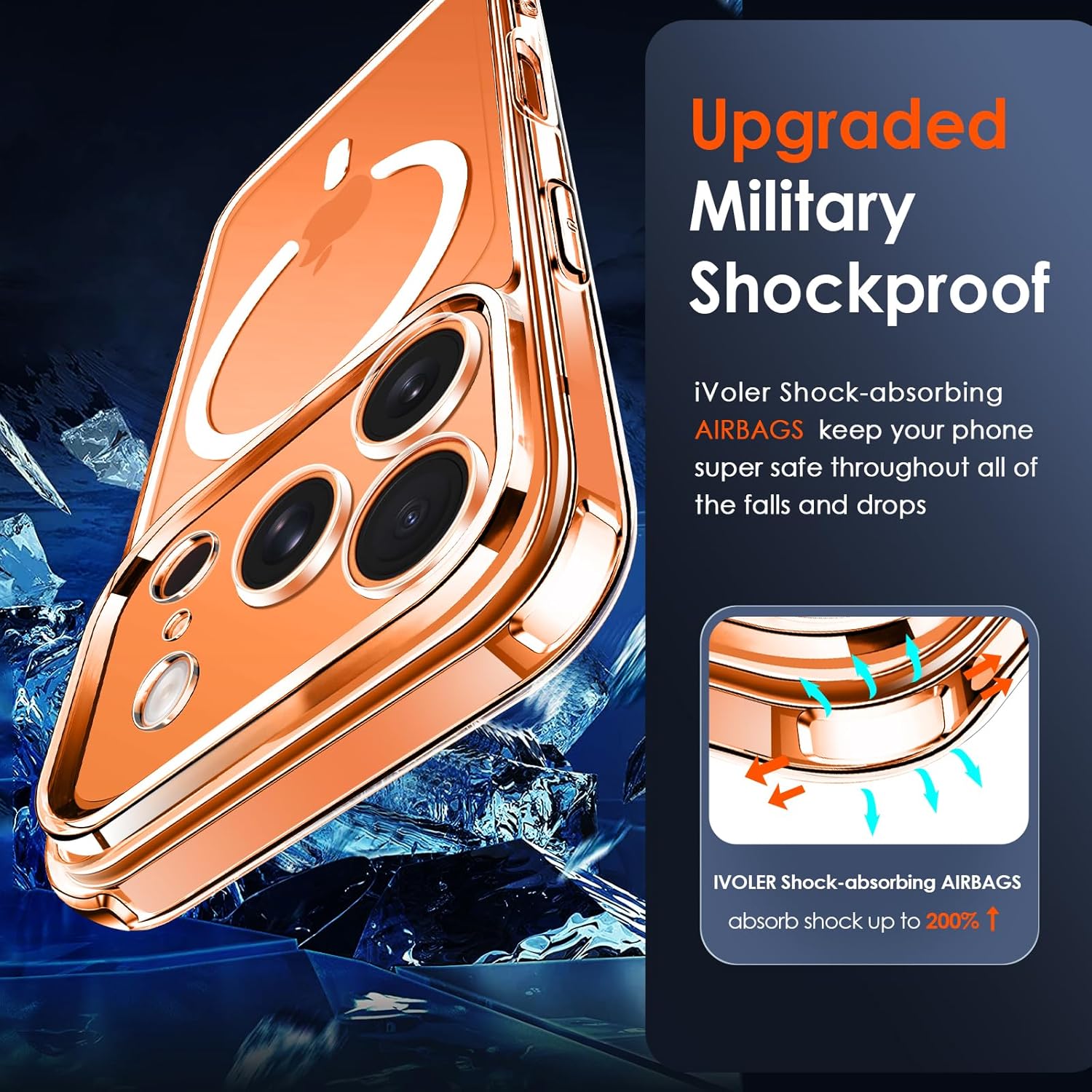 ivoler Прозрачен магнитен калъф за iPhone 17 Pro, никога не пожълтява, военна защита, удароустойчив, устойчив на надраскване, прозрачен защитен калъф