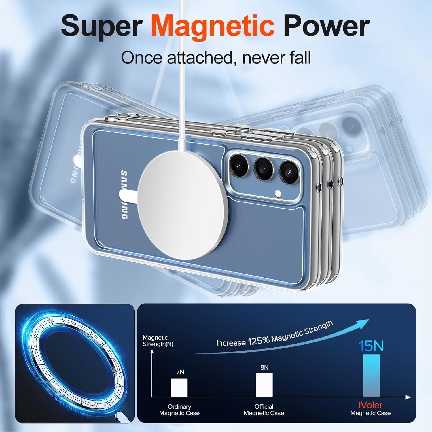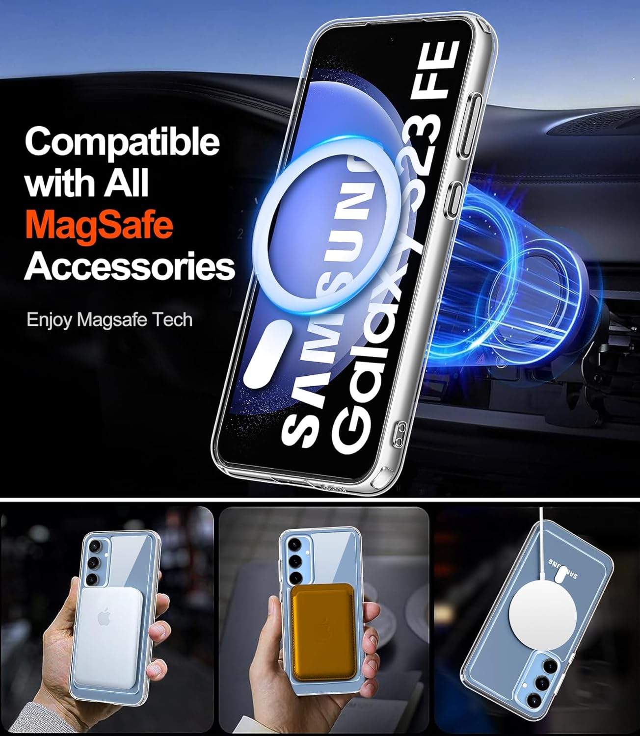ivoler Прозрачен магнитен калъф за Samsung Galaxy S23 FE 5G (Не е за Samsung S23), [Съвместим с MagSafe] [Военна защита] Удароустойчив прозрачен защитен калъф за мобилен телефон