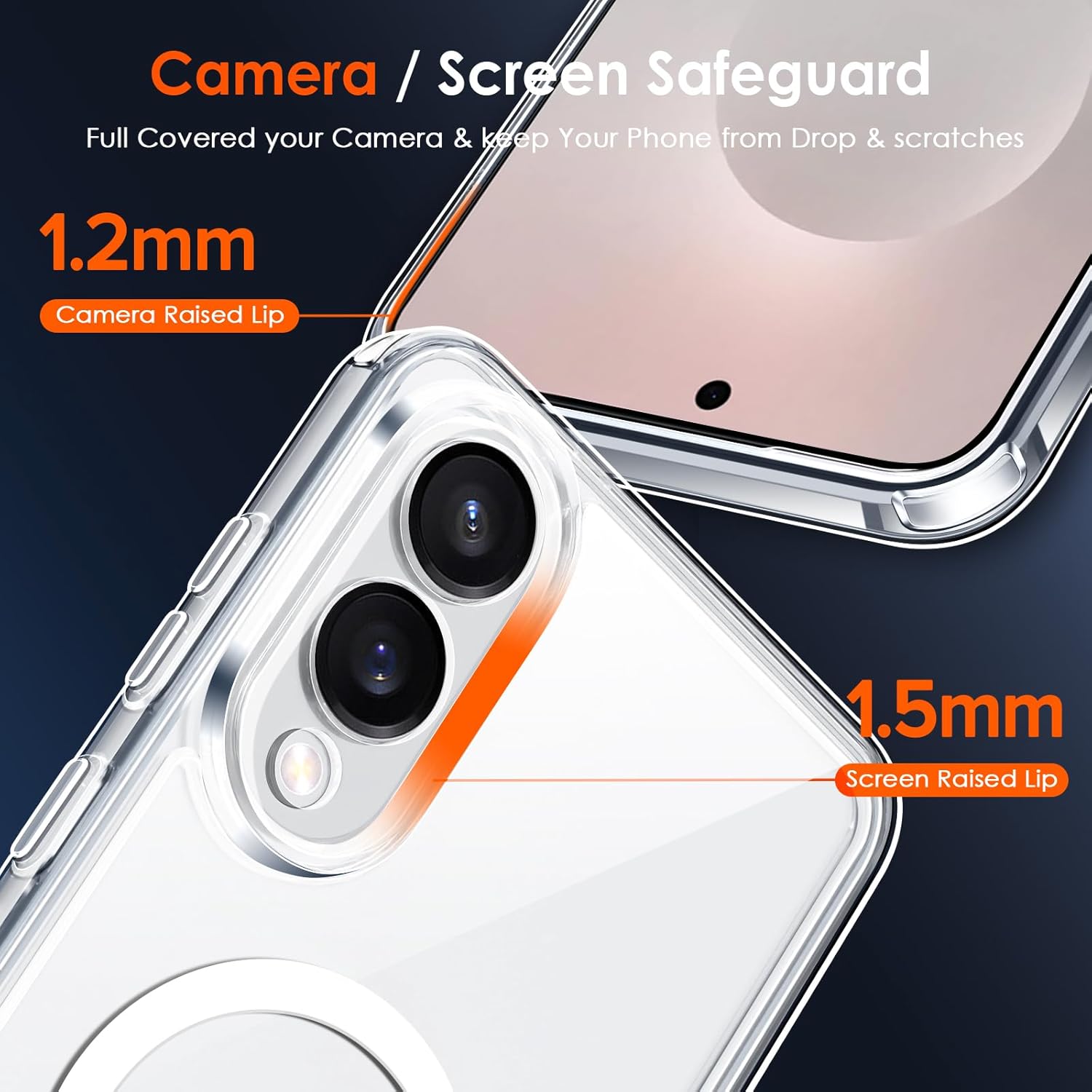 • [Повишена защита на камерата и екрана] --- Камерата и екранът са двете най-скъпи и крехки части на целия телефон. Дизайнът с пълно покритие на камерата предпазва цялата камера от надраскване. Повдигнатите ръбове около предния екран и обектива на камерата могат ефективно да се справят с последиците от внезапно изпускане или удар, без да надраскат красивия ви телефон!