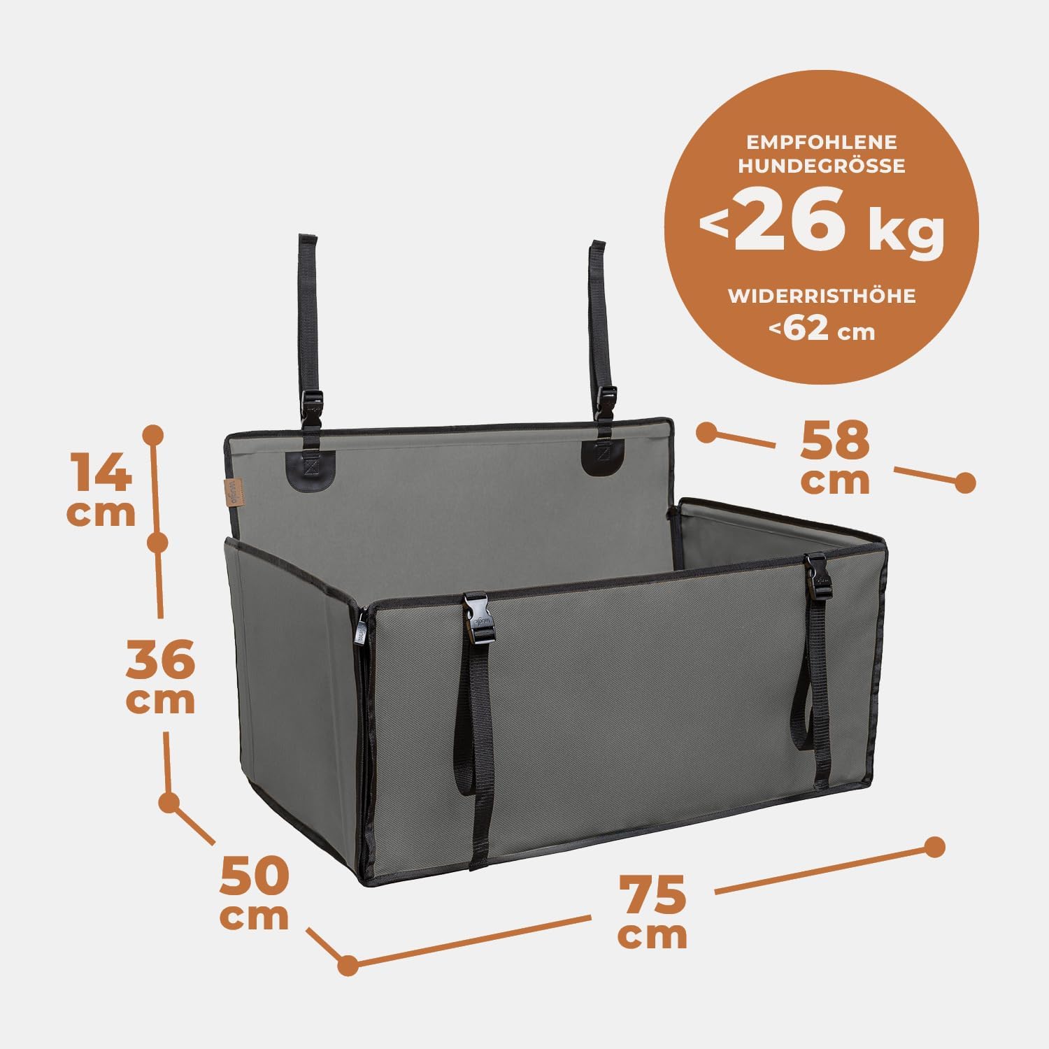 Изключително стабилно столче за кола за кучета - Подсилено столче за кола за малки и средни кучета с 4 каишки за закрепване - Висококачествено и водоустойчиво столче за кола за кучета на задната седалка в колата (размер L, сиво)