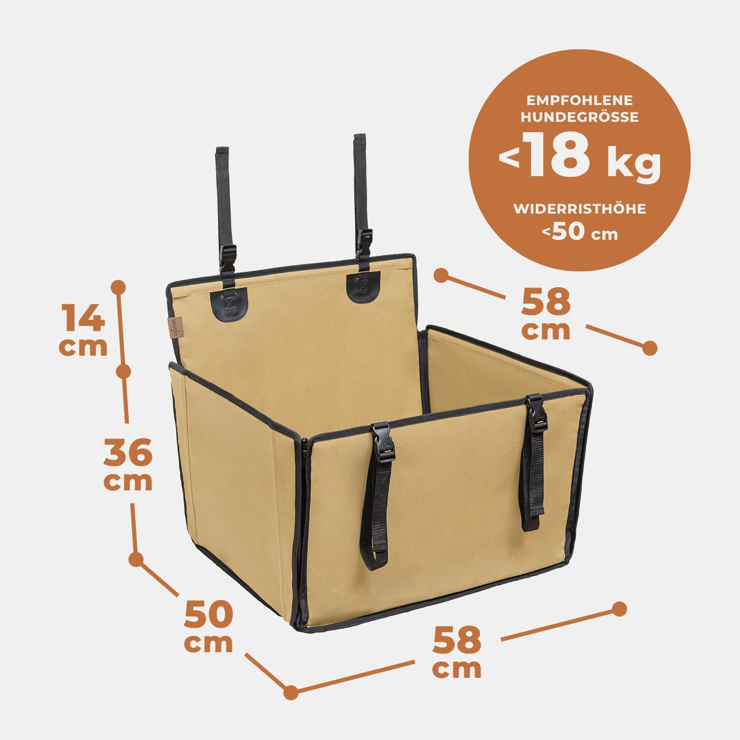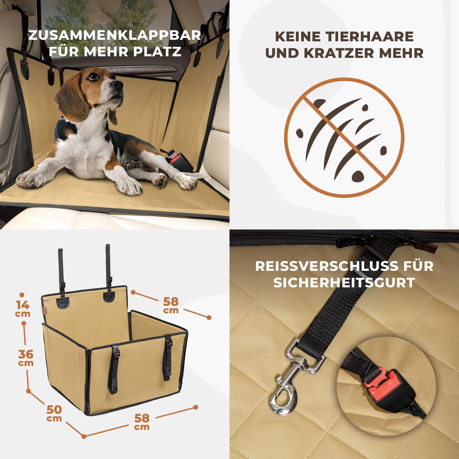 Изключително стабилно столче за кола за кучета - Подсилено столче за кола за малки и средни кучета с 4 каишки за закрепване - Висококачествено и водоустойчиво столче за кола за задната седалка в колата (M-размер, бежово)