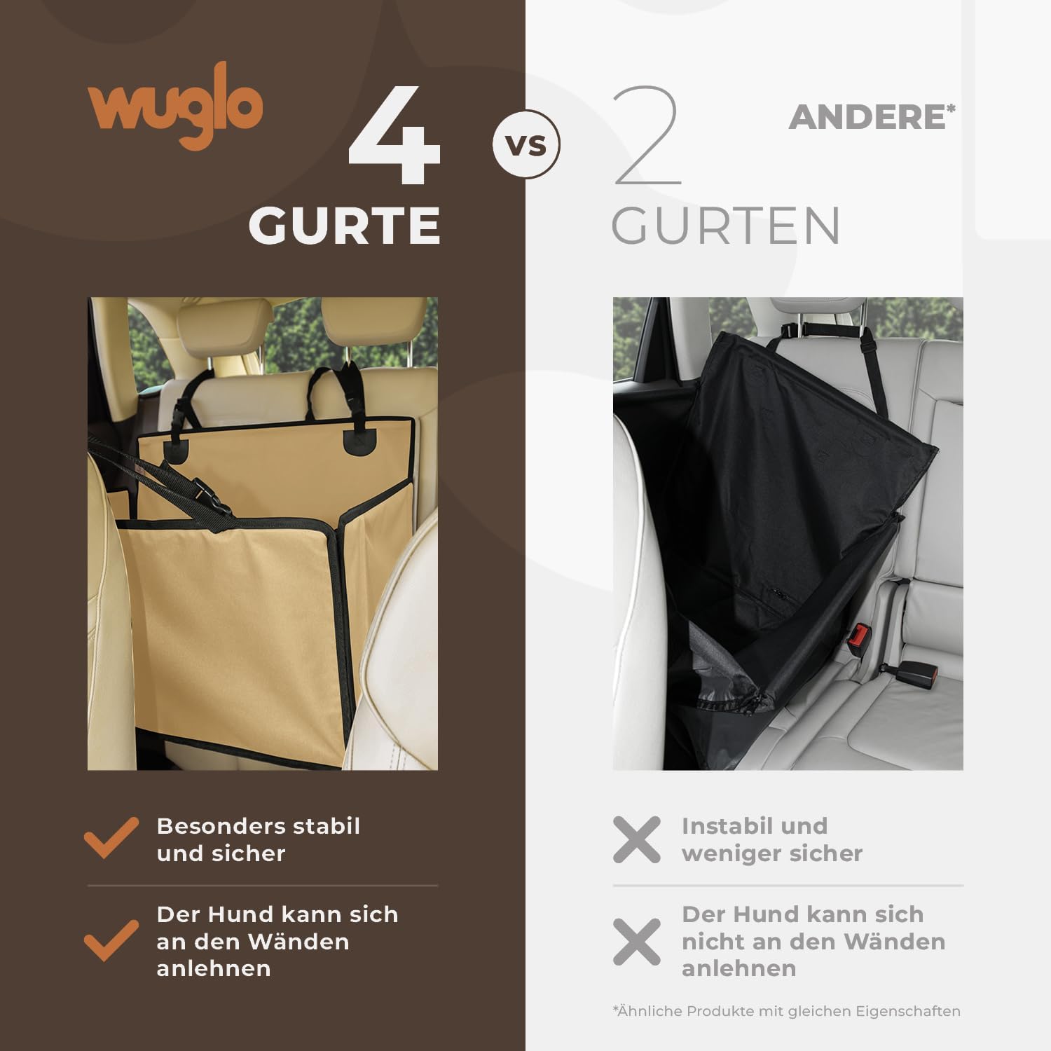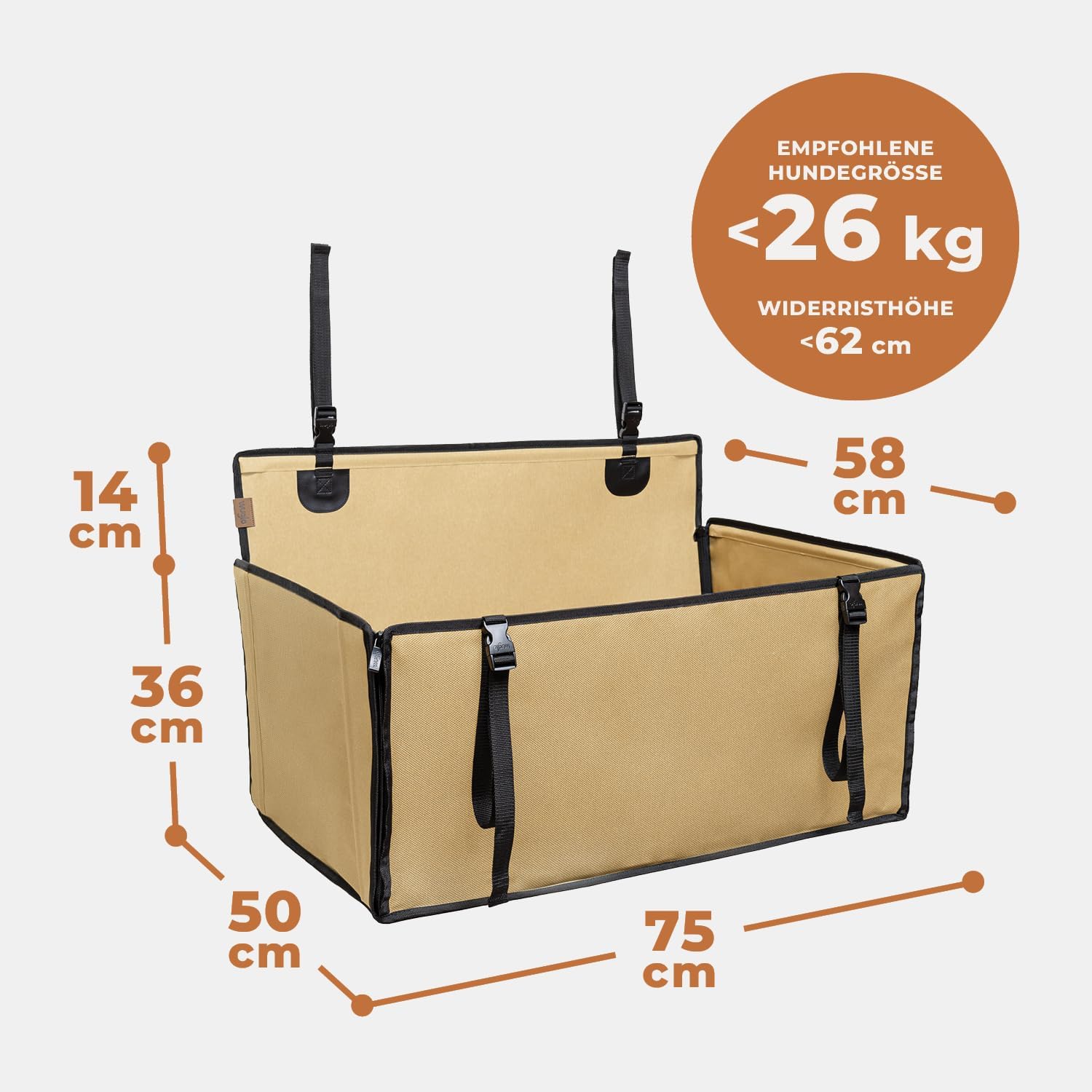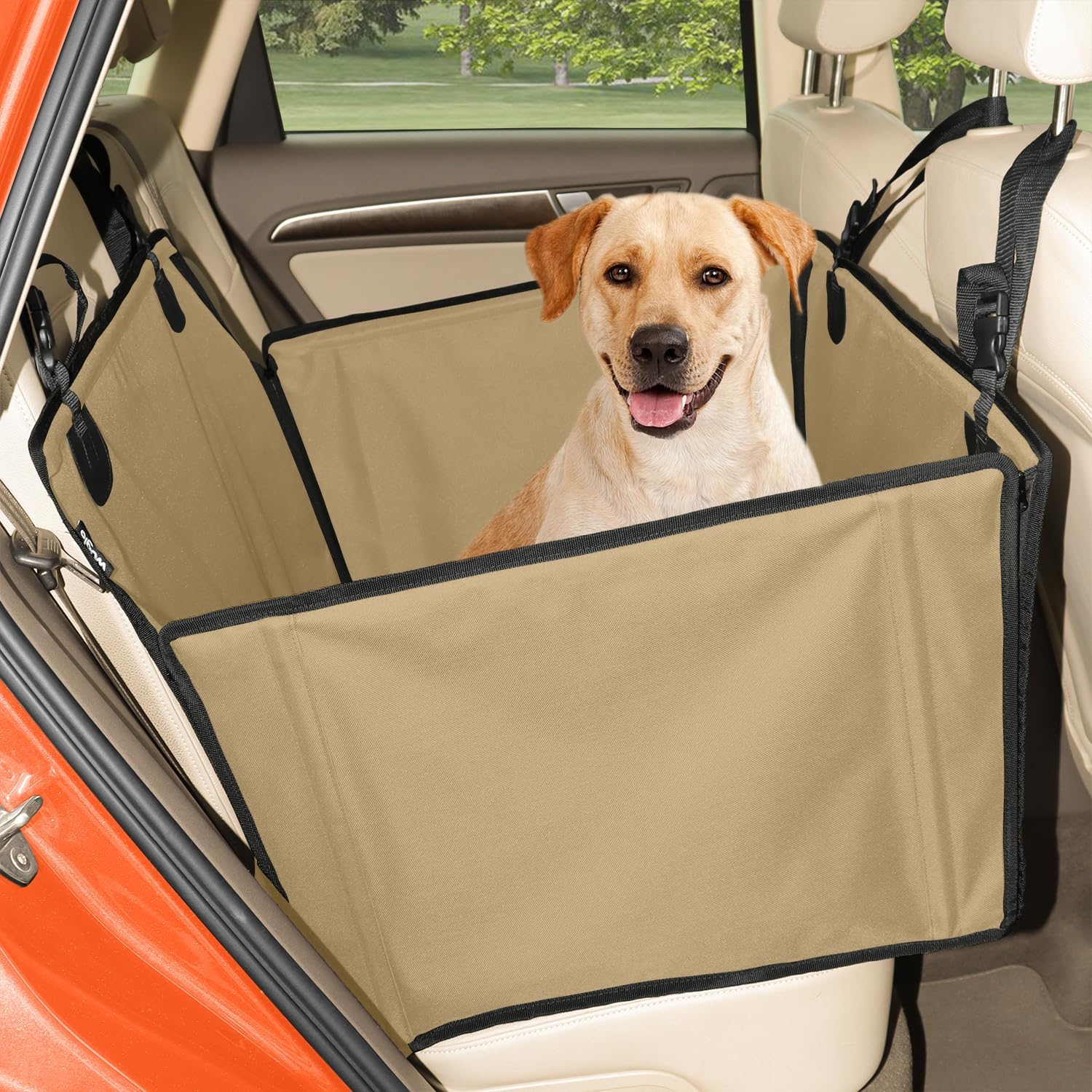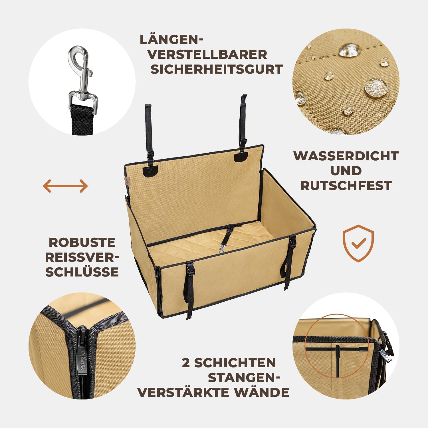 Изключително стабилно столче за кола за кучета - Подсилено столче за кола за малки и средни кучета с 4 каишки за закрепване - Висококачествено и водоустойчиво столче за кола за задната седалка в колата (размер L, бежово)