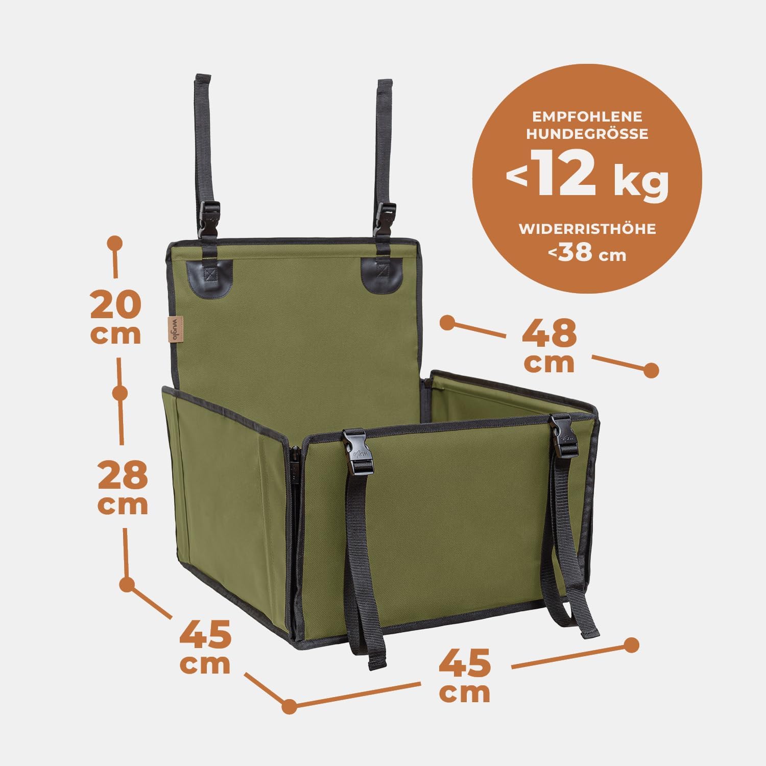Изключително стабилно столче за кола за кучета - Подсилено столче за кола за малки и средни кучета с 4 закрепващи каишки - Висококачествено и водоустойчиво столче за кола за задната седалка в колата (S-размер, каки)