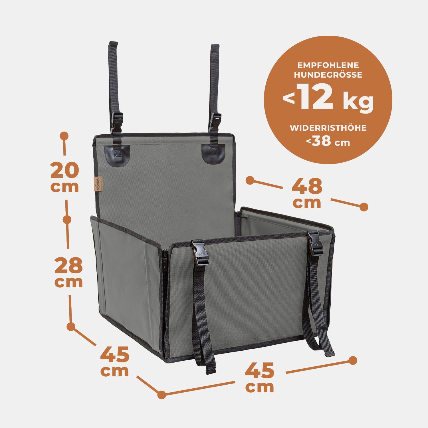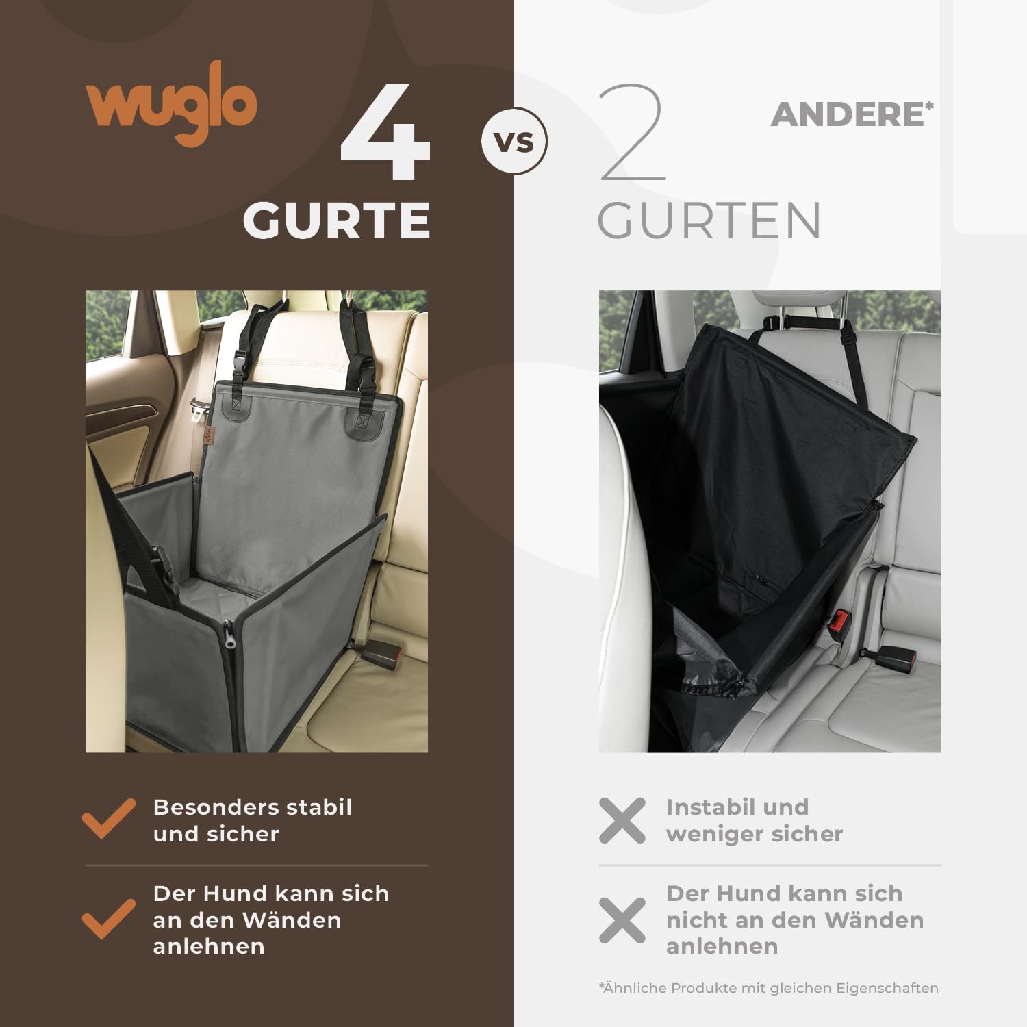 • Изключително здрав и безопасен: благодарение на четирите каишки и анкерната система на седалката, столчето за кучета за кола е изключително стабилно и по-безопасно от повечето други продукти. Освен това, на столчето за кучета е монтиран регулируем по дължина предпазен колан, който осигурява обезопасяване на кучето.