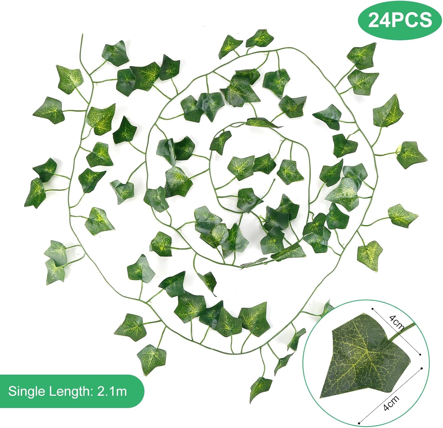 Висящите растения DazSpirit от изкуствен бръшлян внасят зеленина в живота ви. Гирлянда от изкуствени листа от бръшлян, изработена от плат, стъбла от оформени пластмасови листа и зелени тонове, изглежда реалистично и добавя елегантност към вашия пейзаж.