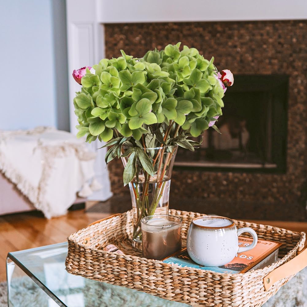 Изкуствена хортензия Briful, изкуствено цвете, като истински изкуствени клони, изкуствени копринени цветя от хортензия за булчински сватбени букети, декорация за дома, офиса, хотела, партита (зелено, пакет от 2)