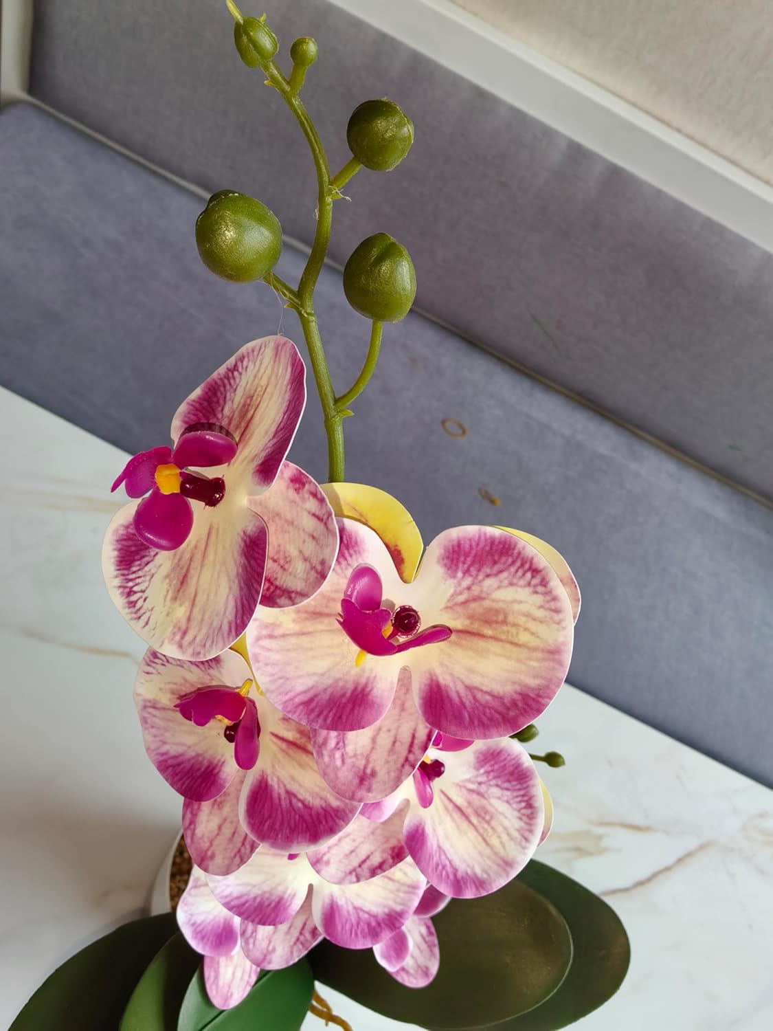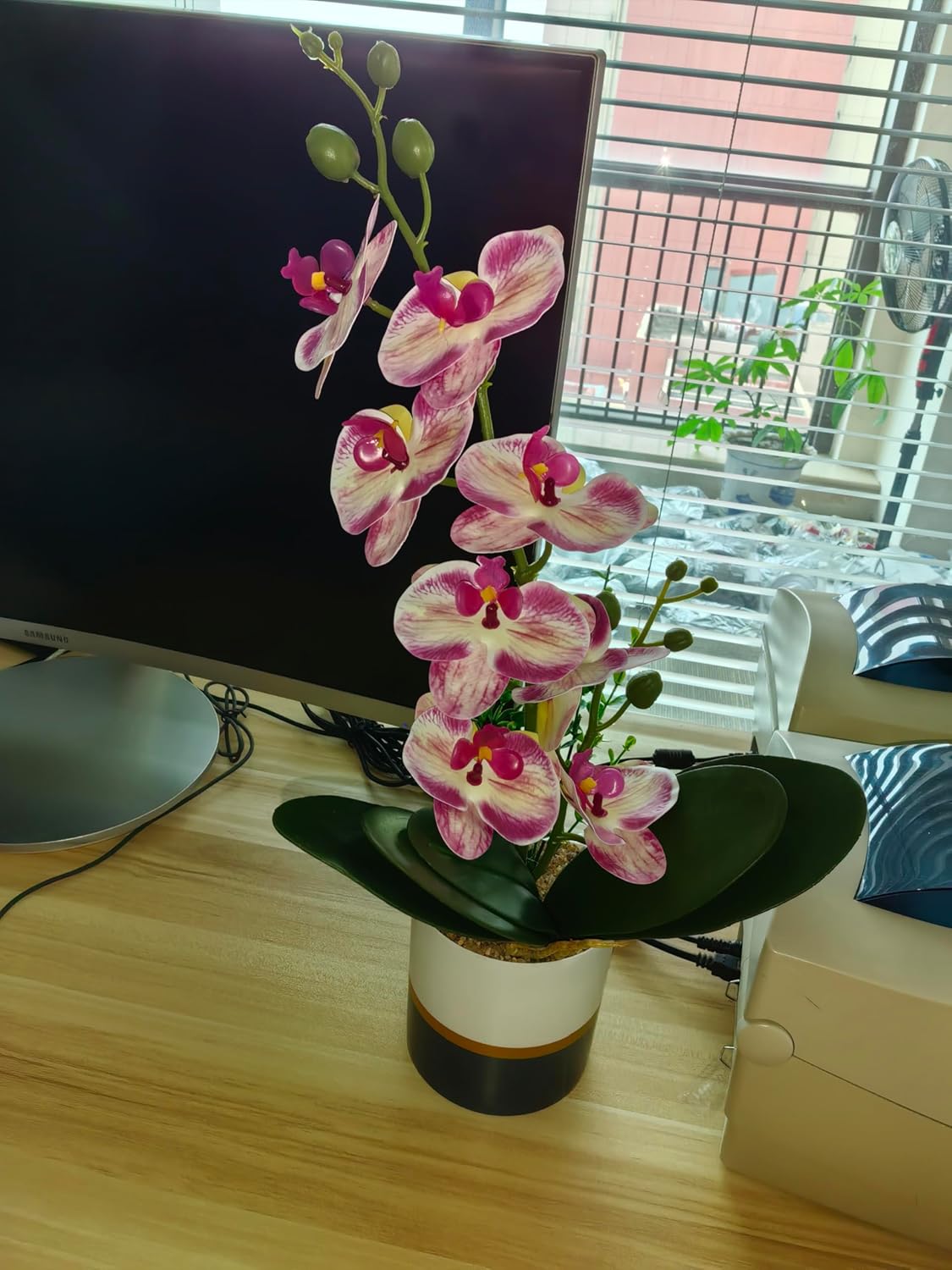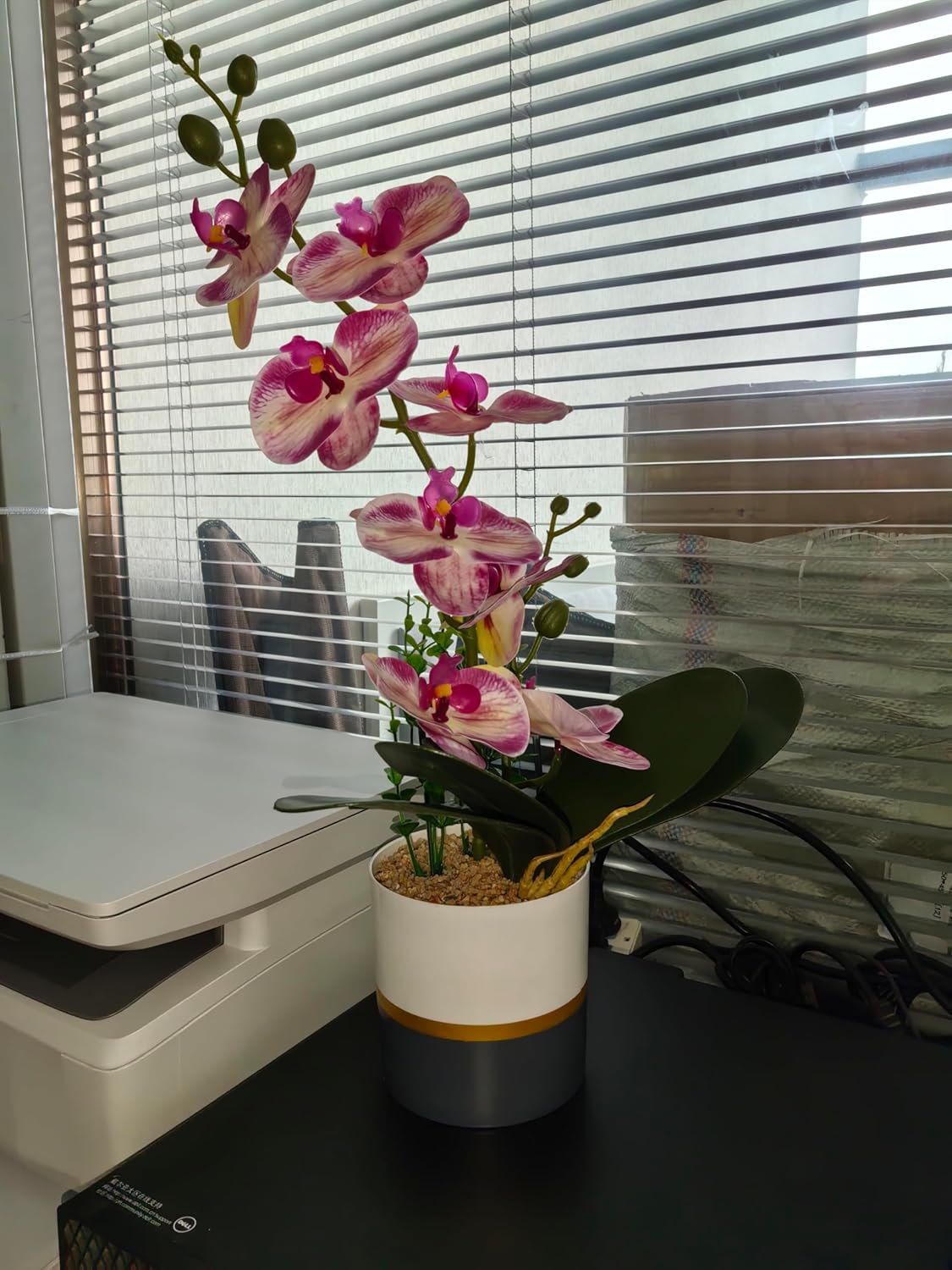 Изработено от здравословно и екологично 3D принтирано фолио, близко до истински фаленопсис, ярки цветове, наситени, издръжливи, никога не избледняват и никога не увяхват.