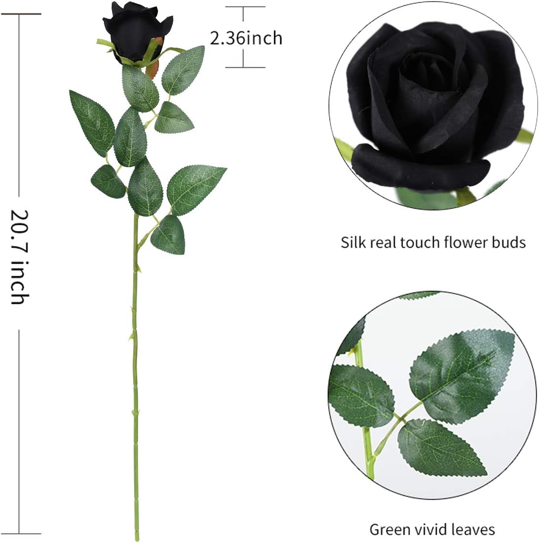 • Материал: Копринени (истински допир) цветя и листа; Метална тел като скелет, обвита в пластмаса. Дългото стъбло може да се подрязва или огъва, нетоксичен цвят, който няма да избледнее с времето, перфектен избор за хора, страдащи от поленови алергии.