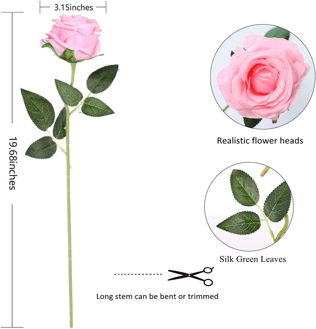 • Материал: Копринени (истински допир) цветя и листа; Метална тел като скелет, обвита в пластмаса. Дългото стъбло може да се подрязва или огъва, нетоксичен цвят, който няма да избледнее с времето, перфектен избор за хора, страдащи от поленови алергии.