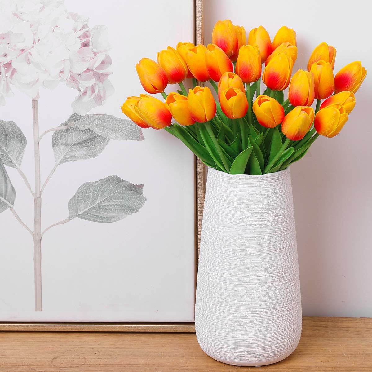 Material: PU, plastic, flower size: each flower head diameter 1.97 inches (approx. Flower height: 13.5 inches (approx. Package contents: 10 pieces and 20 pieces fake flower tulle flower, no vase included.