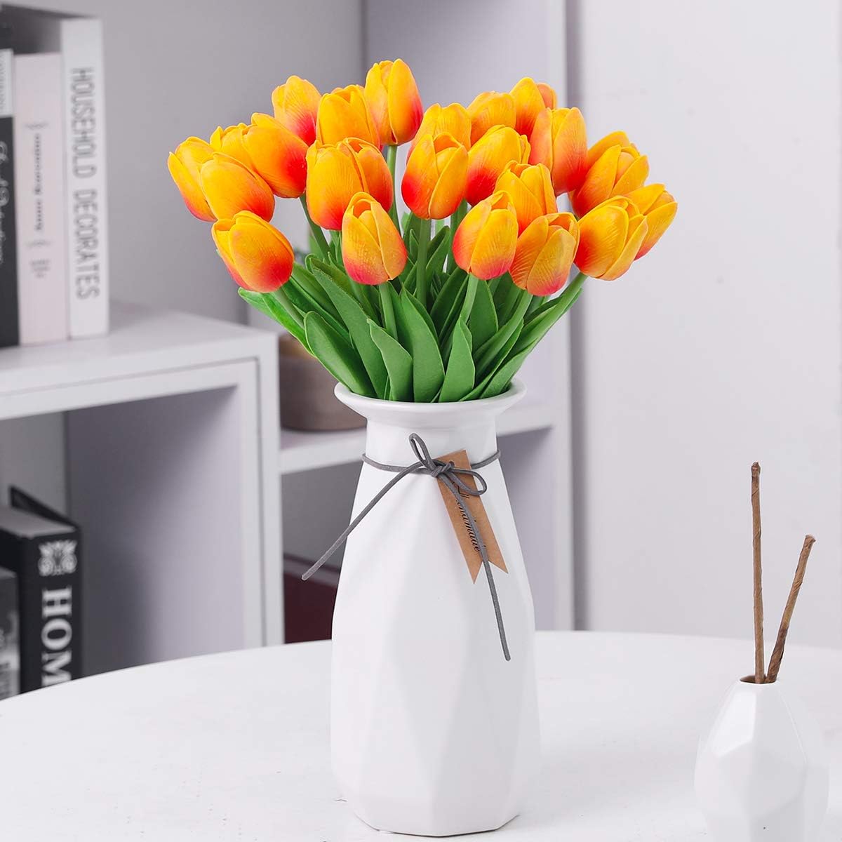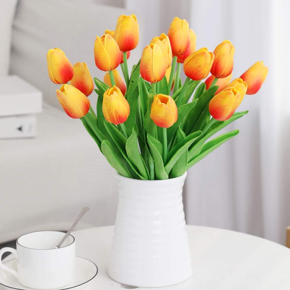 Add a touch of colour and romance to your home with this beautiful faux tulip design. The rich, full, bing heads of these beautiful flowers make them a stunning choice for decoration. Create an atmosphere that fits perfectly with your personal decor. They are also perfect for floral arrangements, centerpieces, crafts and more.