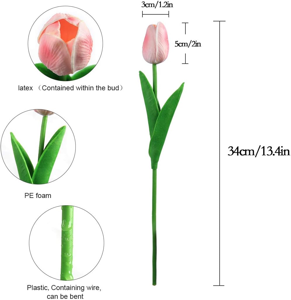 Material: PU, plastic, flower size: each flower head diameter 1.97 inches (approx. Flower height: 13.5 inches (approx. Package contents: 10 pieces and 20 pieces fake flower tulle flower, no vase included.