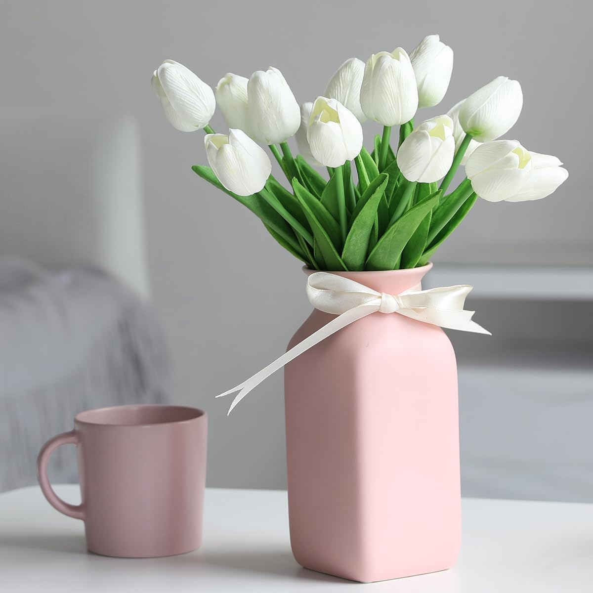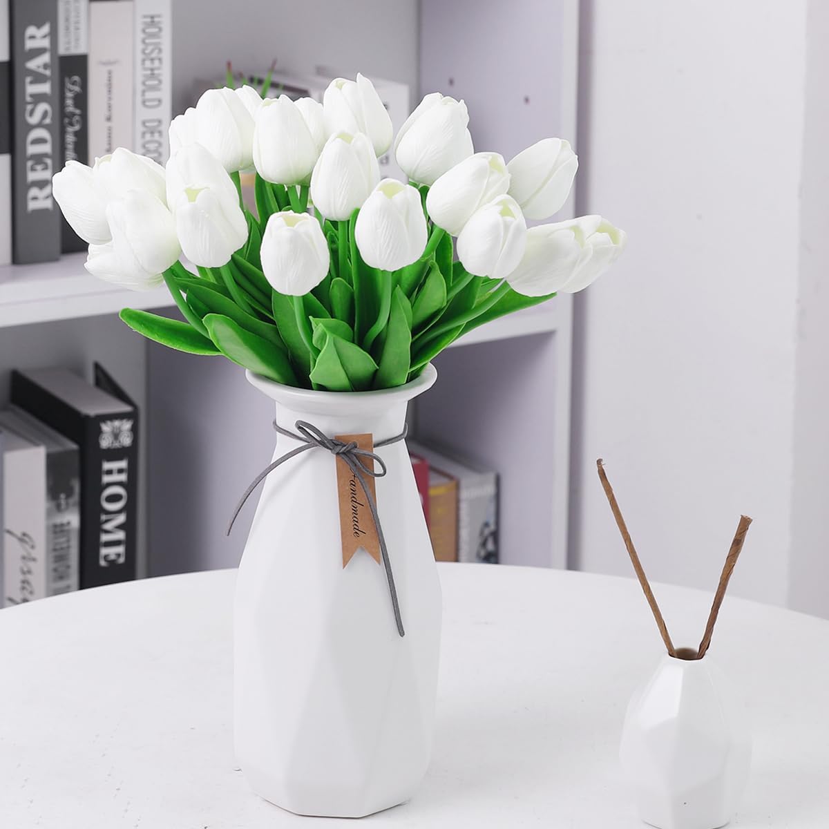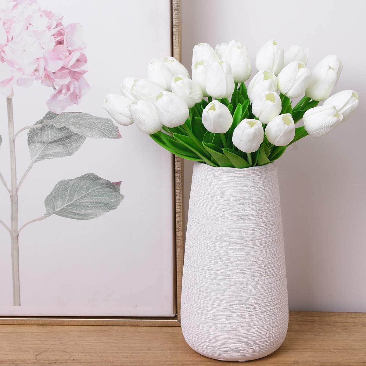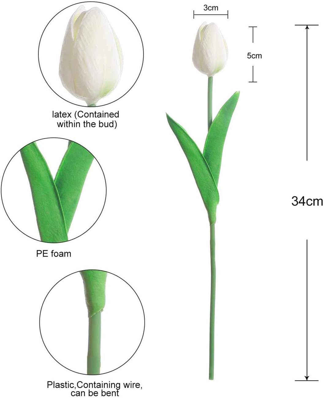 Material: PU, plastic, flower size: each flower head diameter 1.97 inches (approx. Flower height: 13.5 inches (approx. Package contents: 10 pieces and 20 pieces fake flower tulle flower, no vase included.