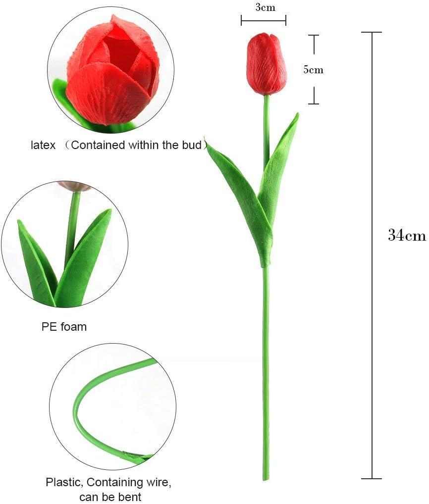 Material: PU, plastic, flower size: each flower head diameter 1.97 inches (approx. Flower height: 13.5 inches (approx. Package contents: 10 pieces and 20 pieces fake flower tulle flower, no vase included.